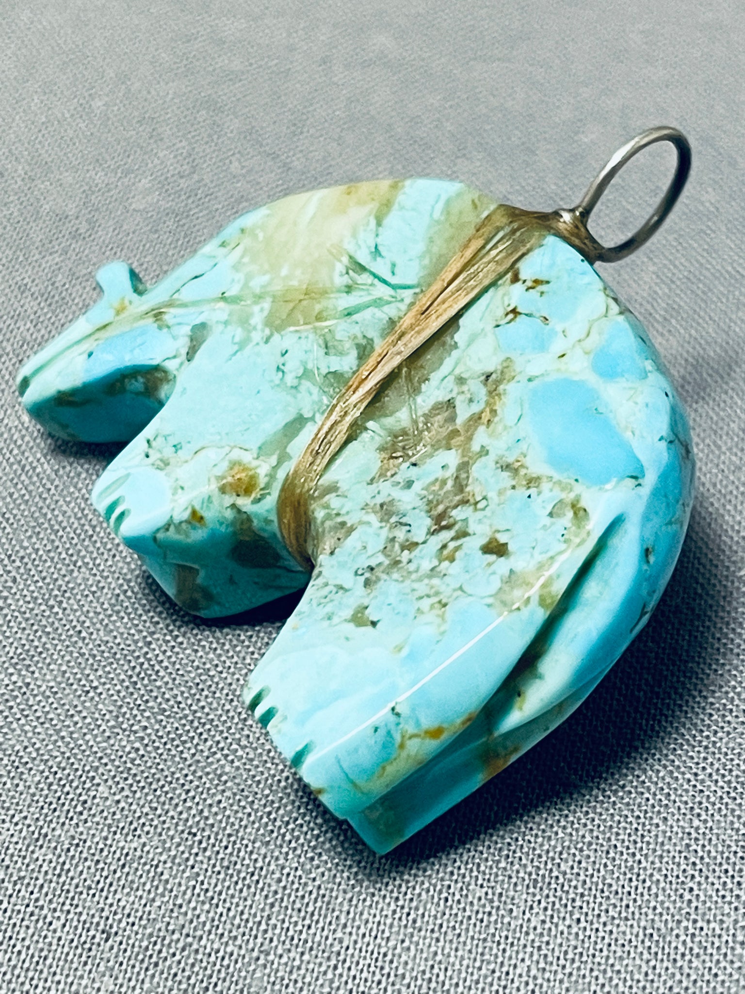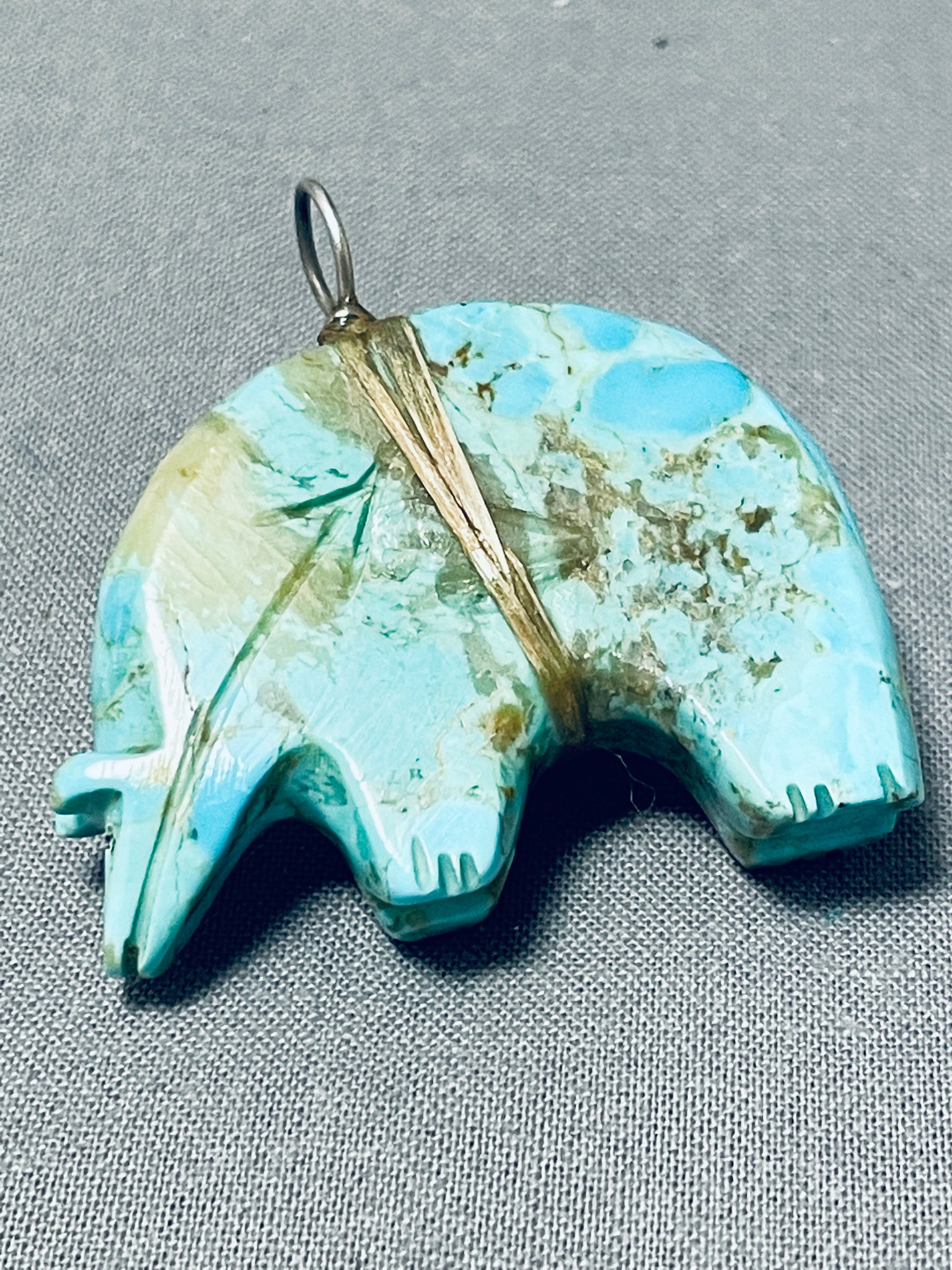 Whimsical Vintage Native American Zuni Turquoise Sterling Silver Pendant