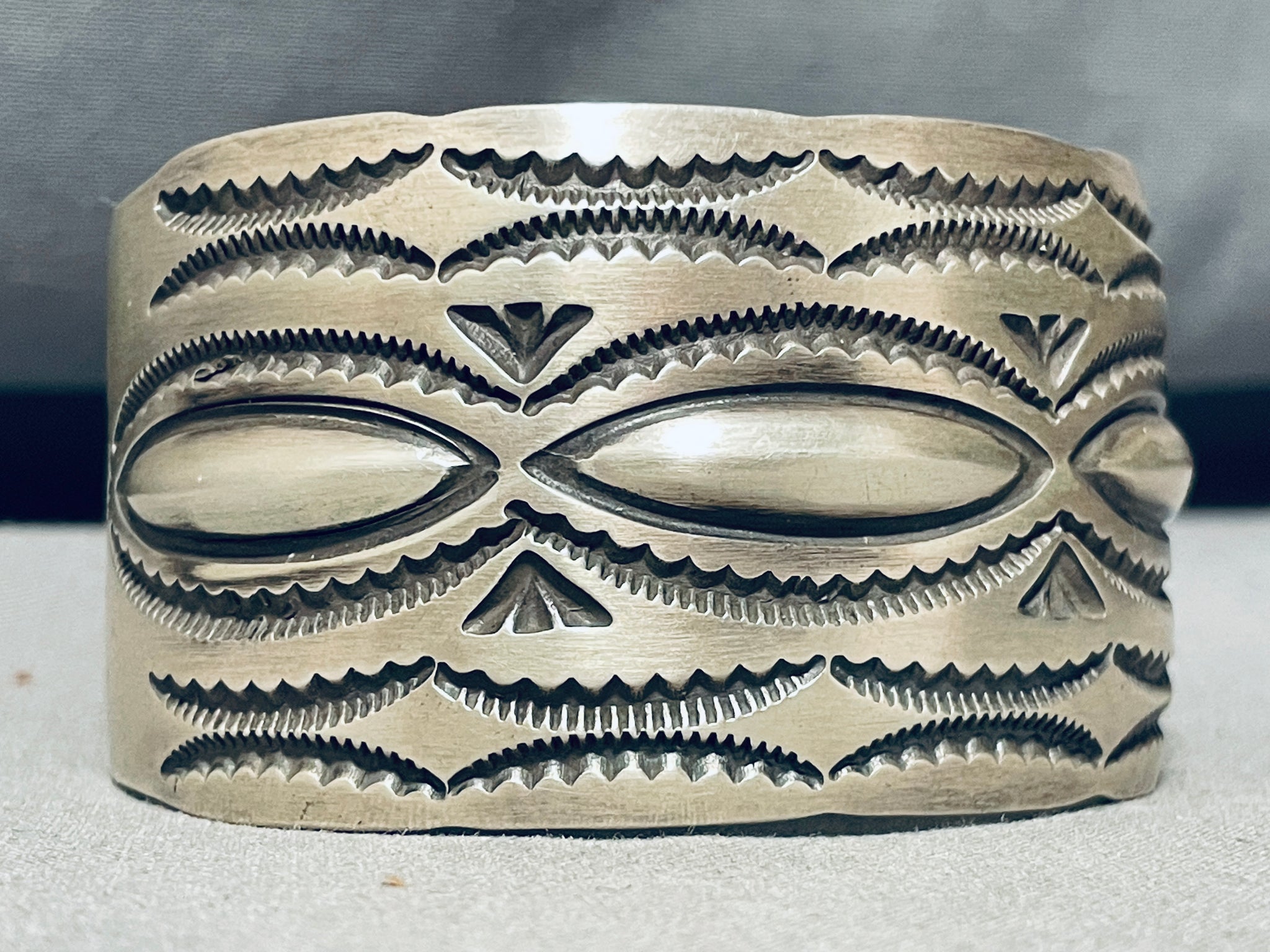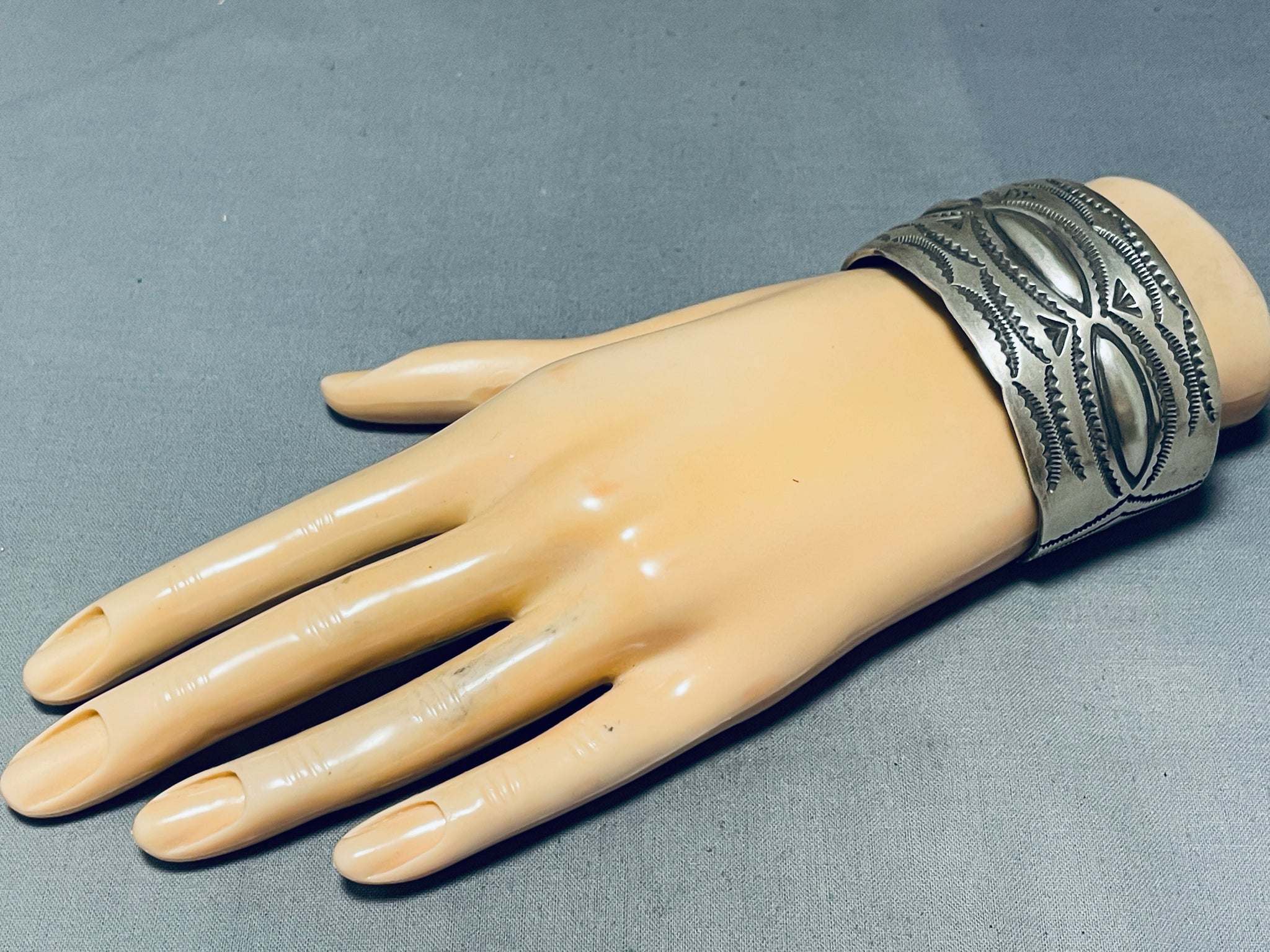 Wide Hand Wrought Vintage Native American Navajo Heavy Sterling Silver Bracelet