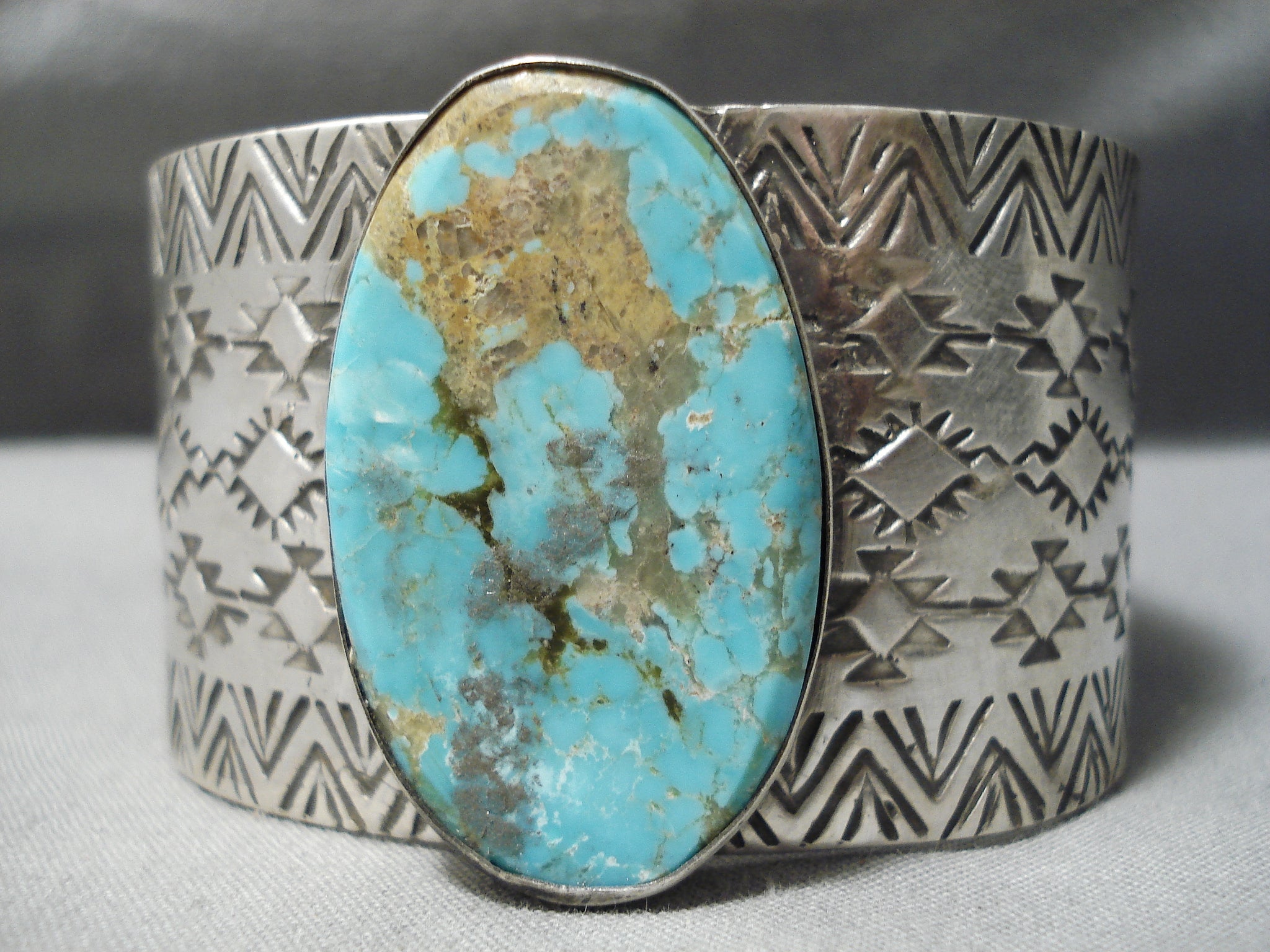 Wide Huge Native American Navajo Native Ameircan Huge Turquoise Sterling Silver Bracelet