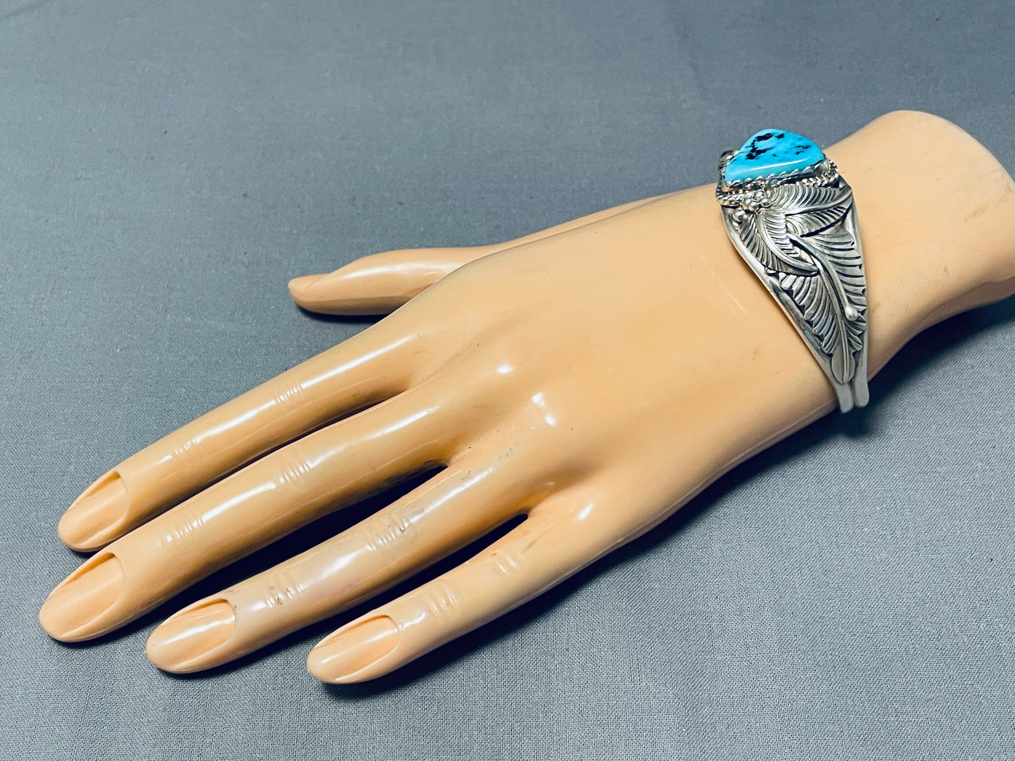 Wil Manning Native American Navajo Morenci Turquoise Sterling Silver Bracelet Signed