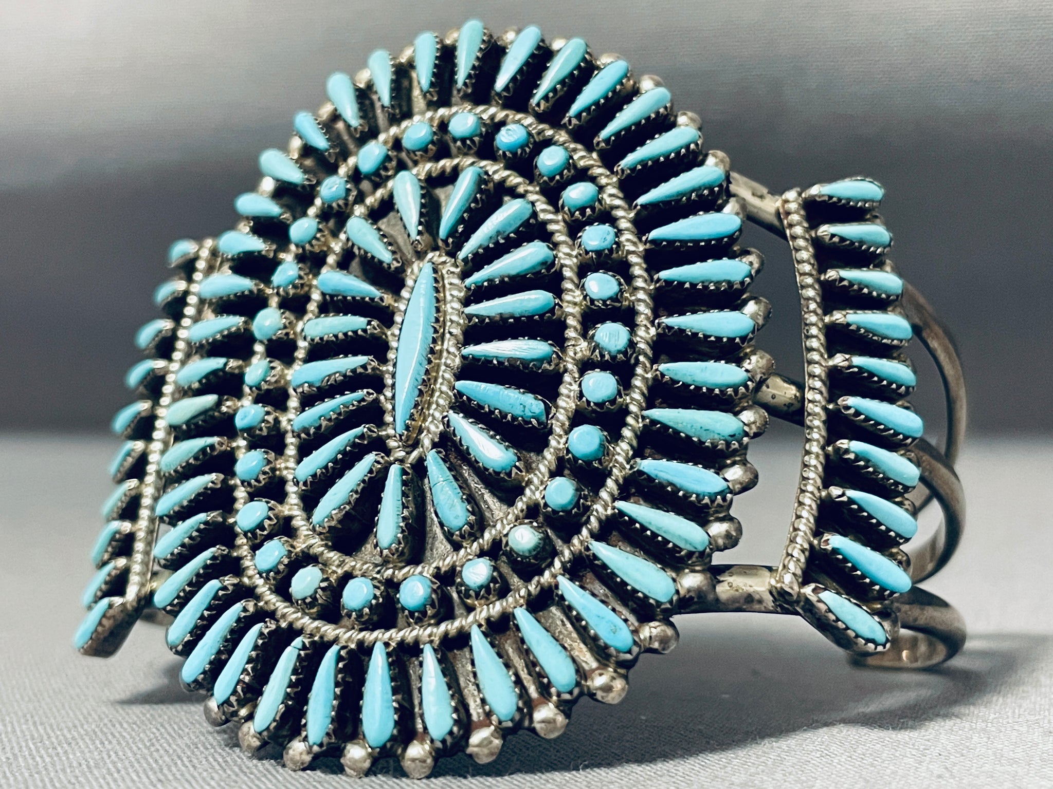 Wilson Family Vintage Native American Navajo Blue Gem Turquoise Cluster Sterling Silver Bracelet