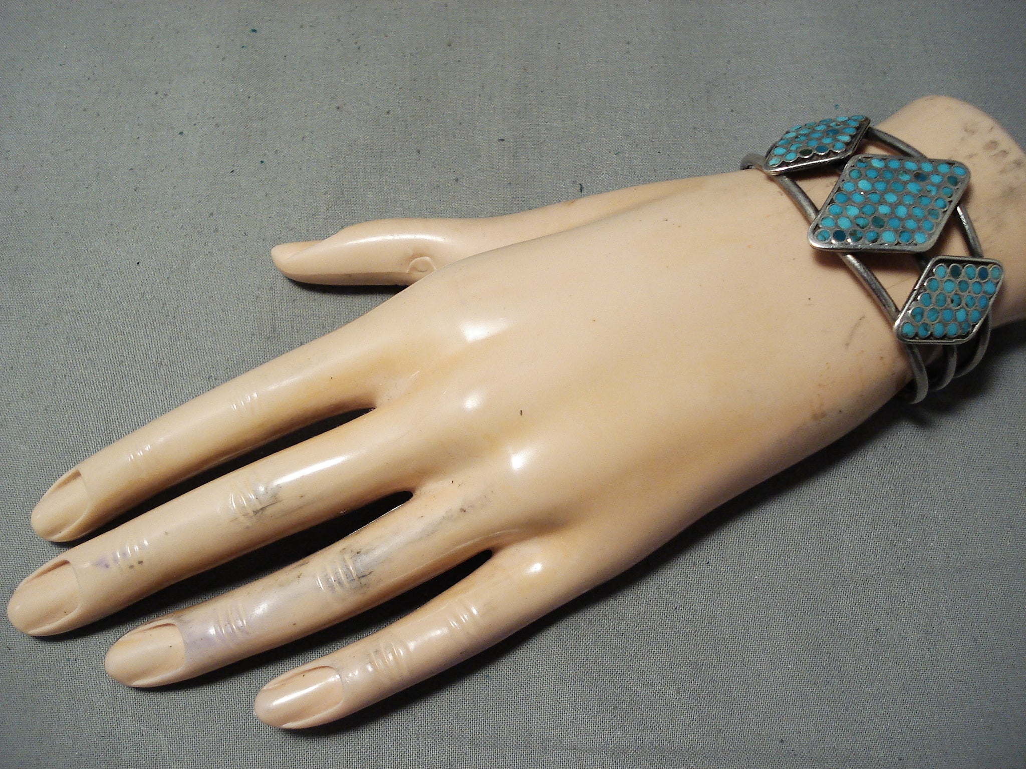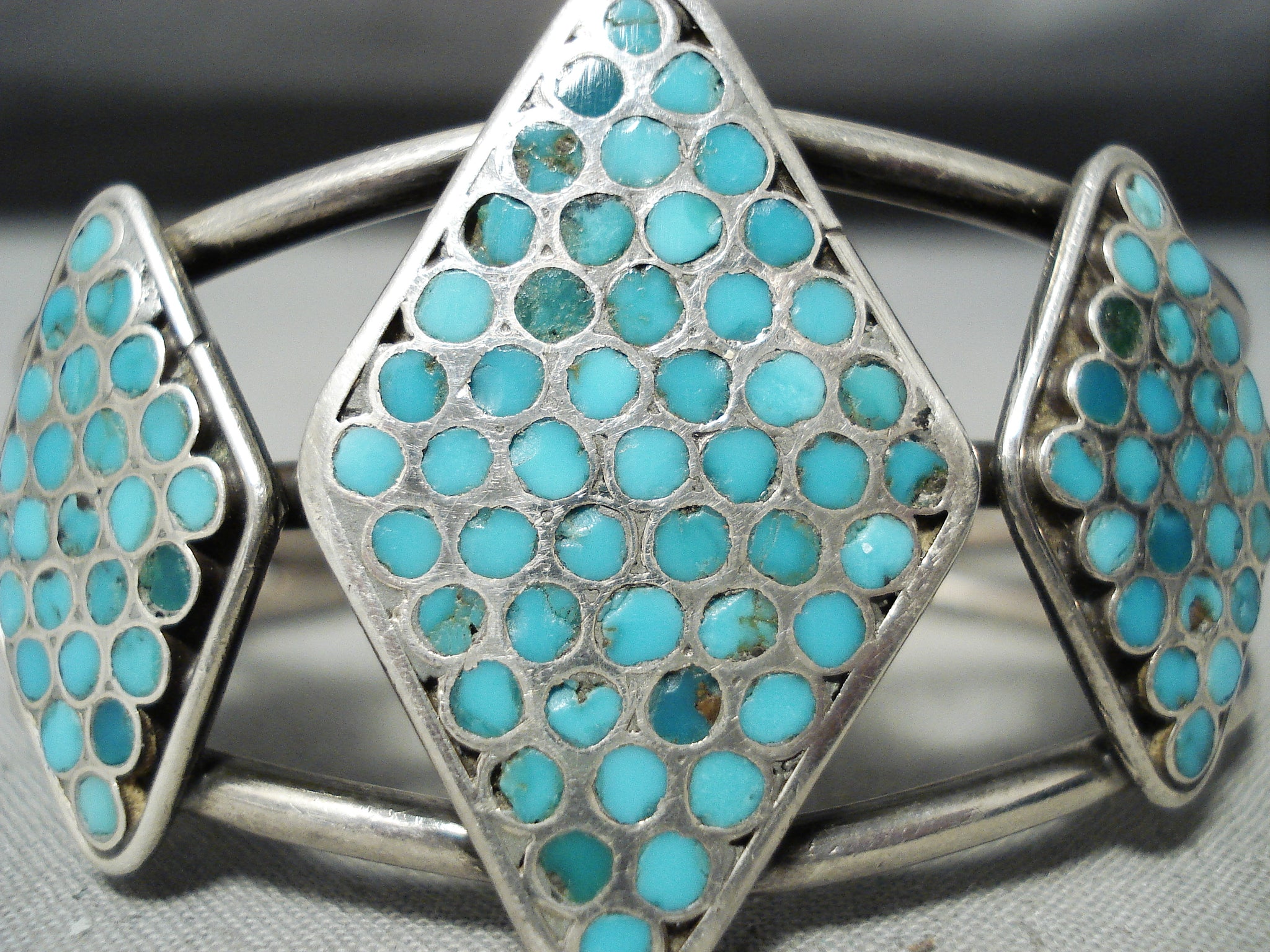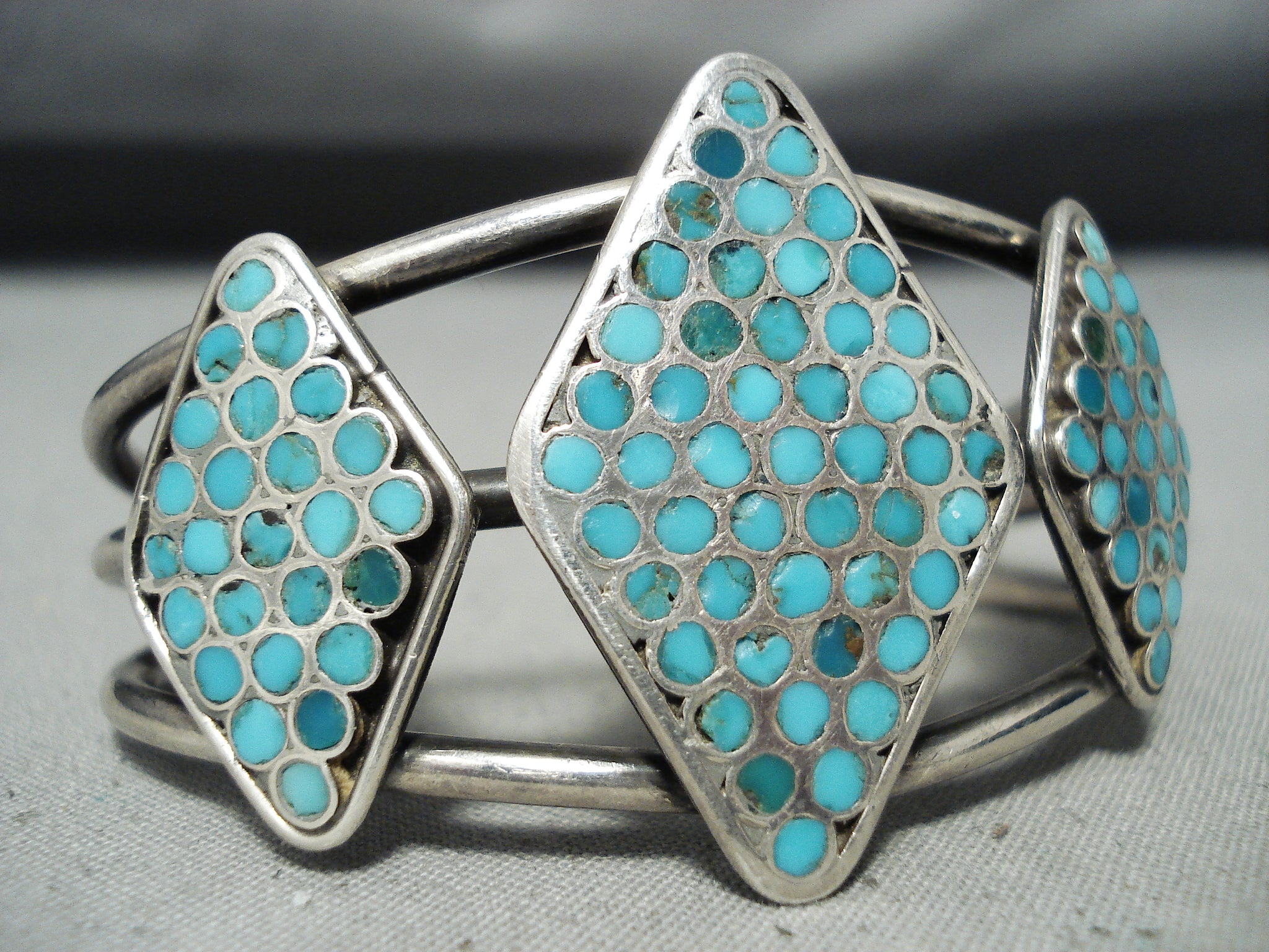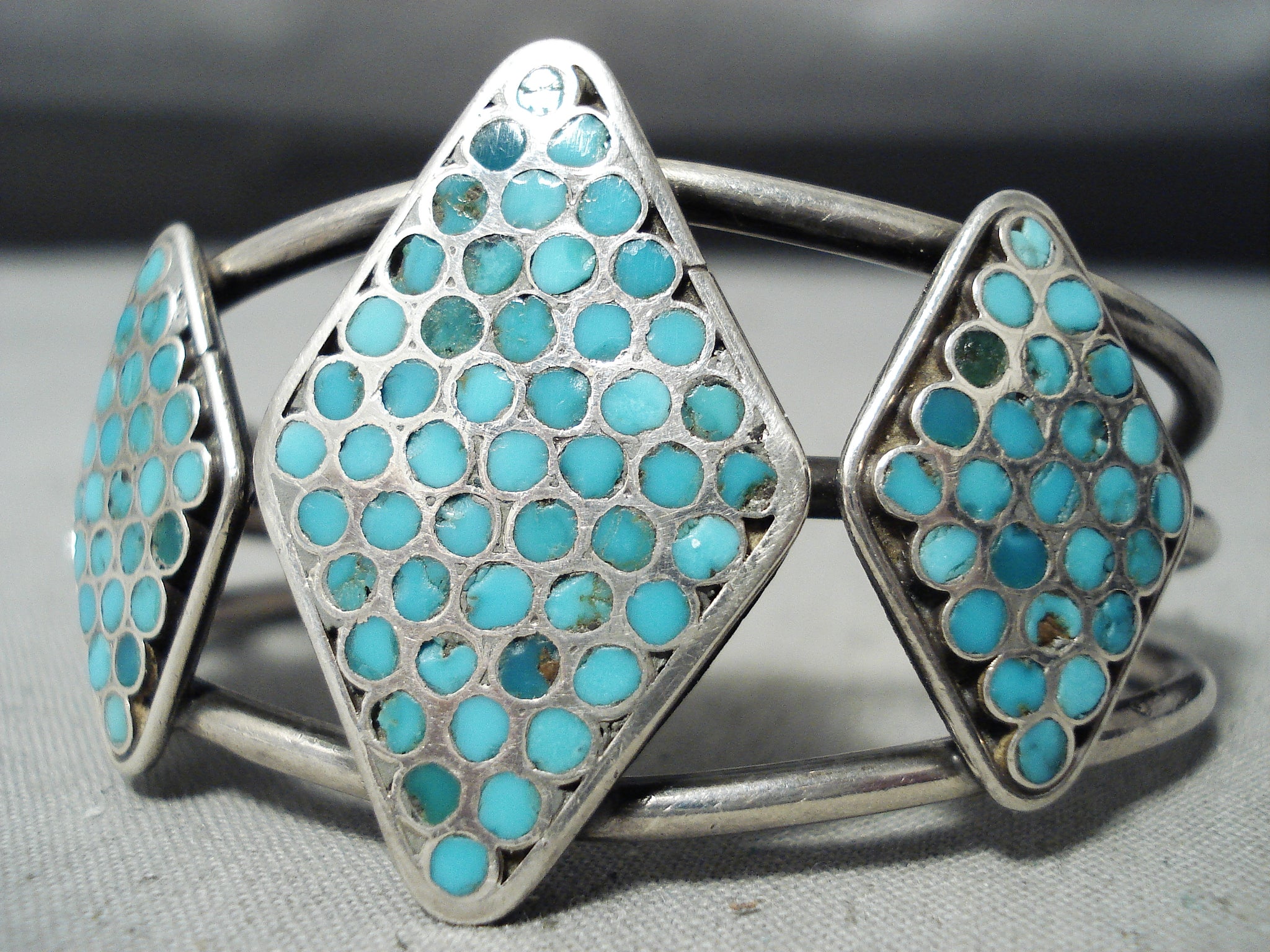 Women's Museum Vintage Native American Zuni Turquoise Dishta Turquoise Sterling Silver Bracelet