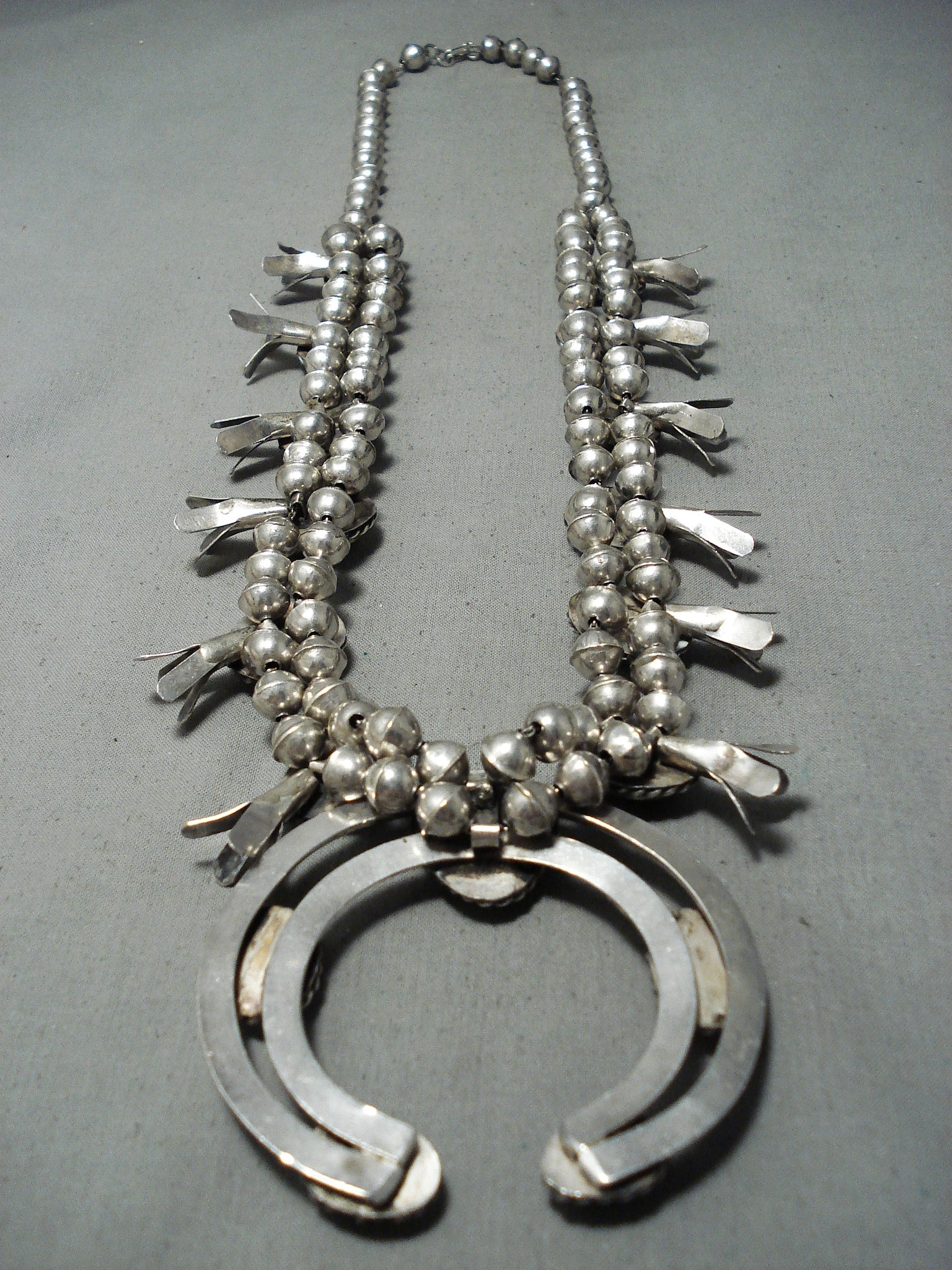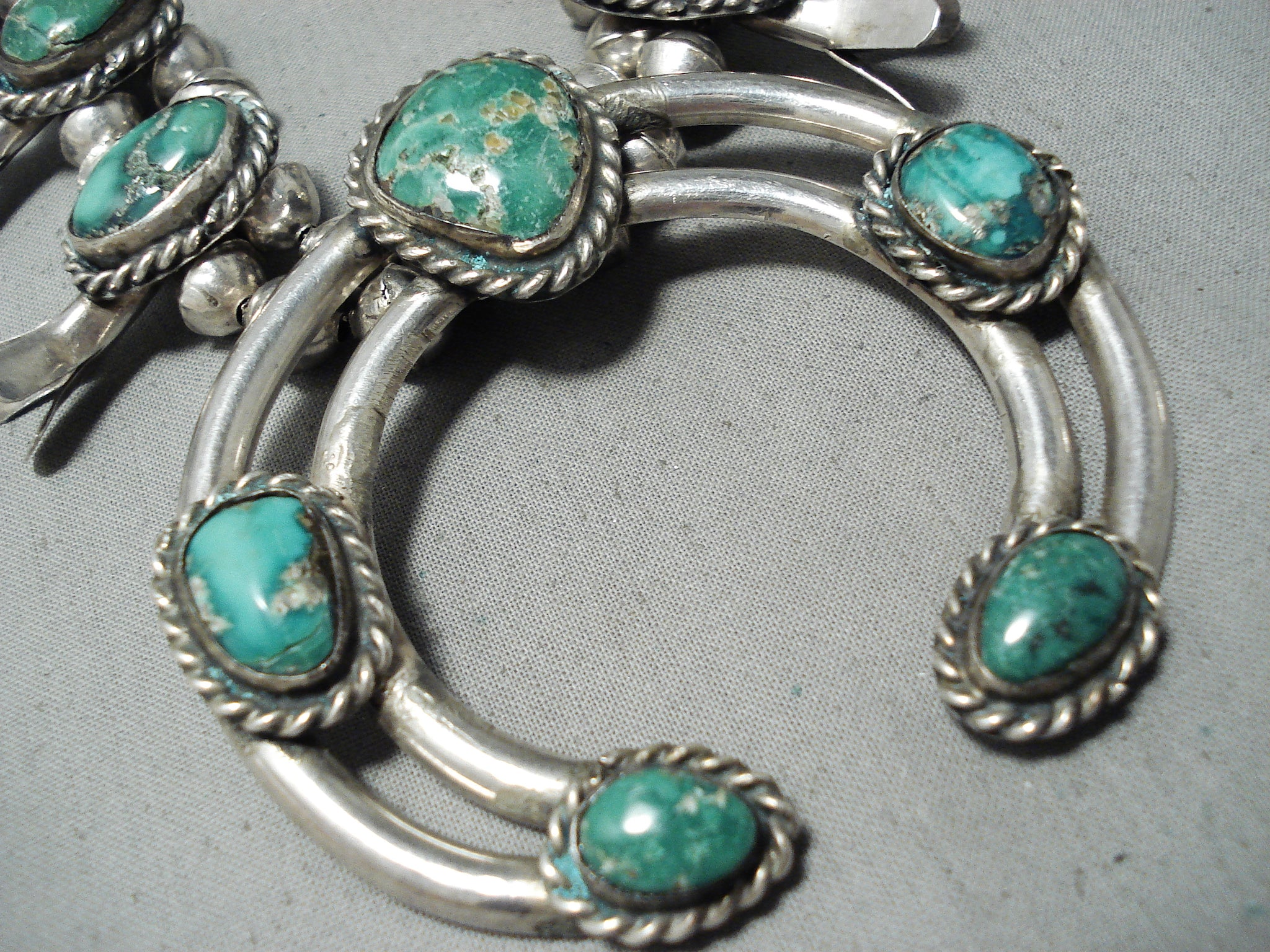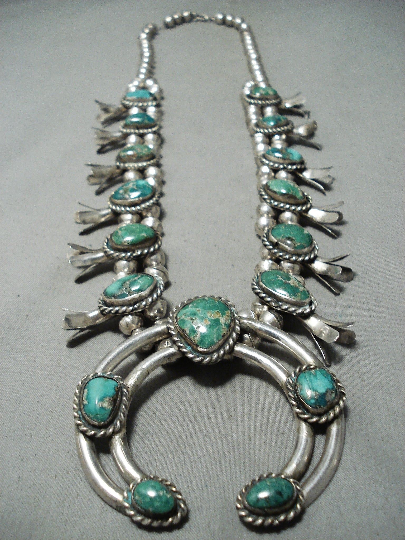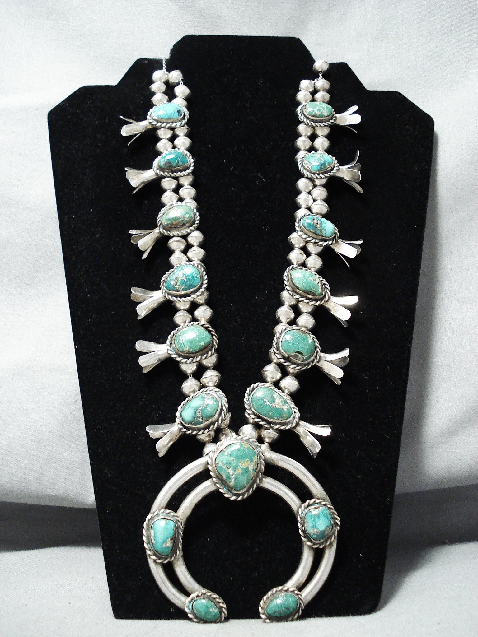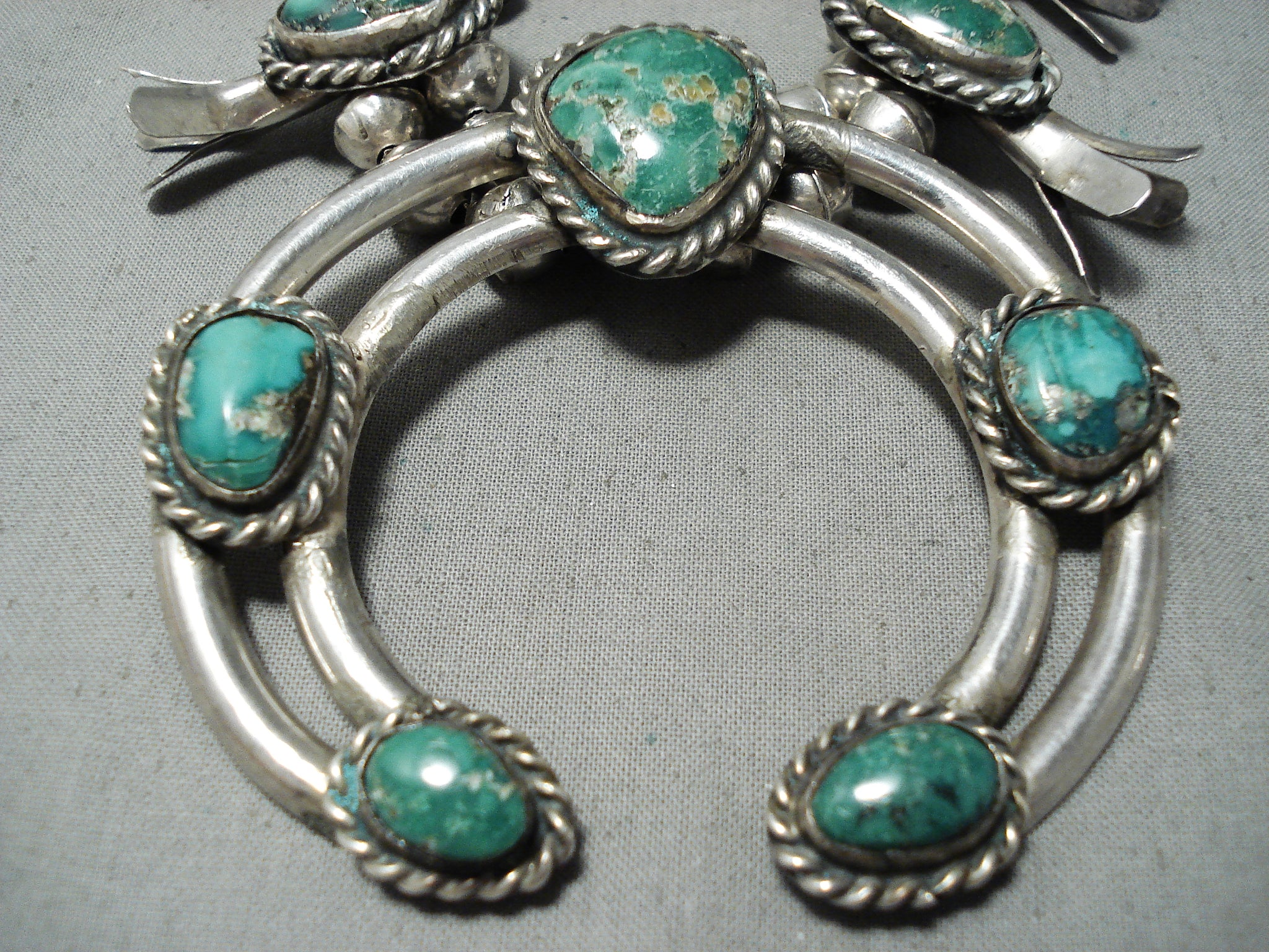 Women's Rare Turquoise Vintage Native American Navajo Sterling Silver Squash Blossom Necklace