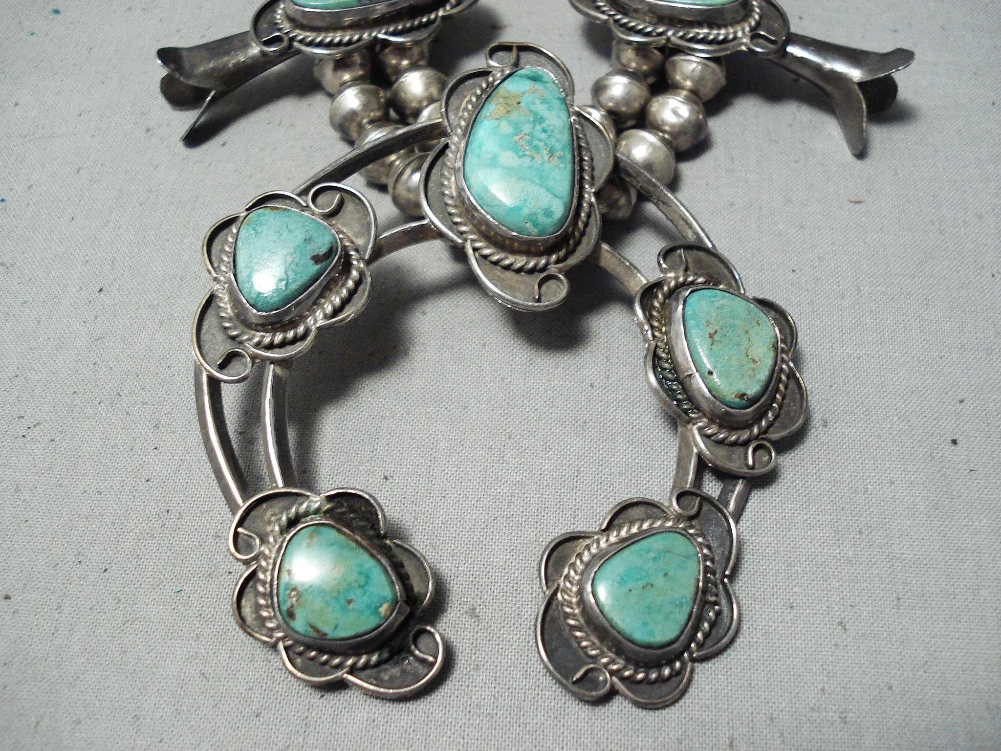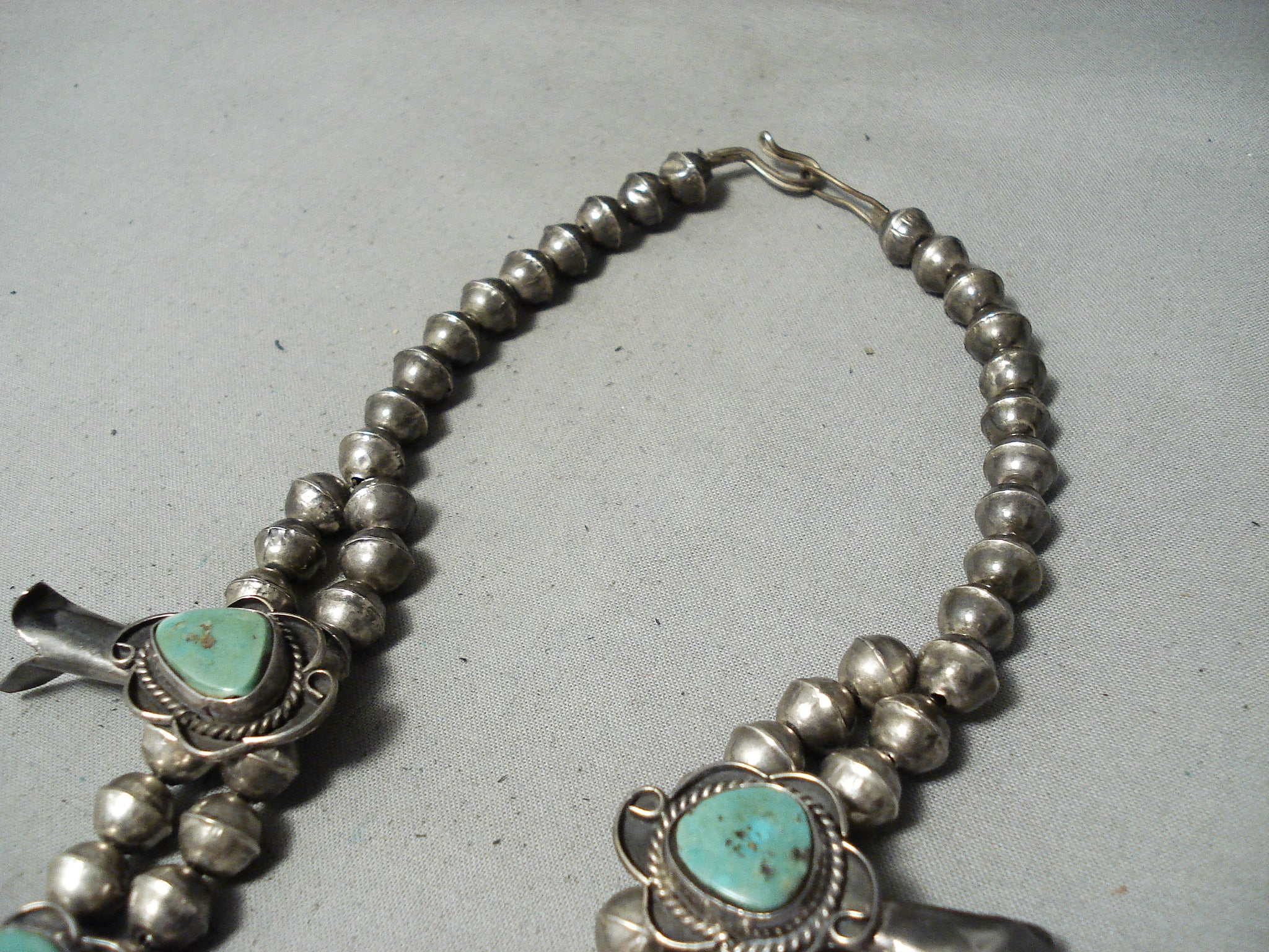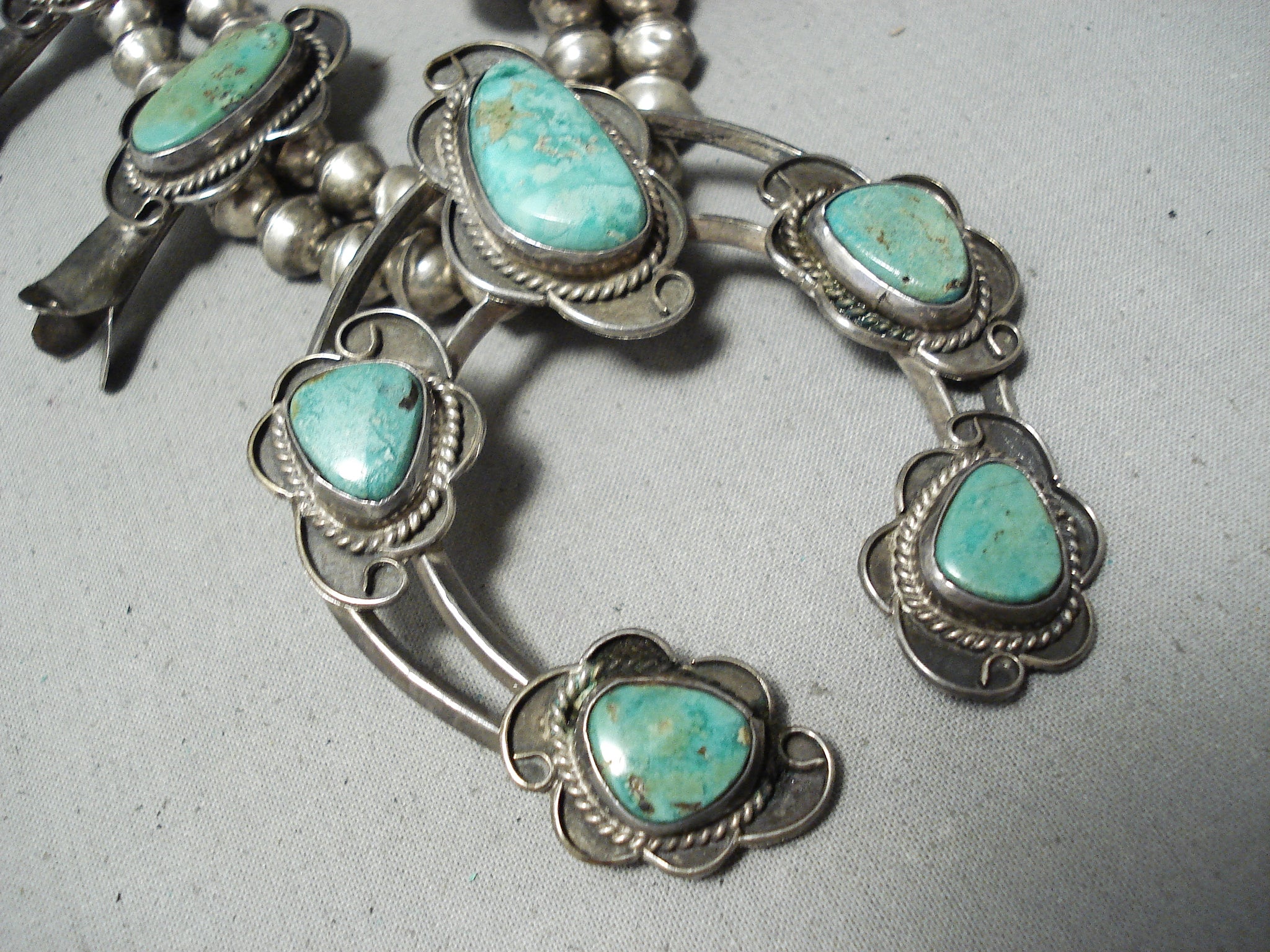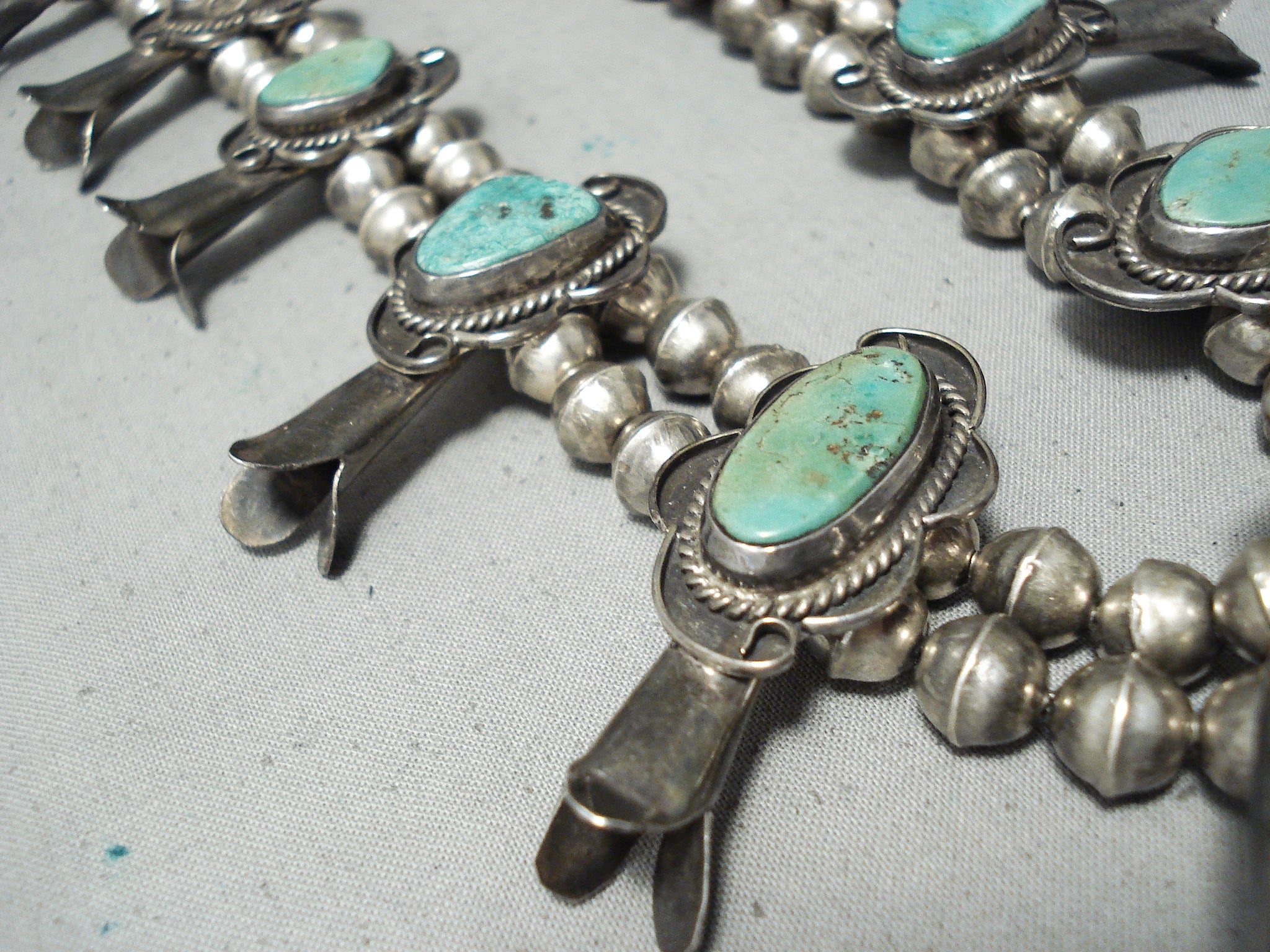 Women's Vintage Native American Navajo Royston Turquoise Sterling Silver Squash Blossom Necklace