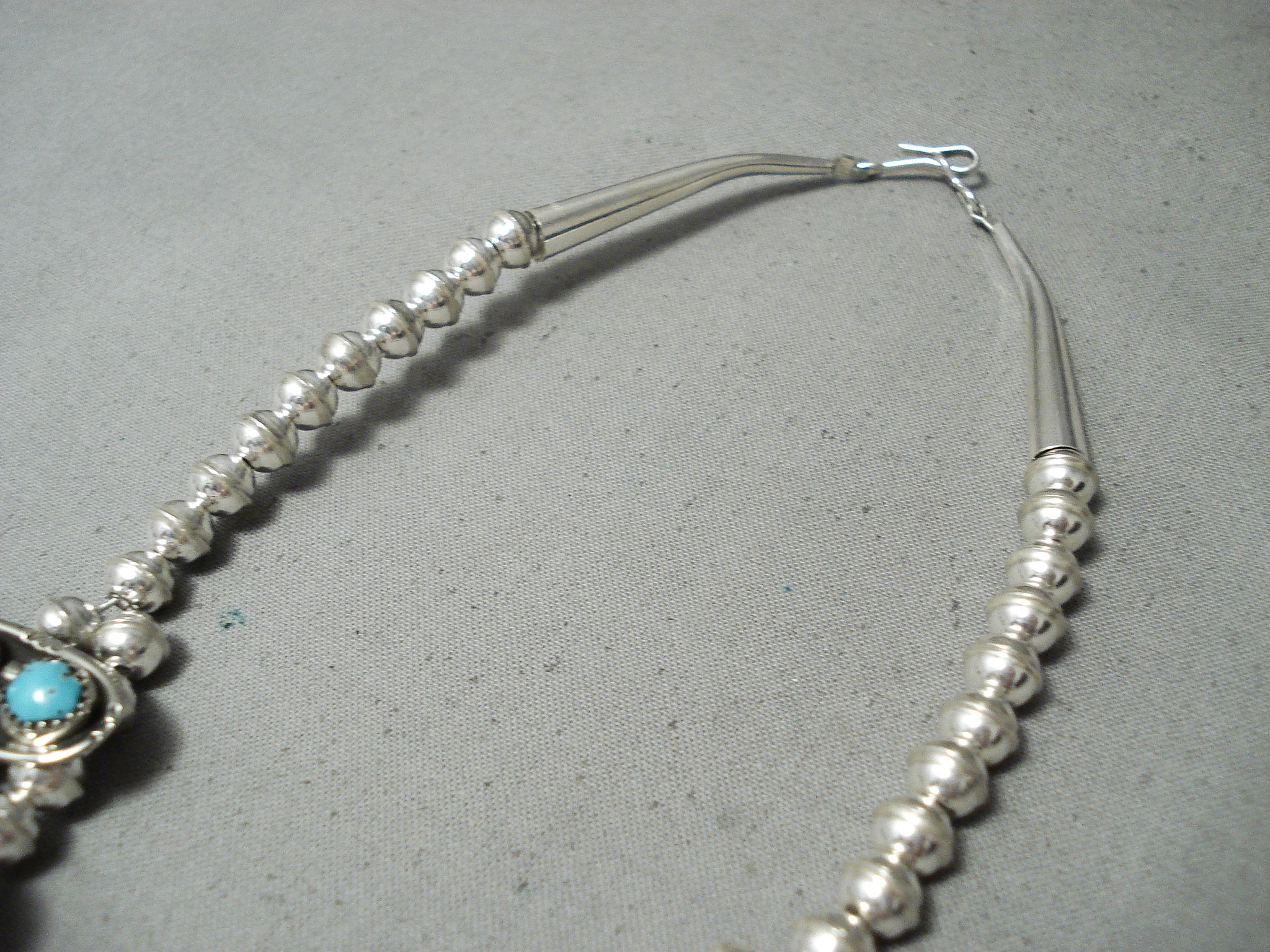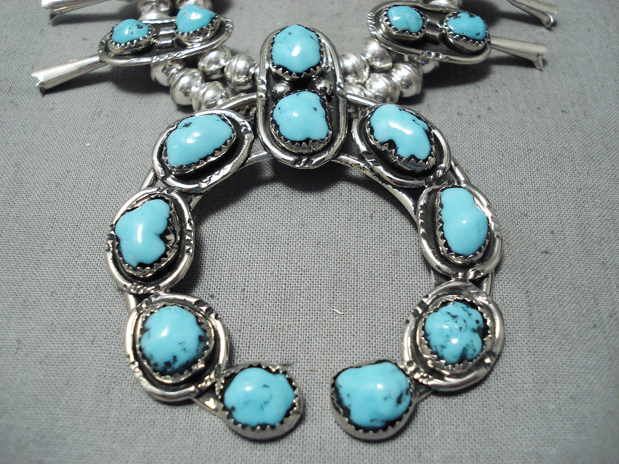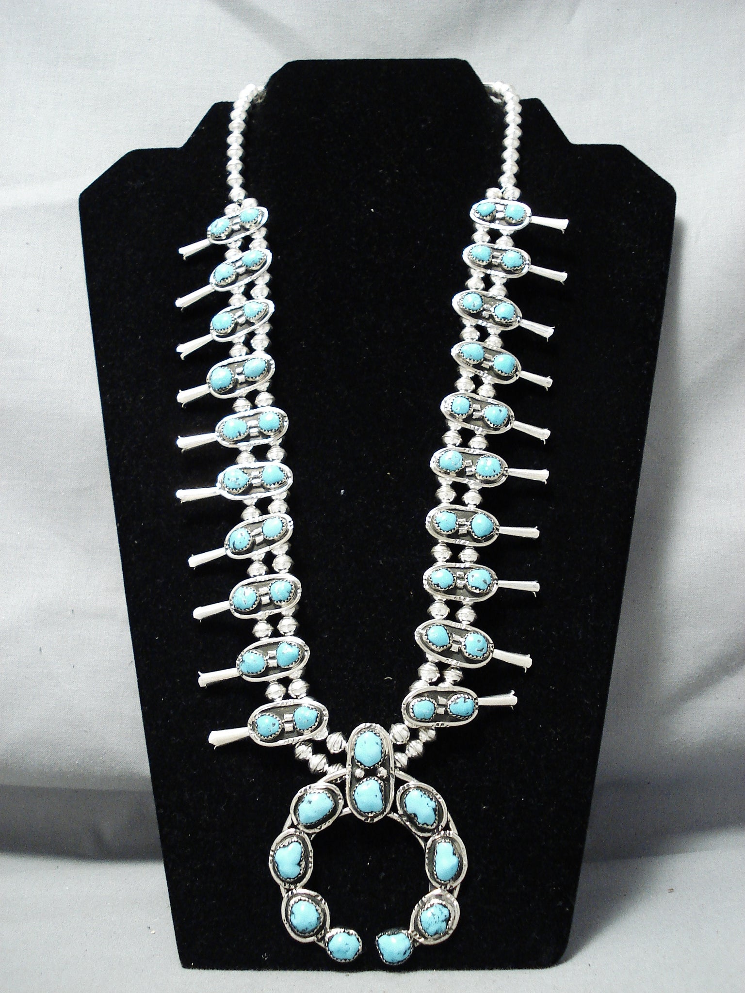Women's Vintage Native American Navajo Turquoise Sterling Silver Squash Blossom Necklace