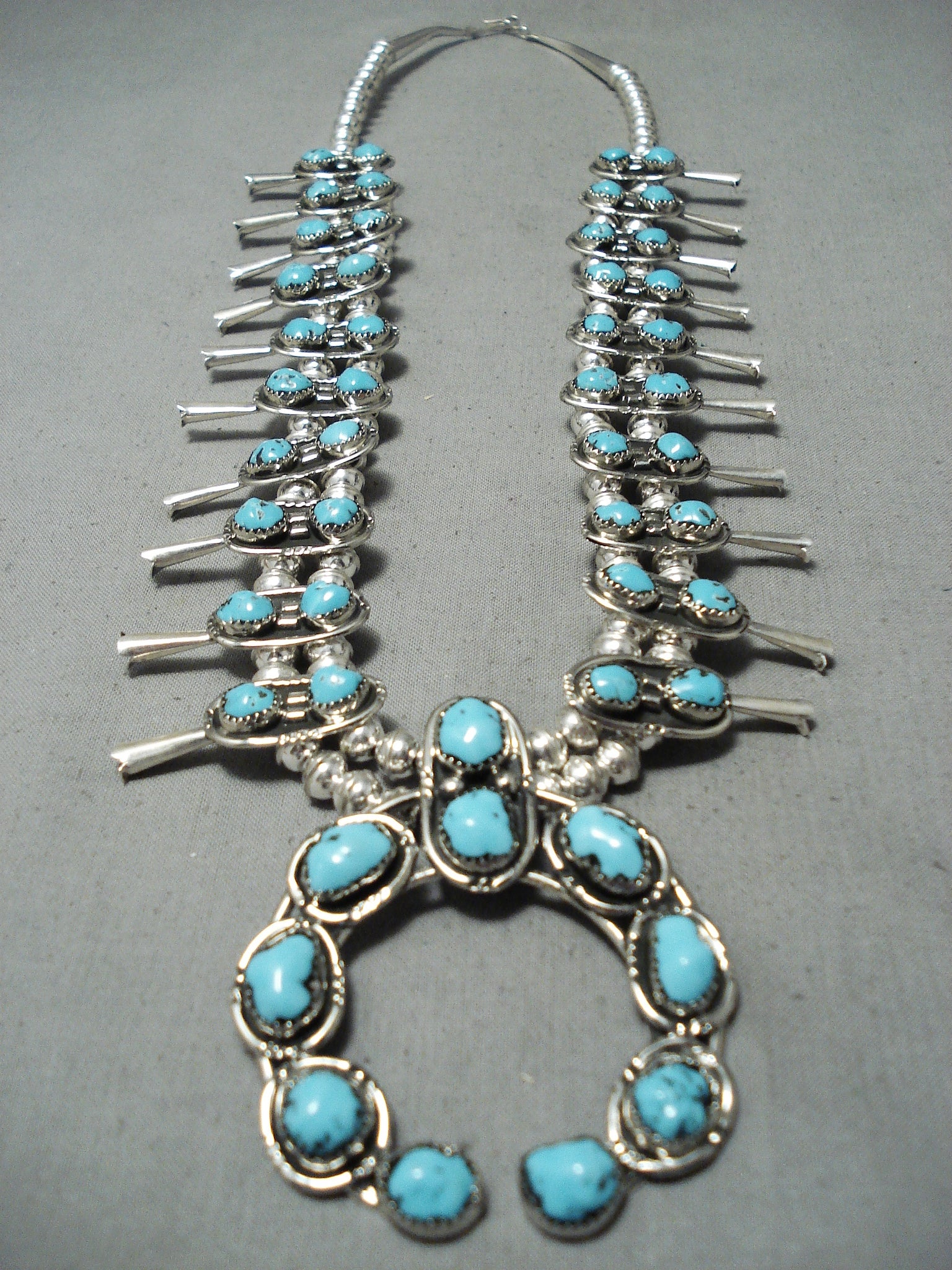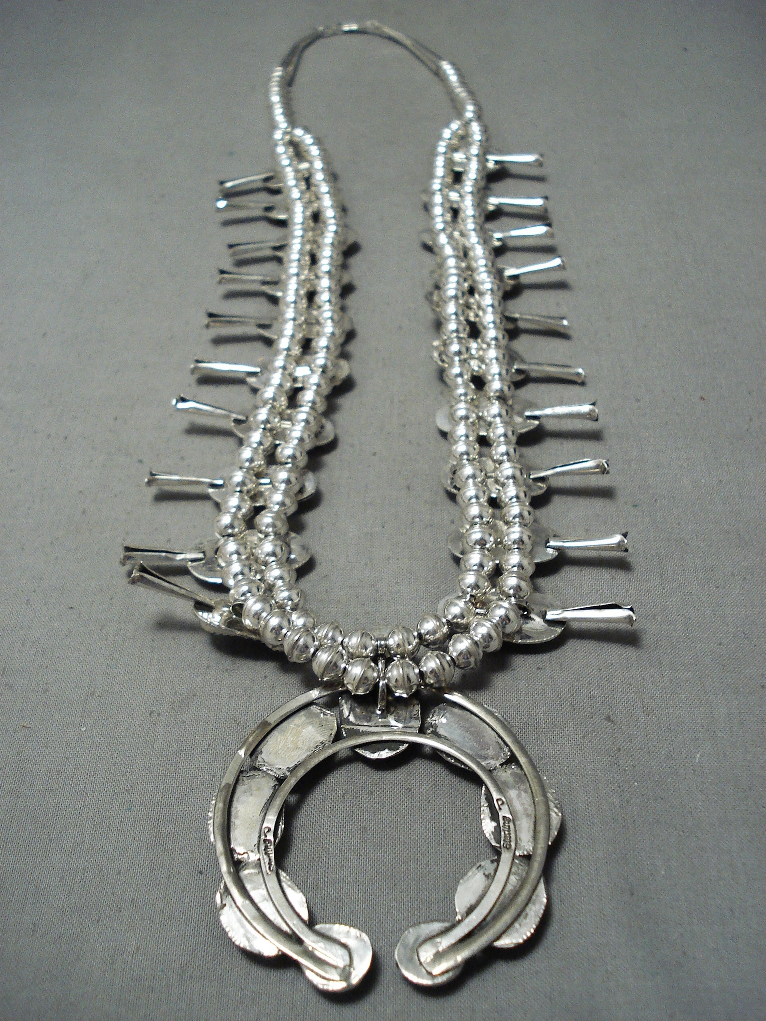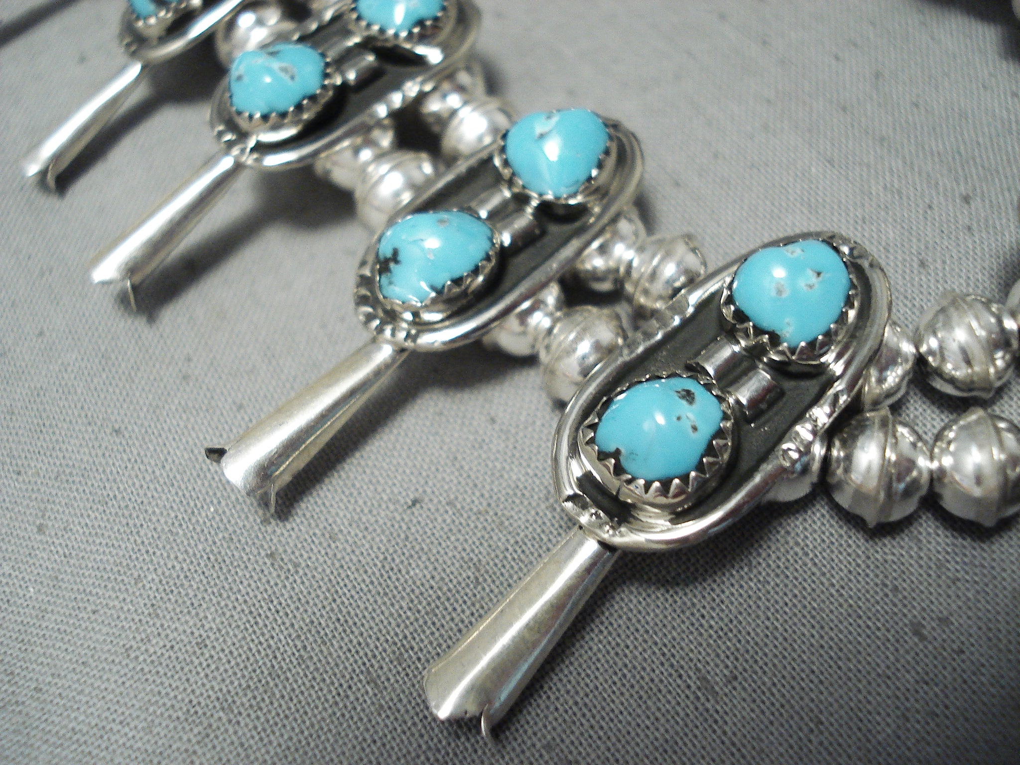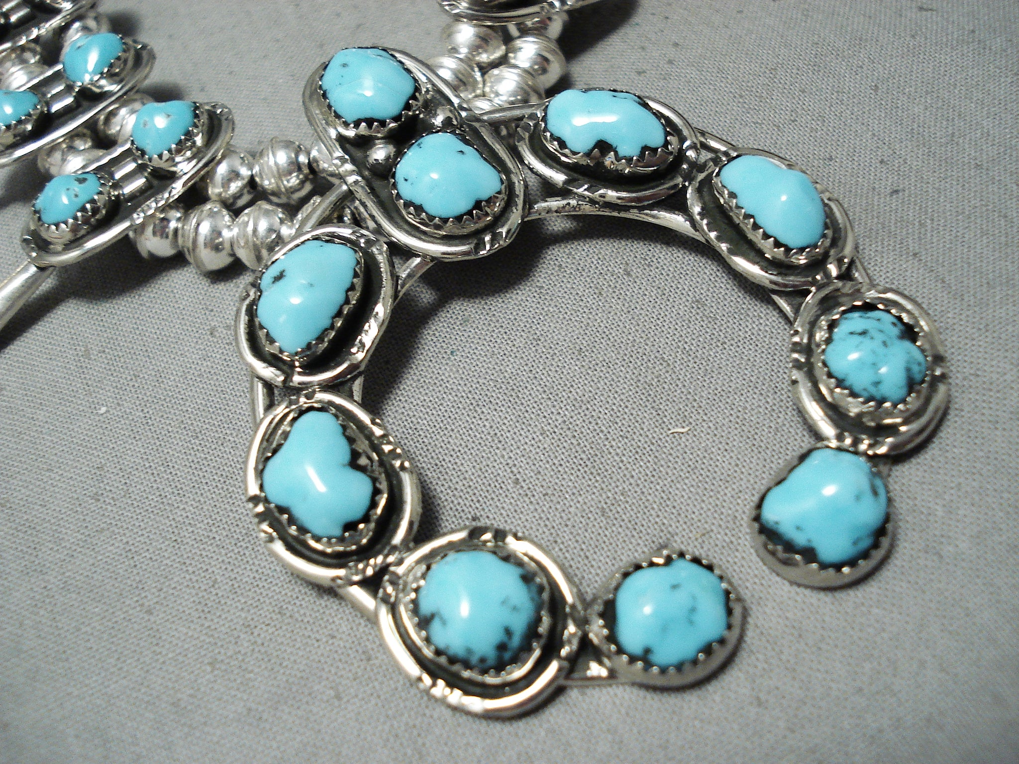 Women's Vintage Native American Navajo Turquoise Sterling Silver Squash Blossom Necklace