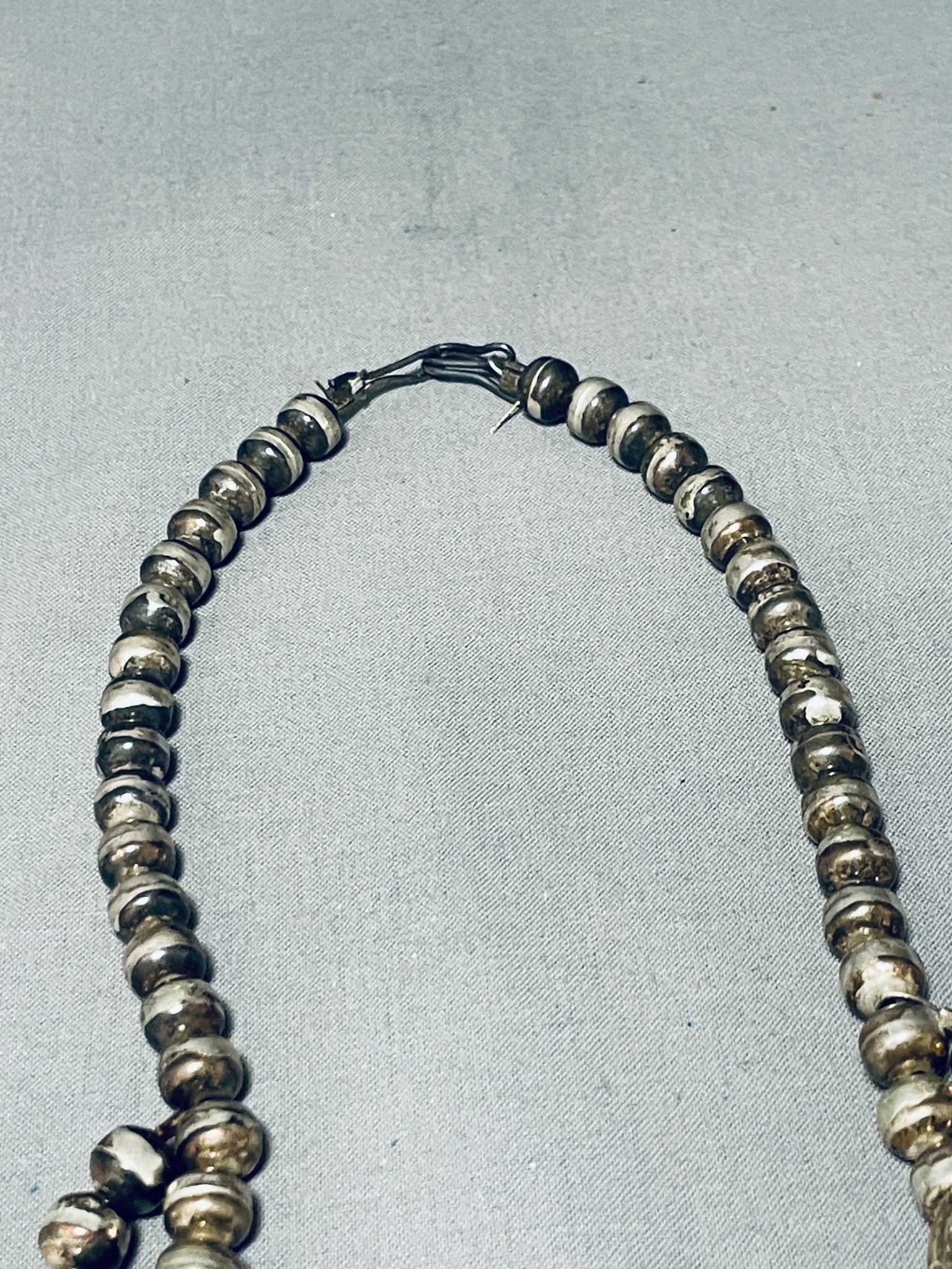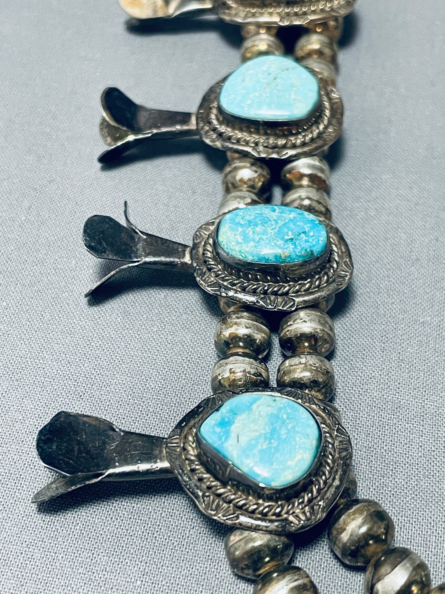 Womens Vintage Native American Navajo Turquoise Sterling Silver Squash Blossom Necklace