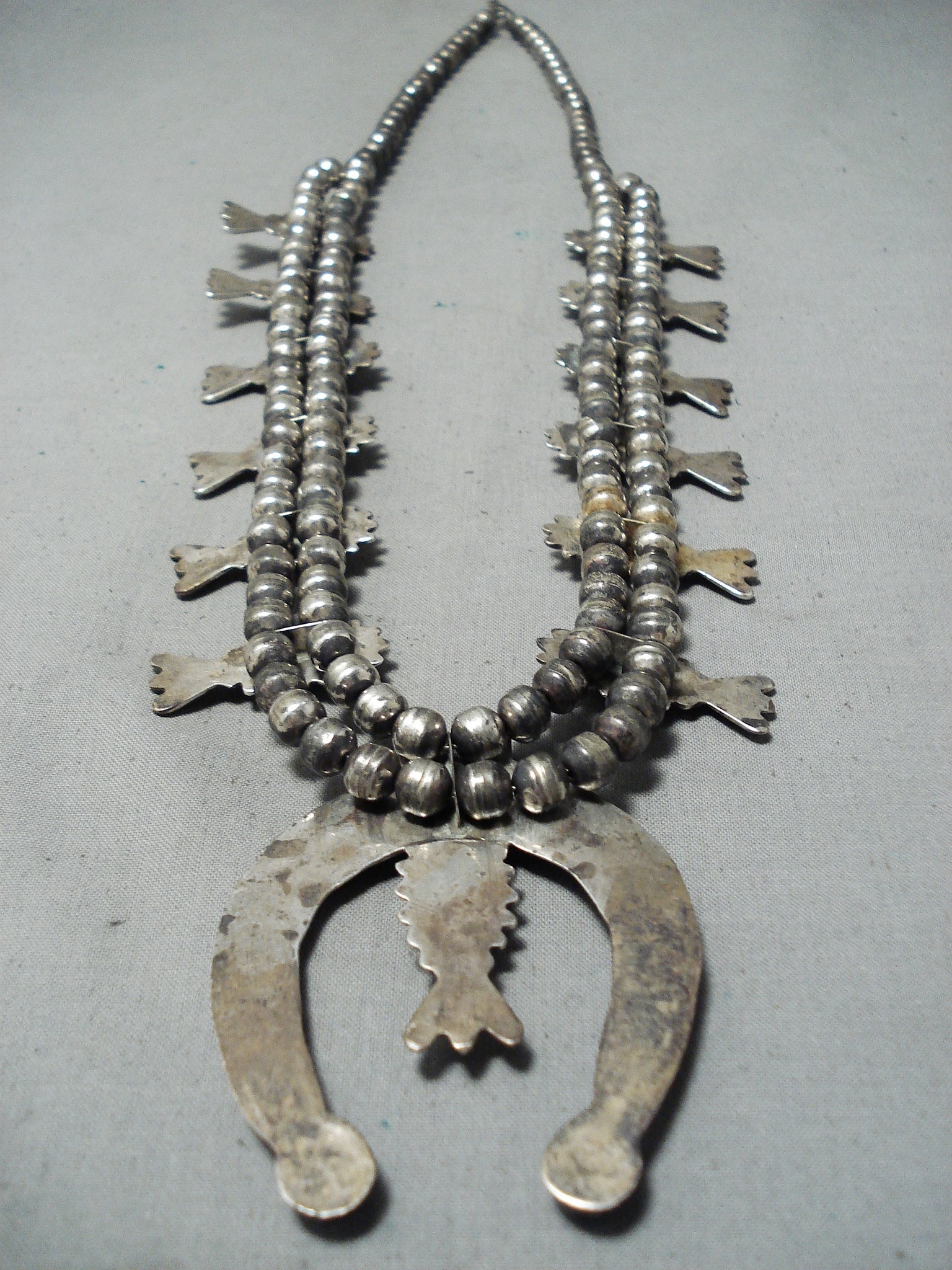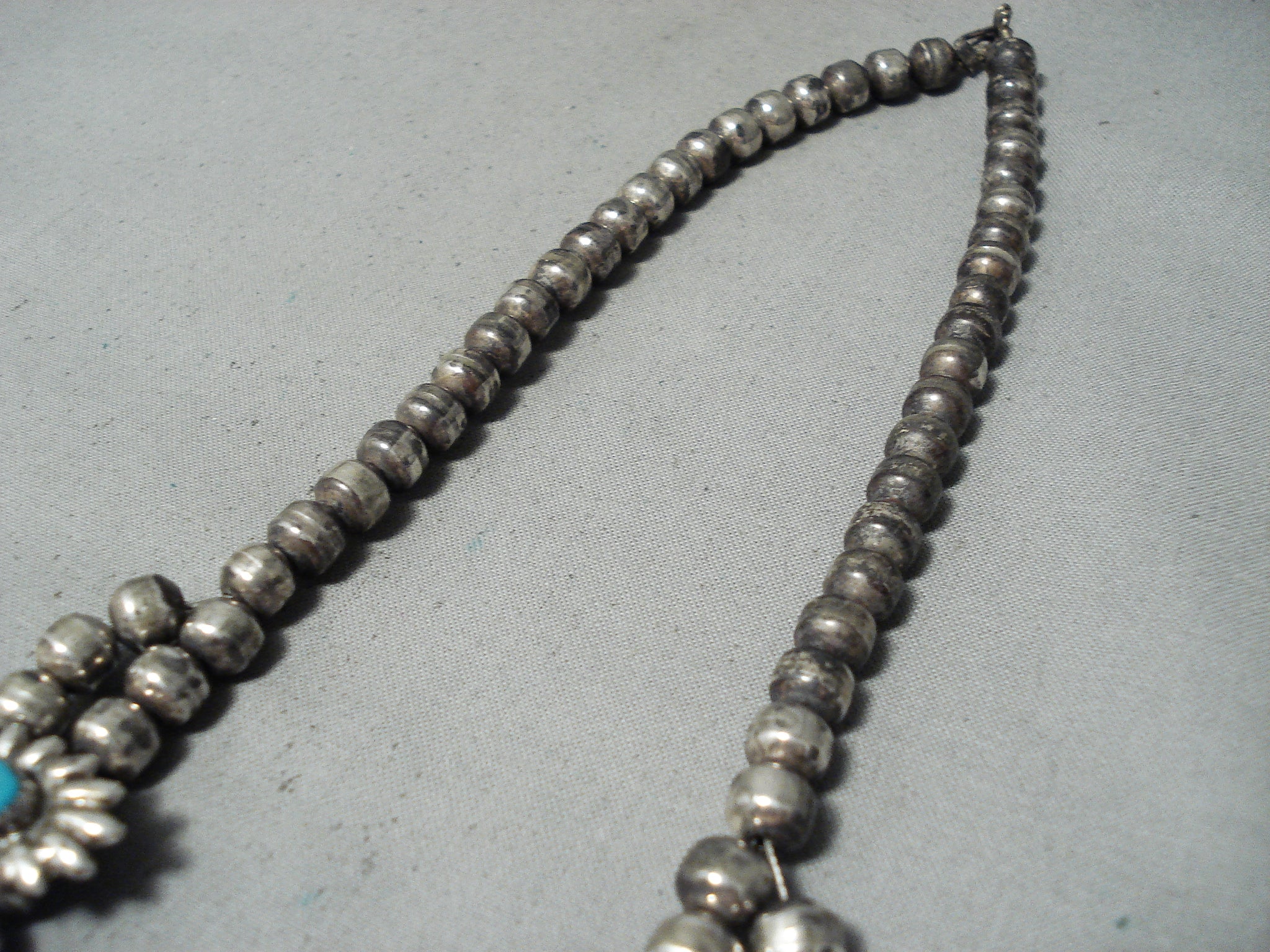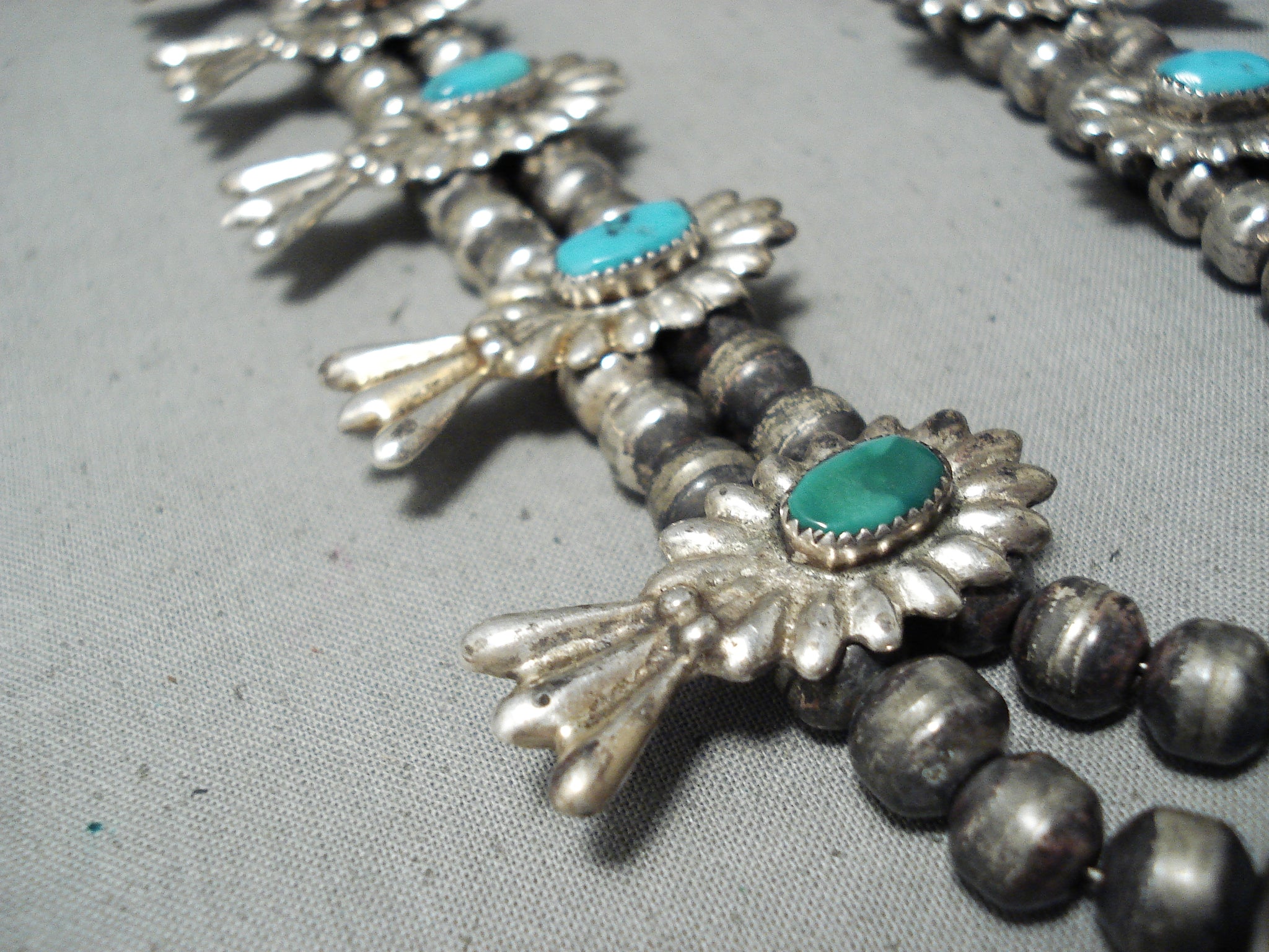 Women's Vintage Native American Navajo Turquoise Sterling Silver Squash Blossom Necklace