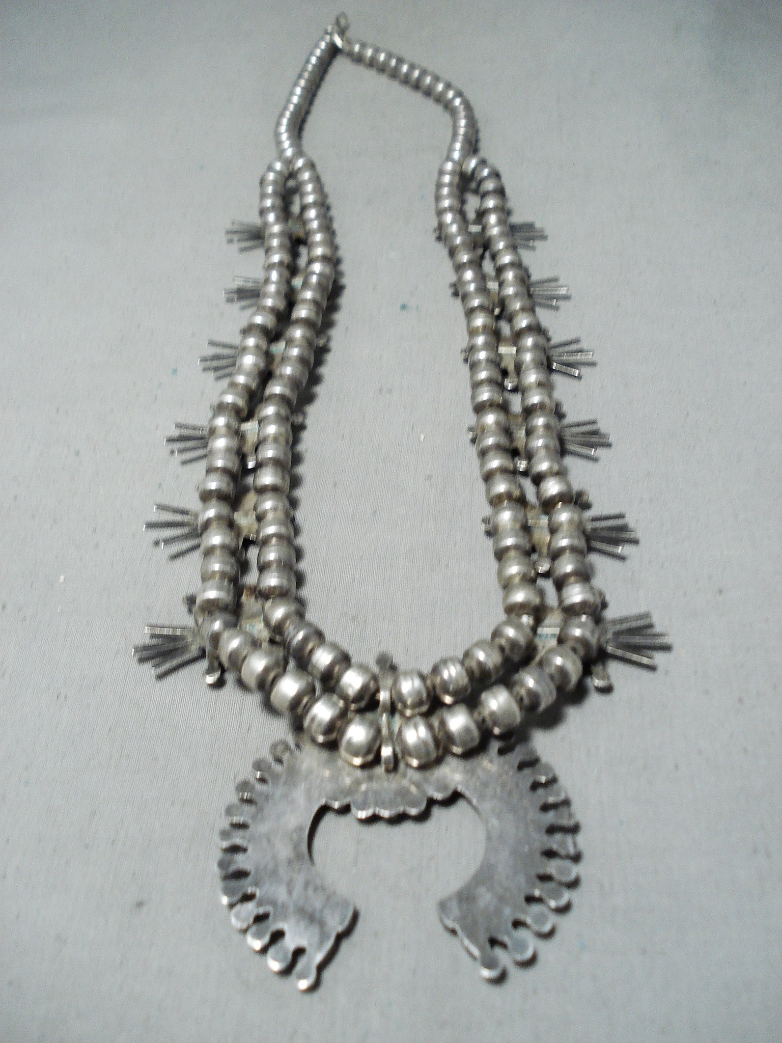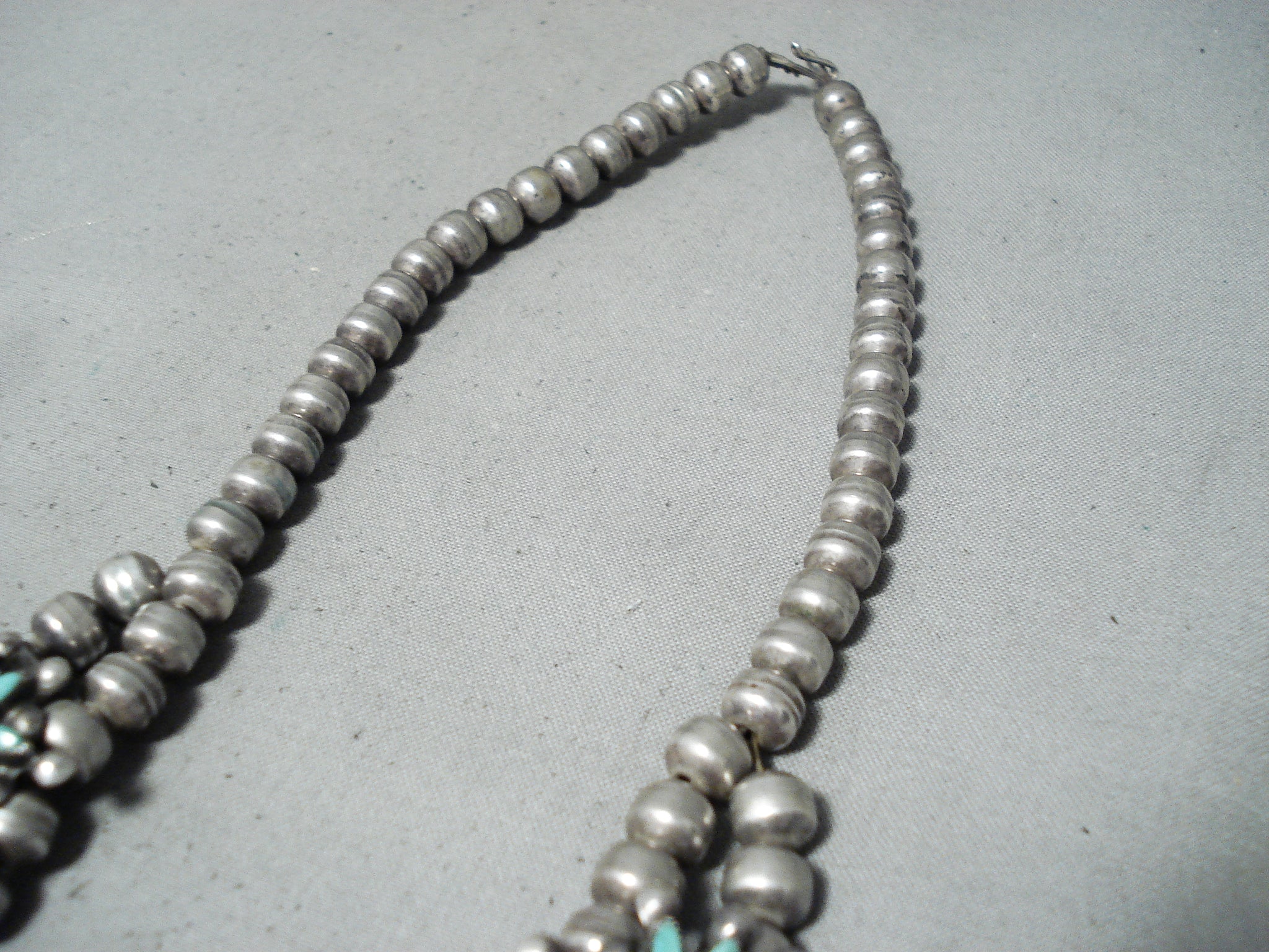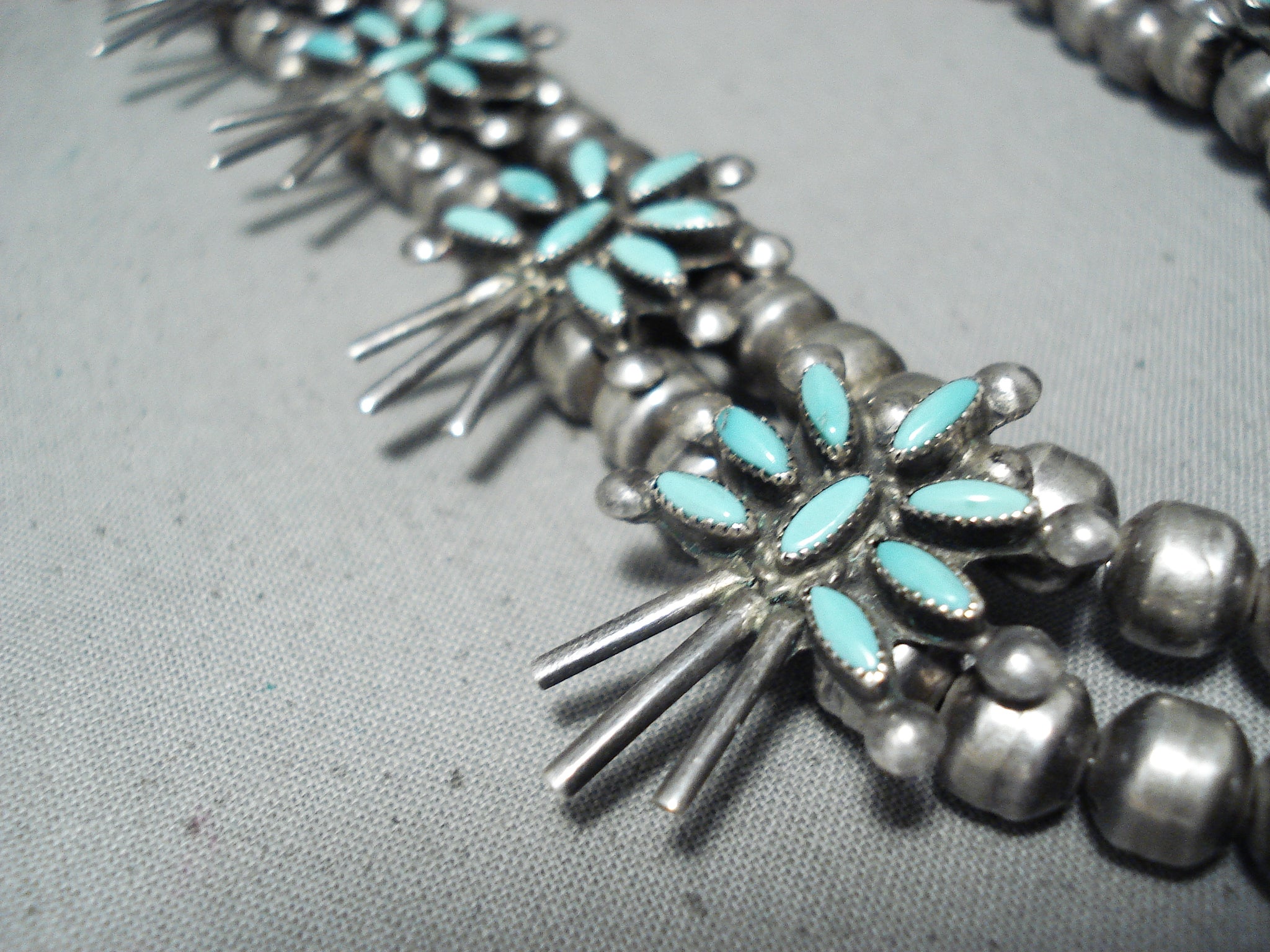 Women's Vintage Native American Zuni Turquoise Sterling Silver Squash Blossom Necklace Old