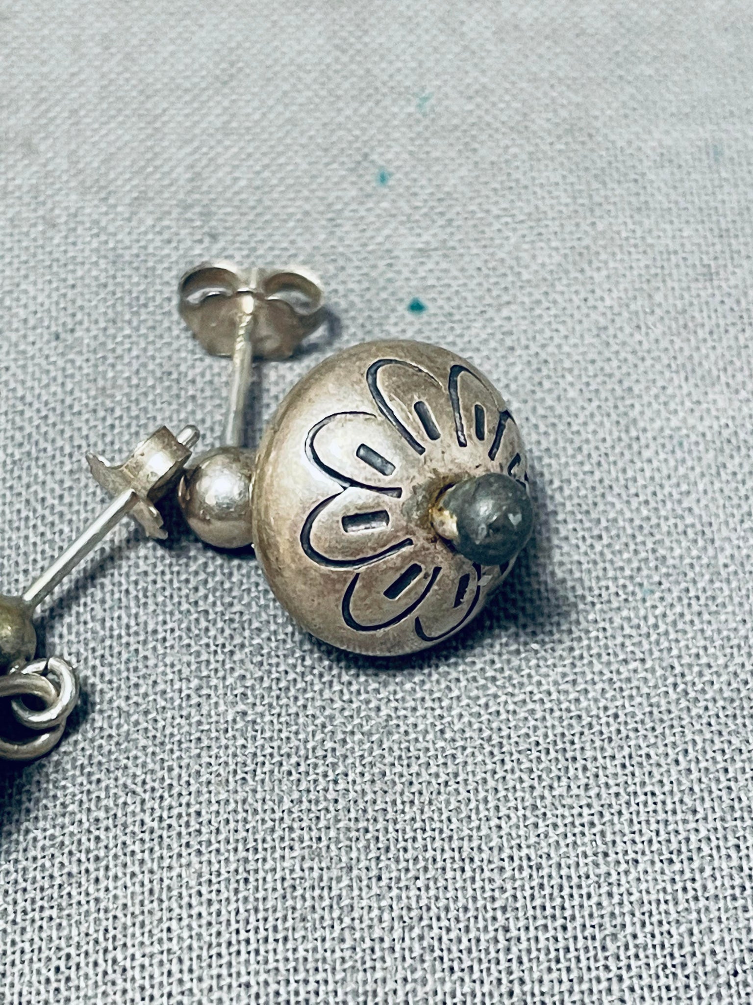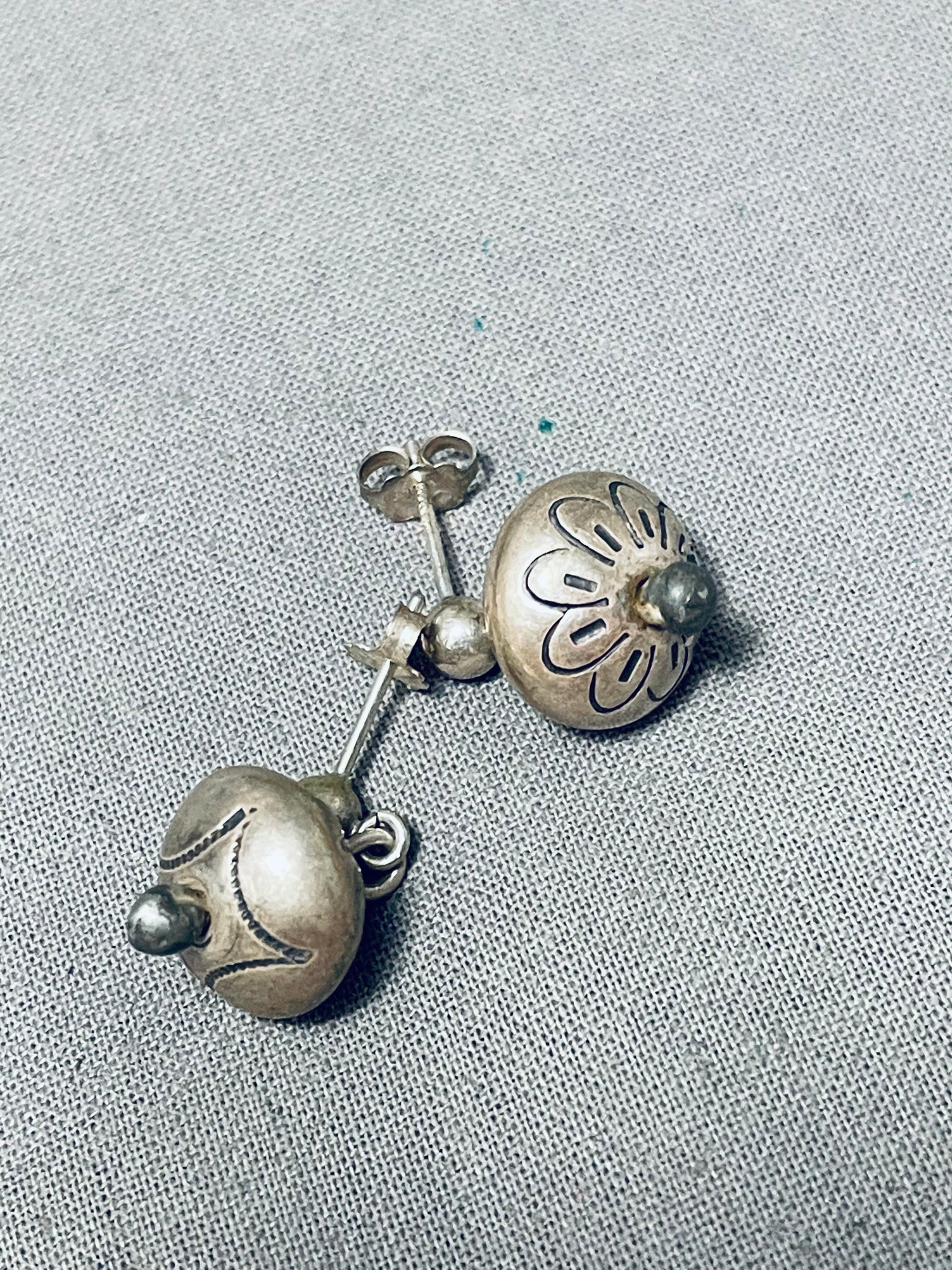 Wonderful Hand Tooled Vintage Native American Navajo Sterling Silver Earrings
