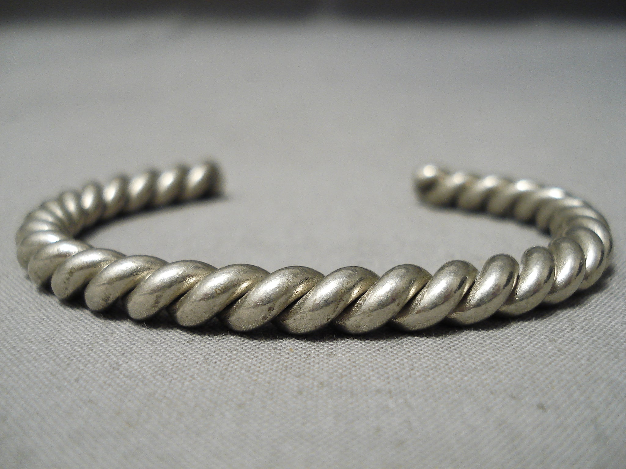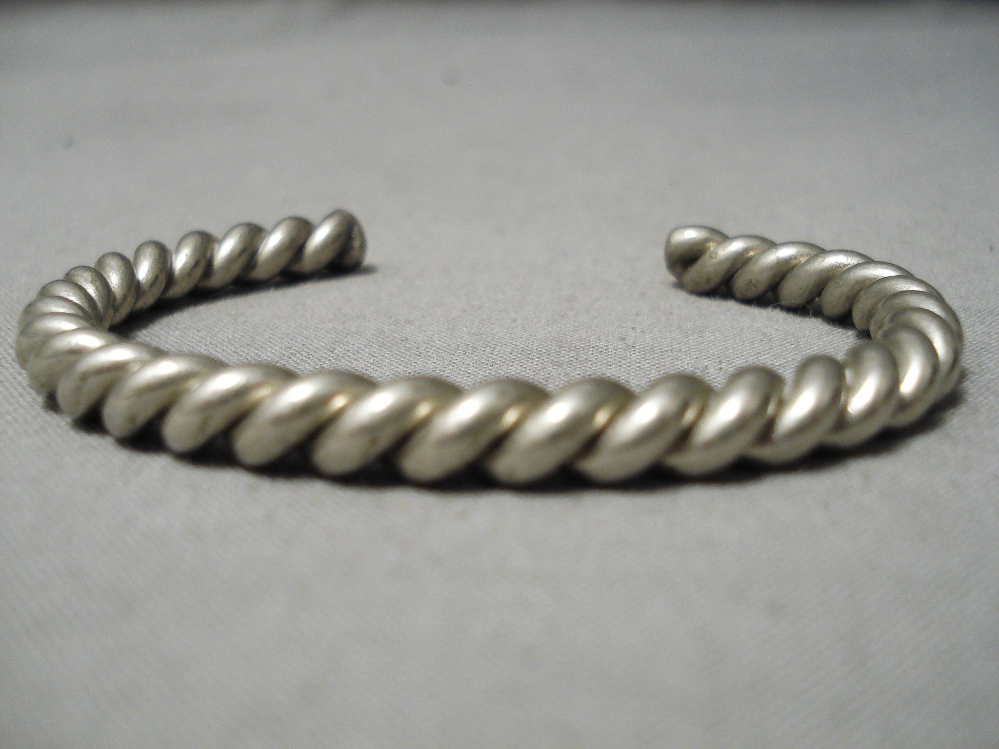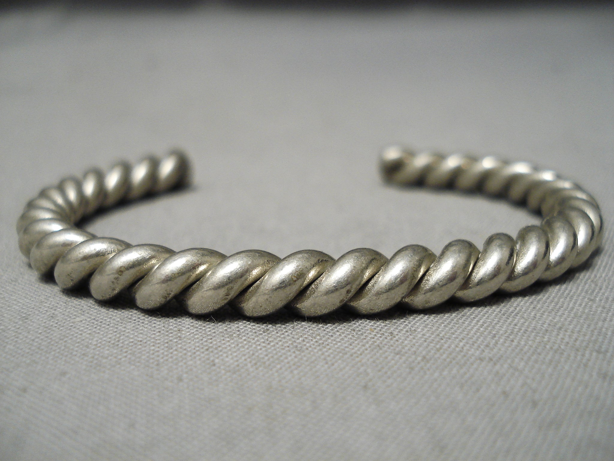 Wonderful Vintage Native American Navajo Handwoven Sterling Silver Bracelet Cuff Old