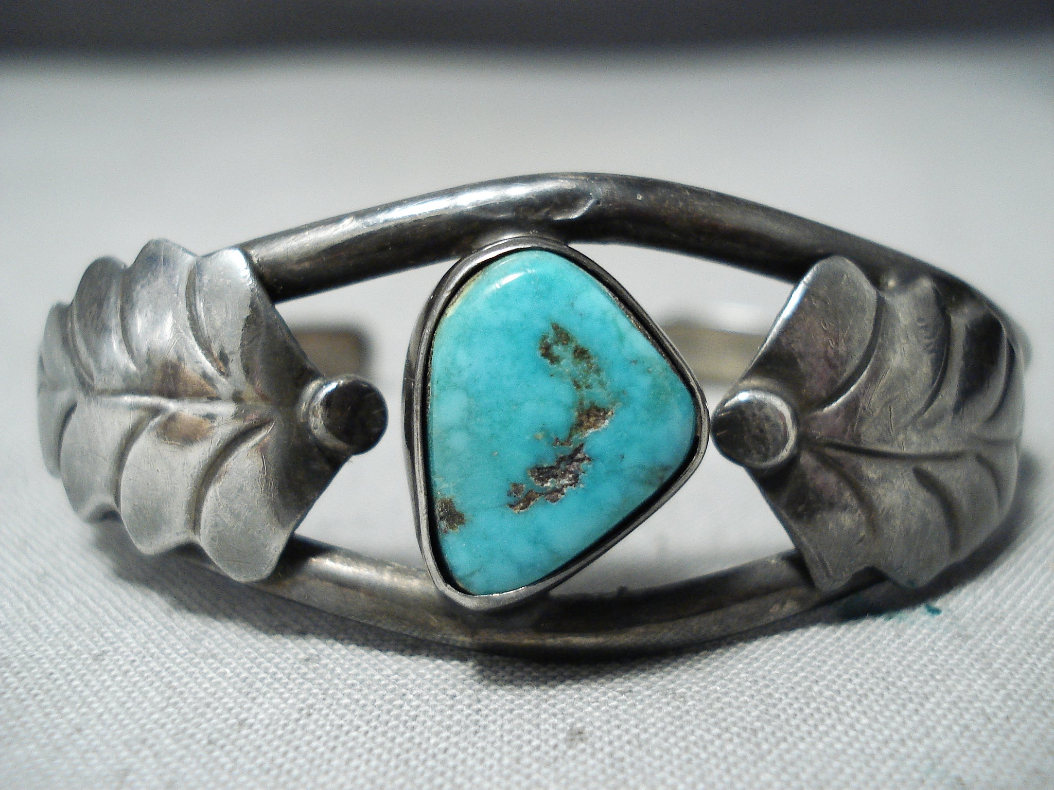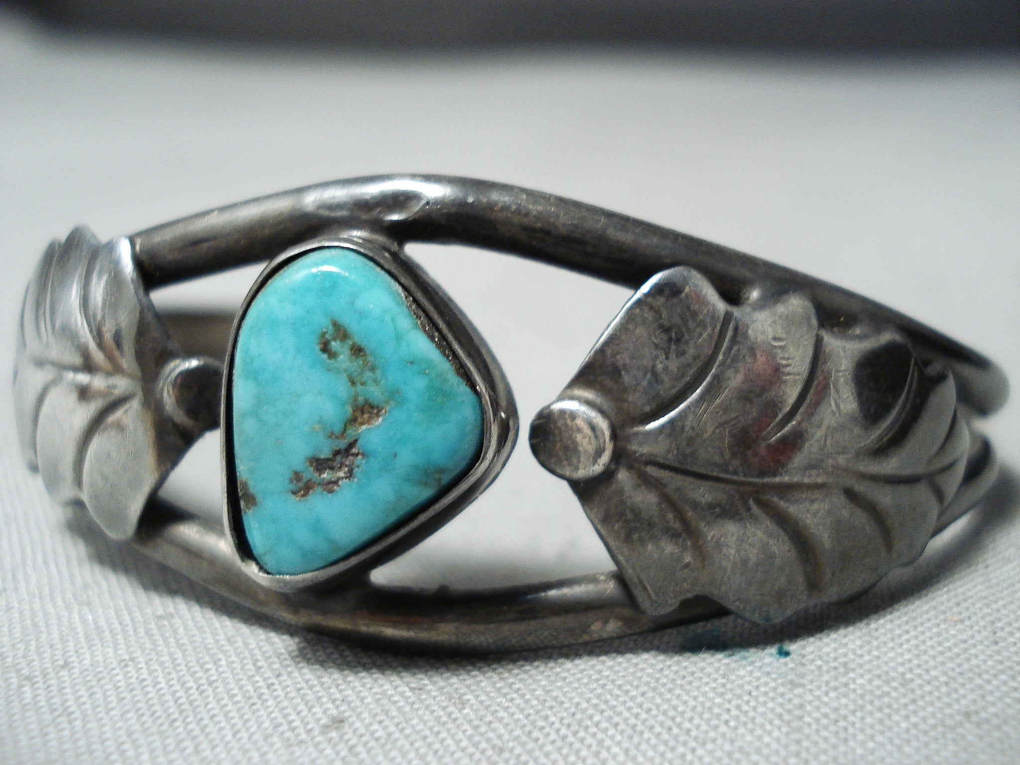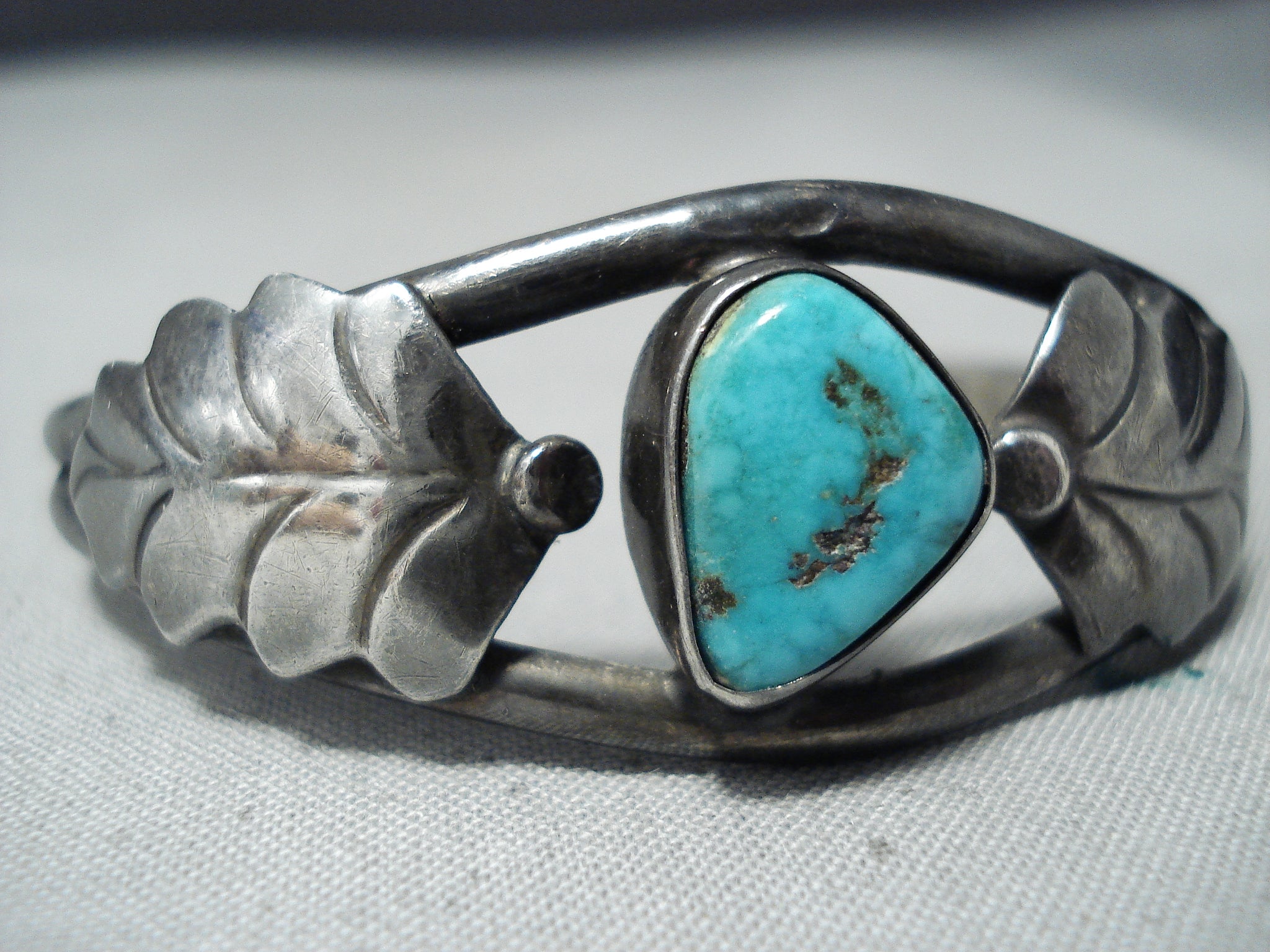 Wonderful Vintage Native American Navajo Kingman Turquoise Sterling Silver Bracelet Old