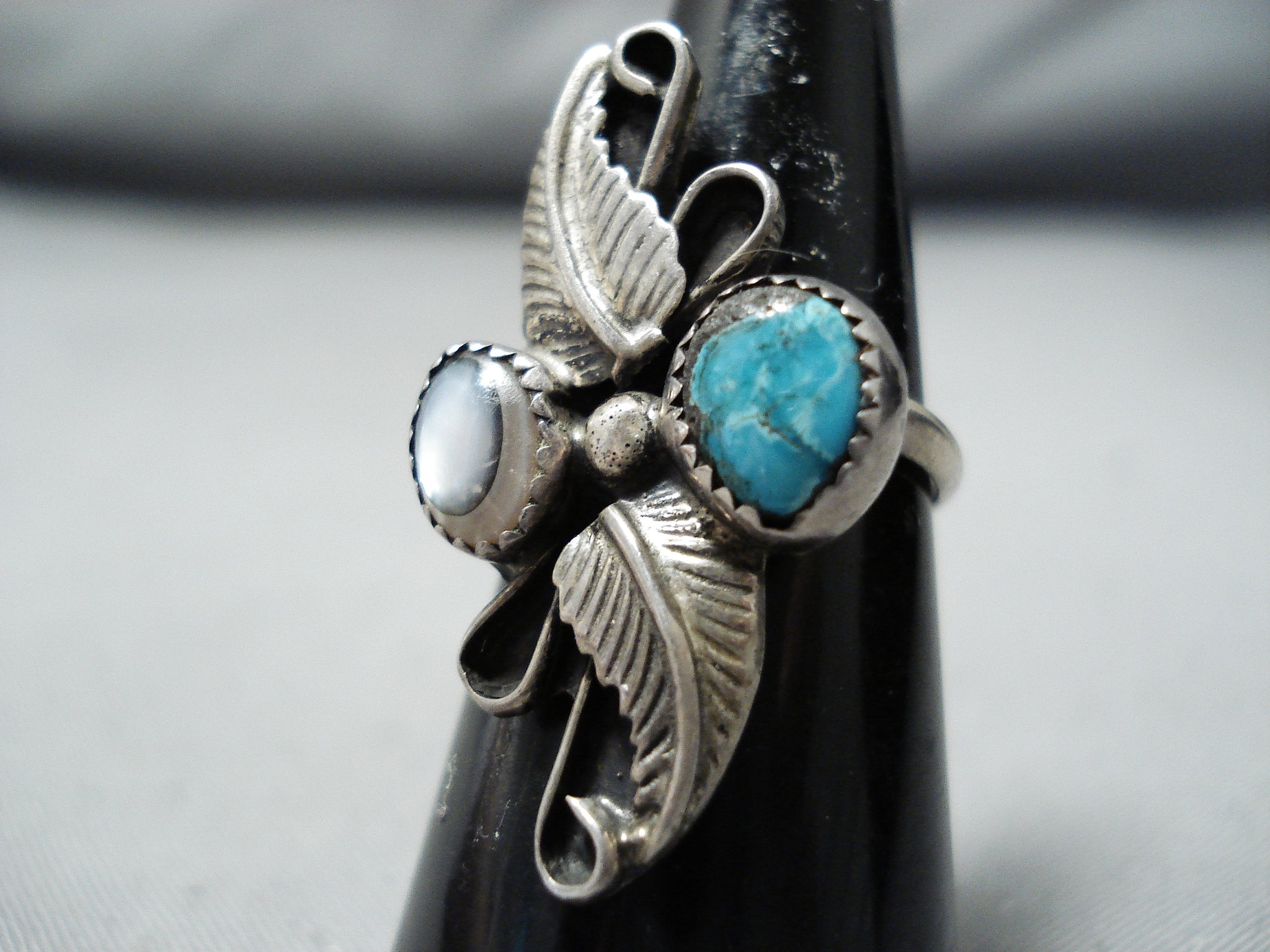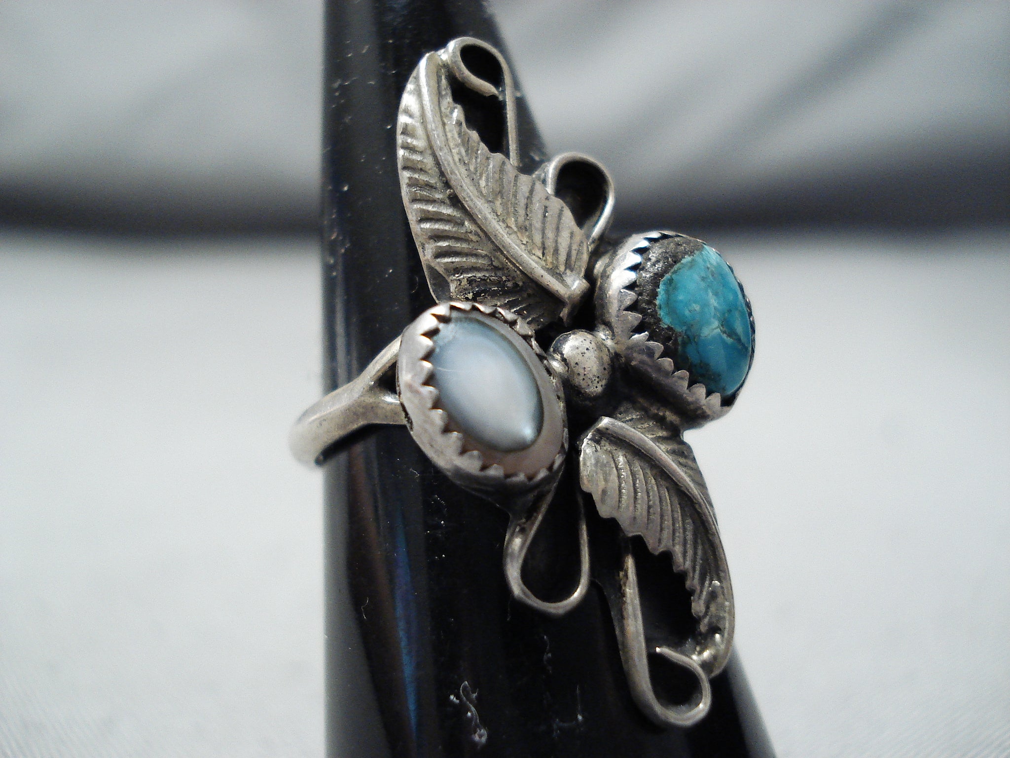 Wonderful Vintage Native American Navajo Turquoise & Mop Sterling Silver Ring Old