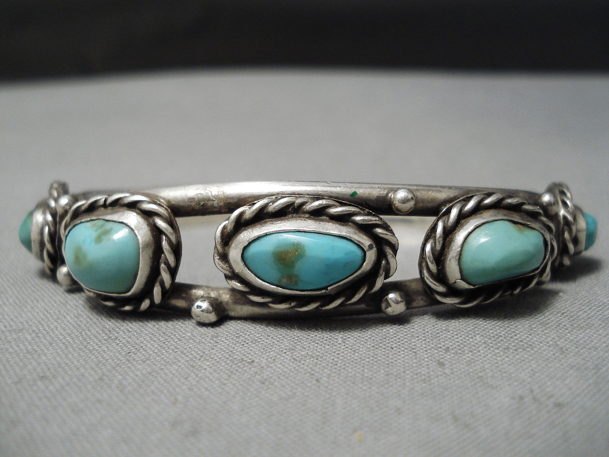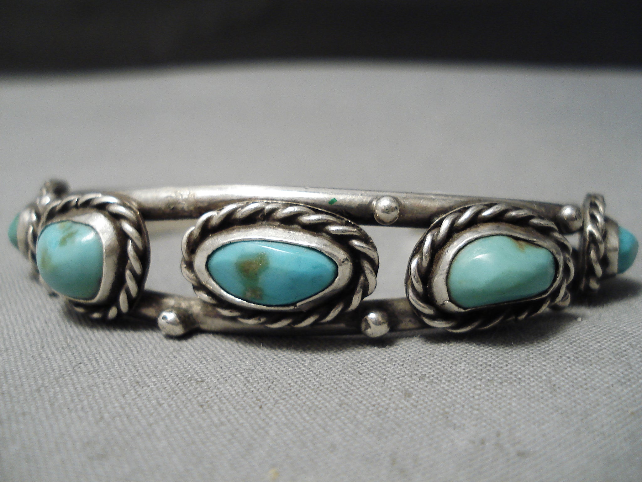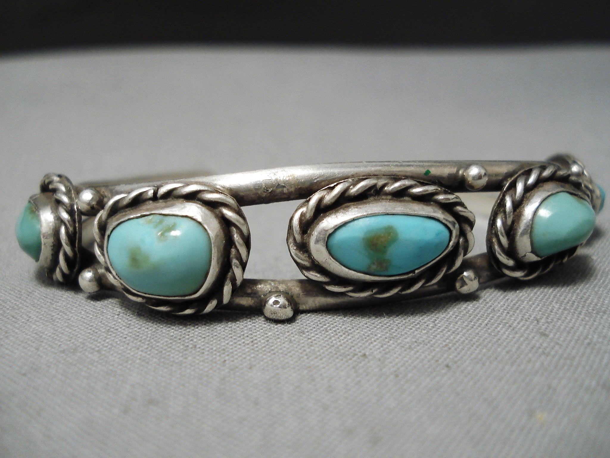Wonderful Vintage Native American Navajo Turquoise Sterling Silver Bracelet Old