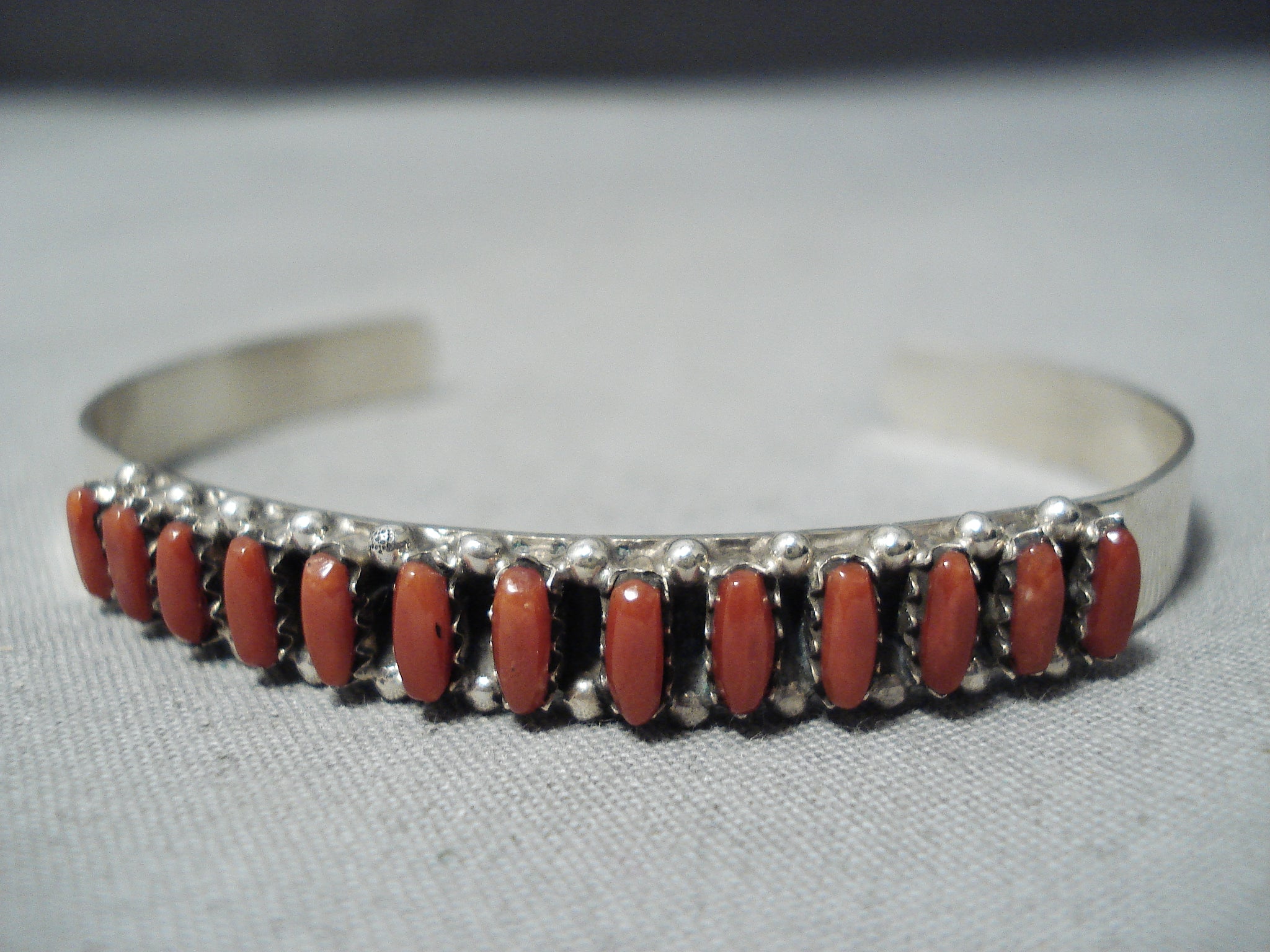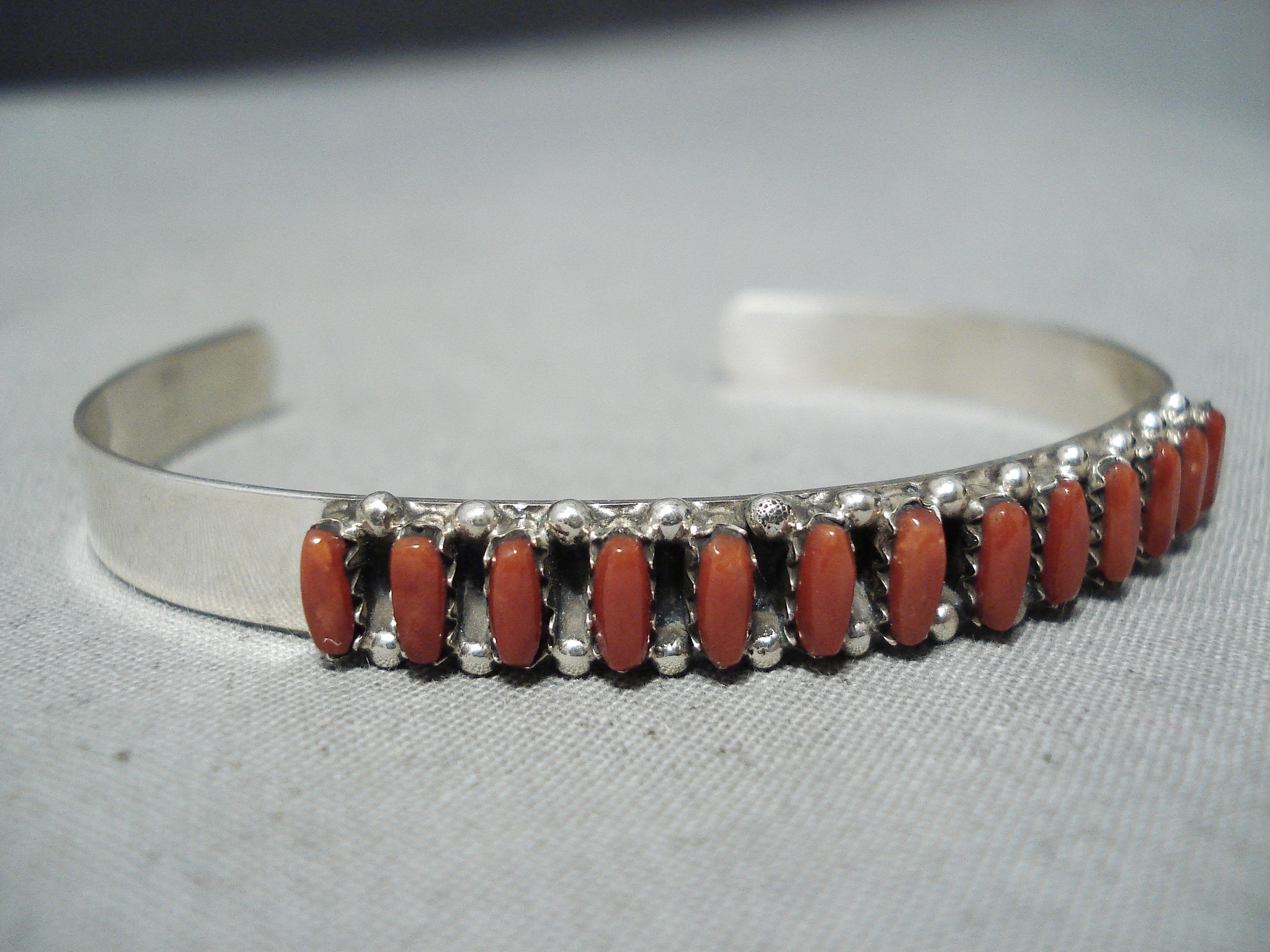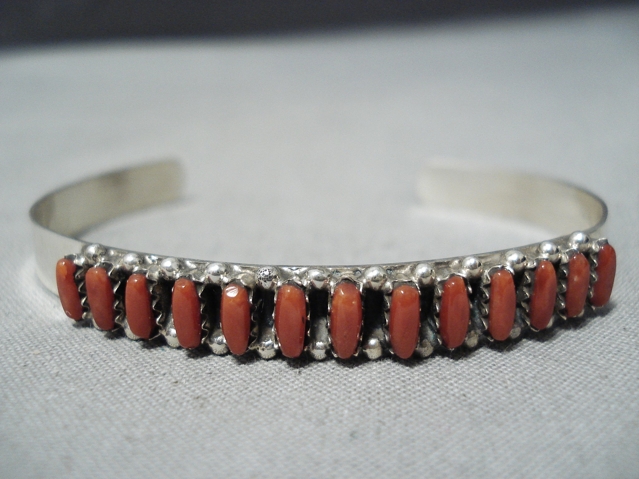 Wonderful Zuni Coral Sterling Silver Bracelet Native American