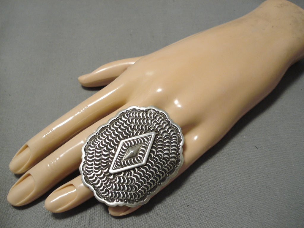 Wow Stamp Work Genius Native American Navajo Important Sterling Silver Ring