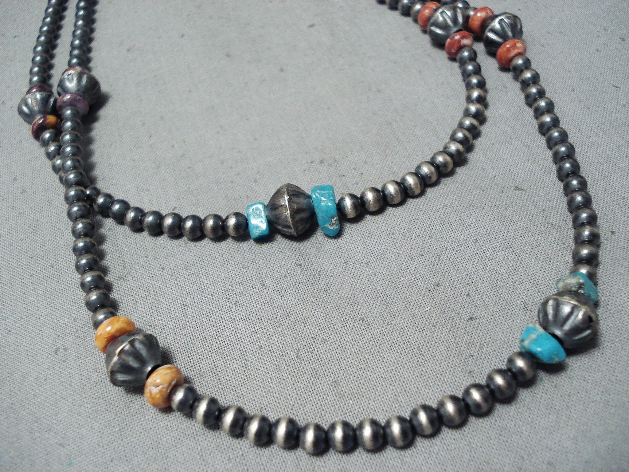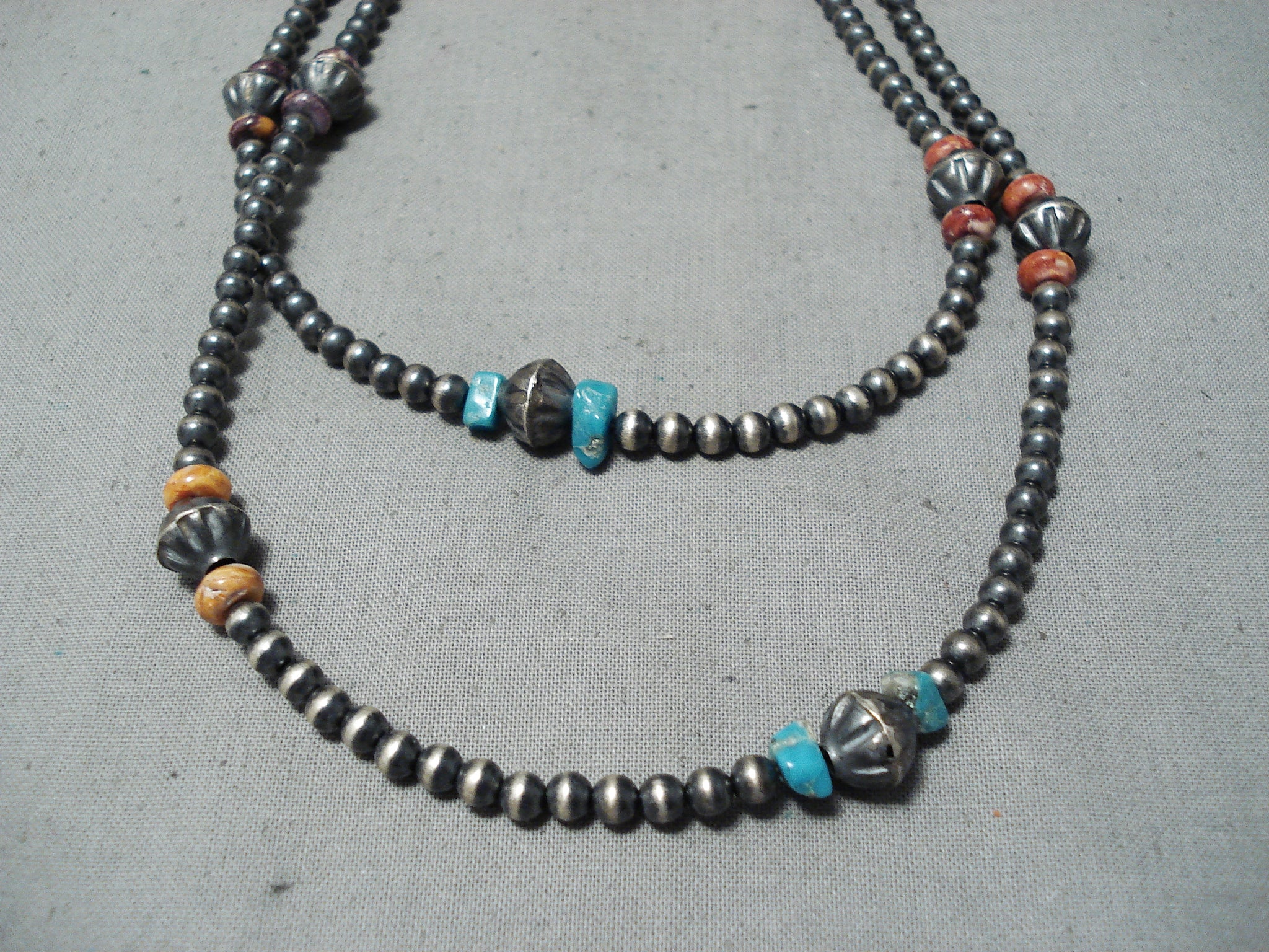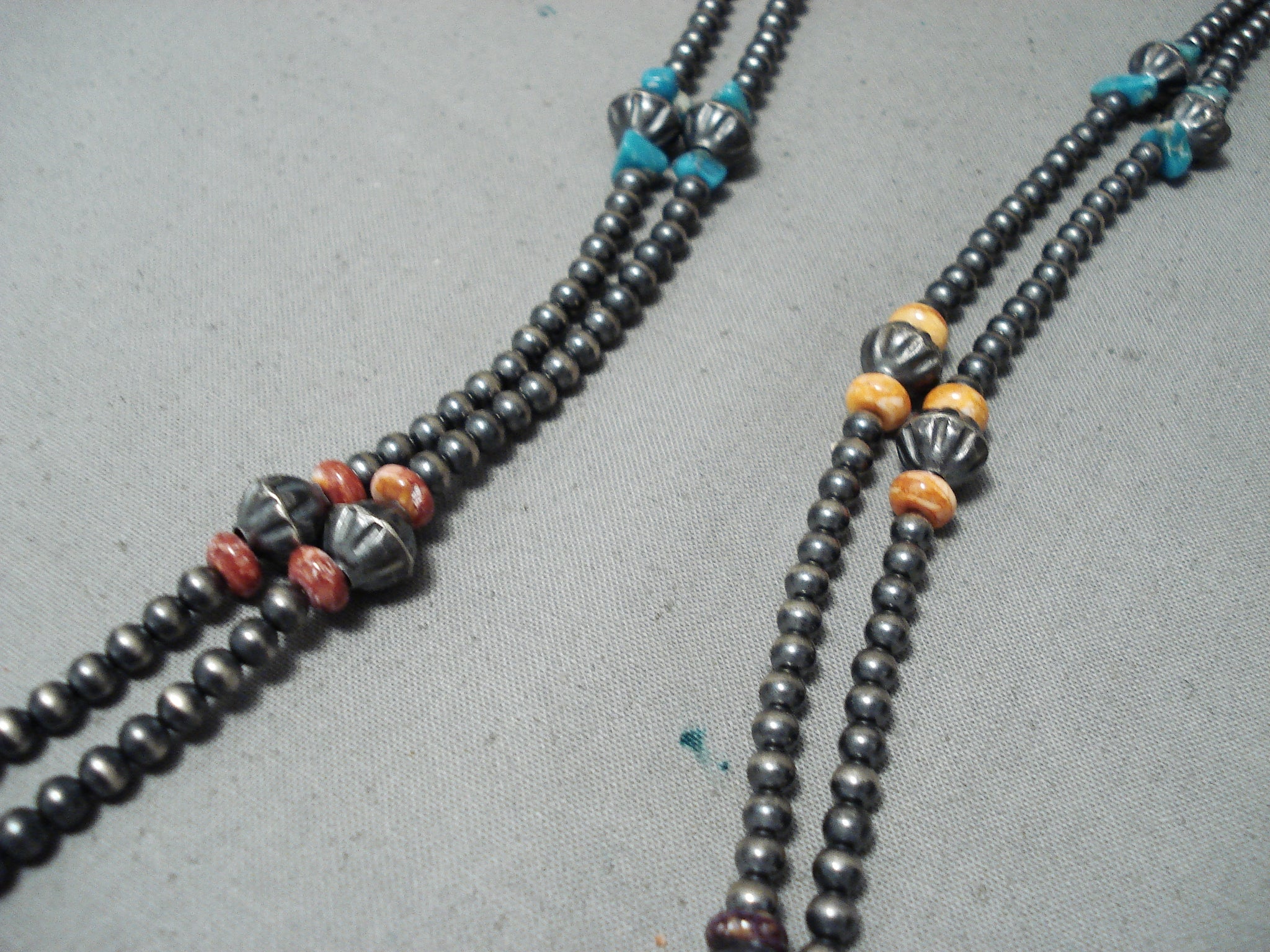 Wrap Around Native American Navajo Turquoise & Spiny Oyster Sterling Silver Necklace L-o-n-g
