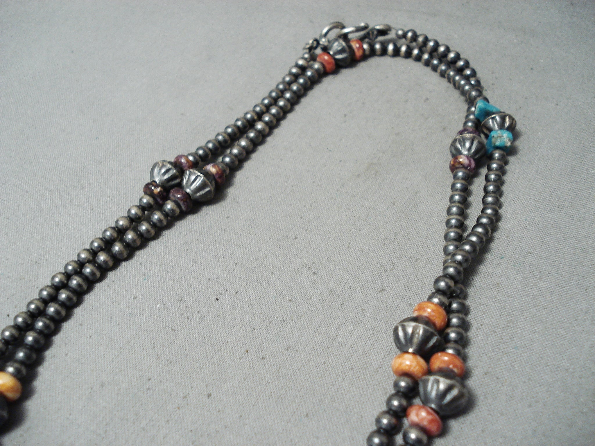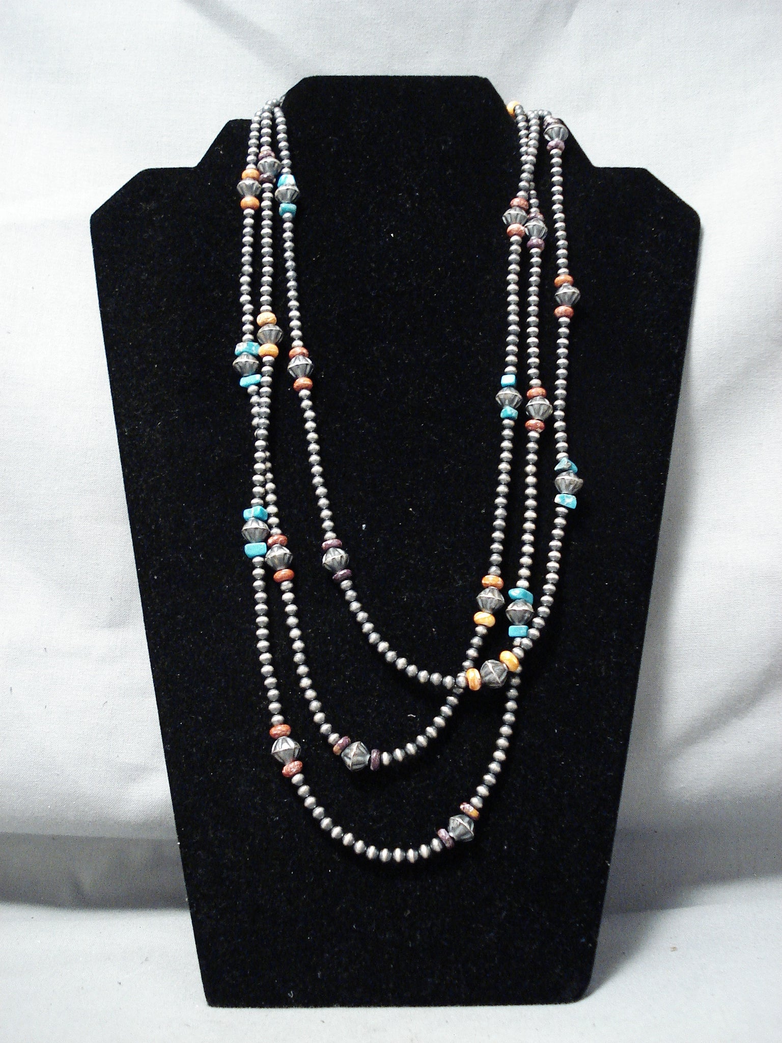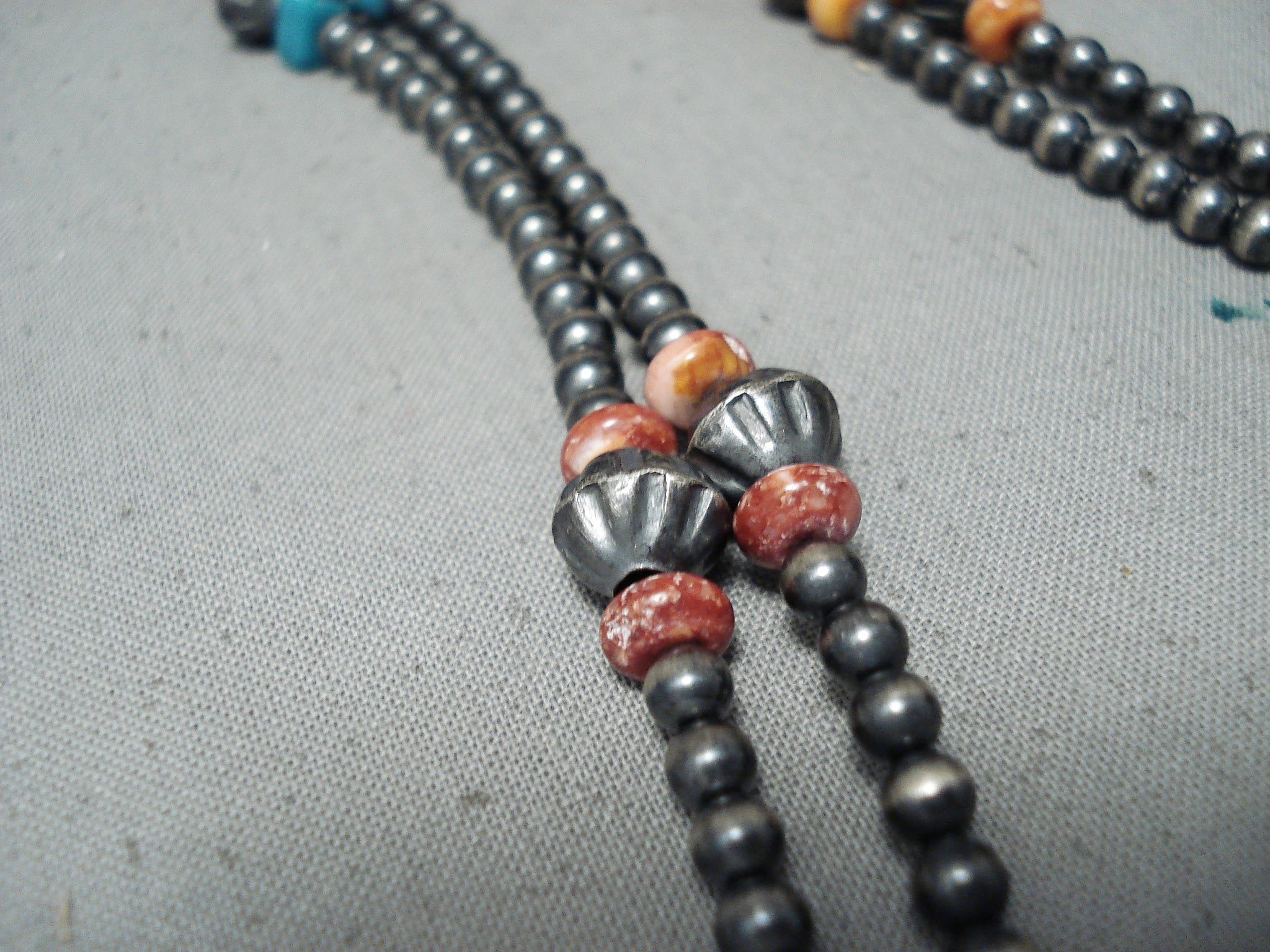 Wrap Around Native American Navajo Turquoise & Spiny Oyster Sterling Silver Necklace L-o-n-g