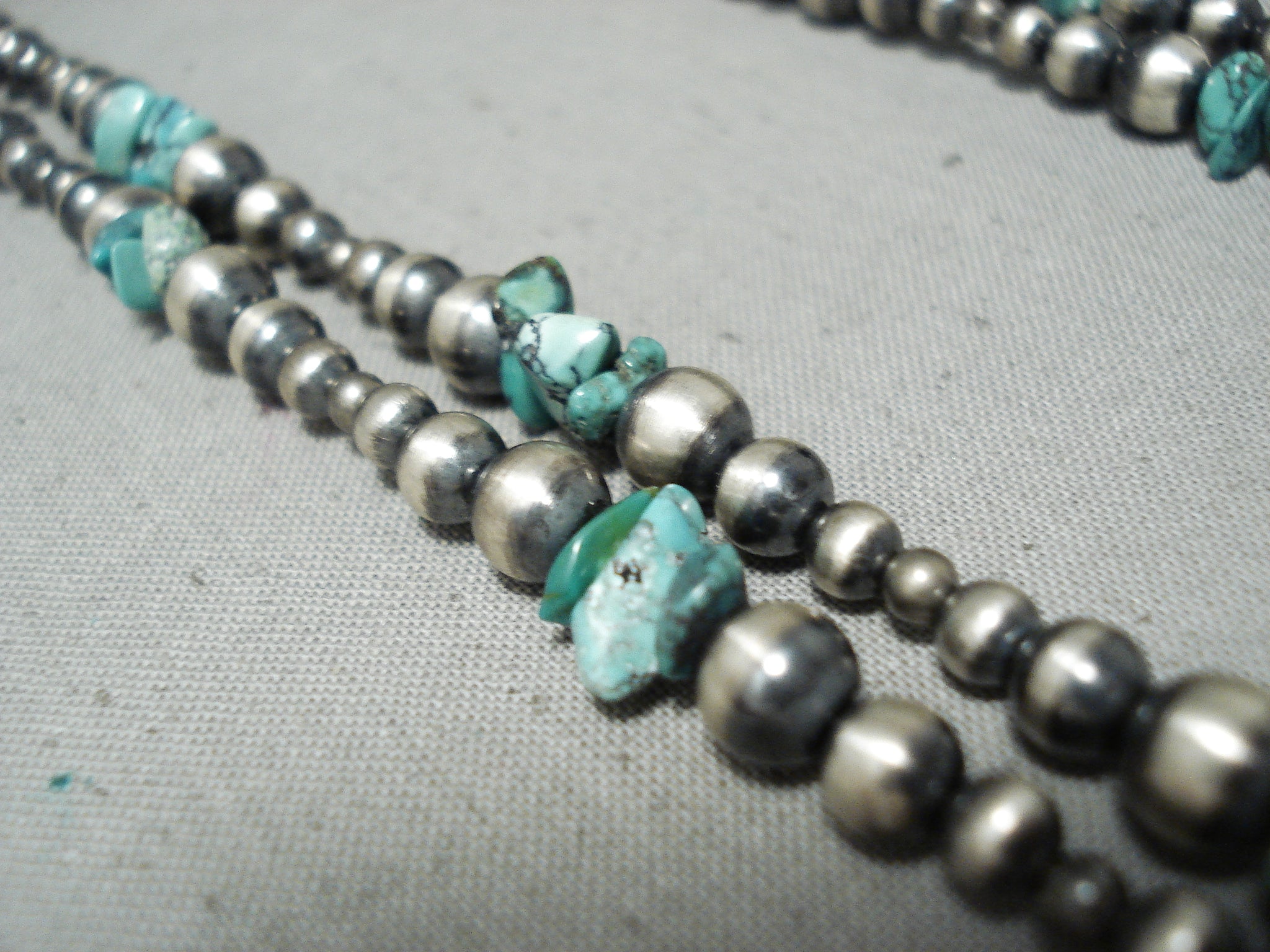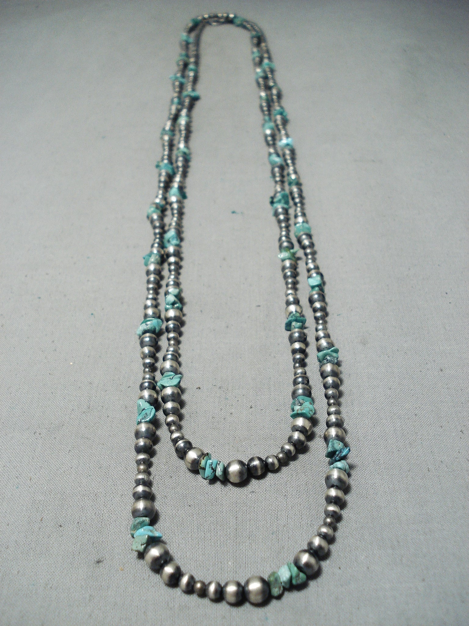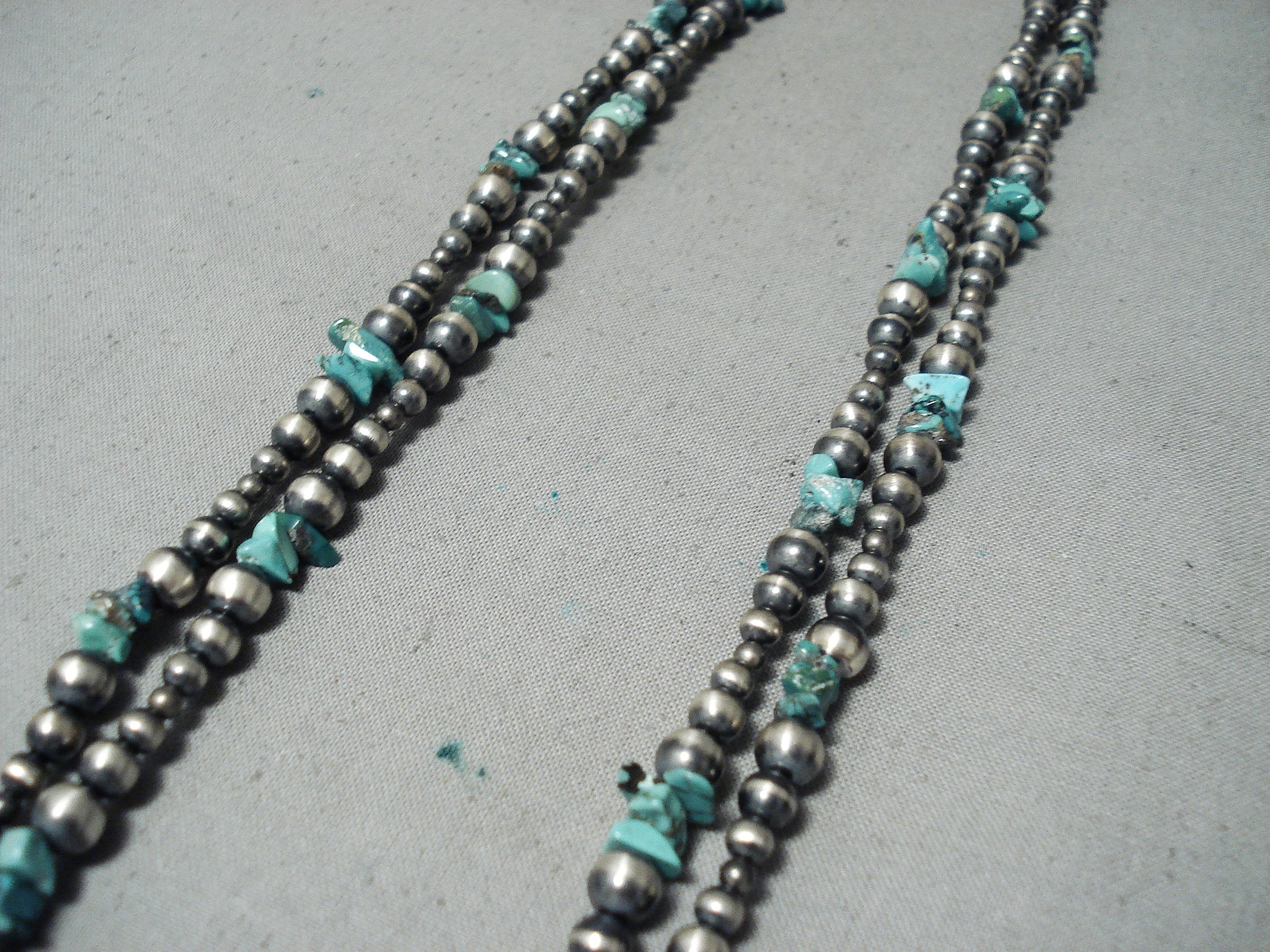Wrap Around Twice Native American Navajo Turquoise Sterling Silver Bead Necklace