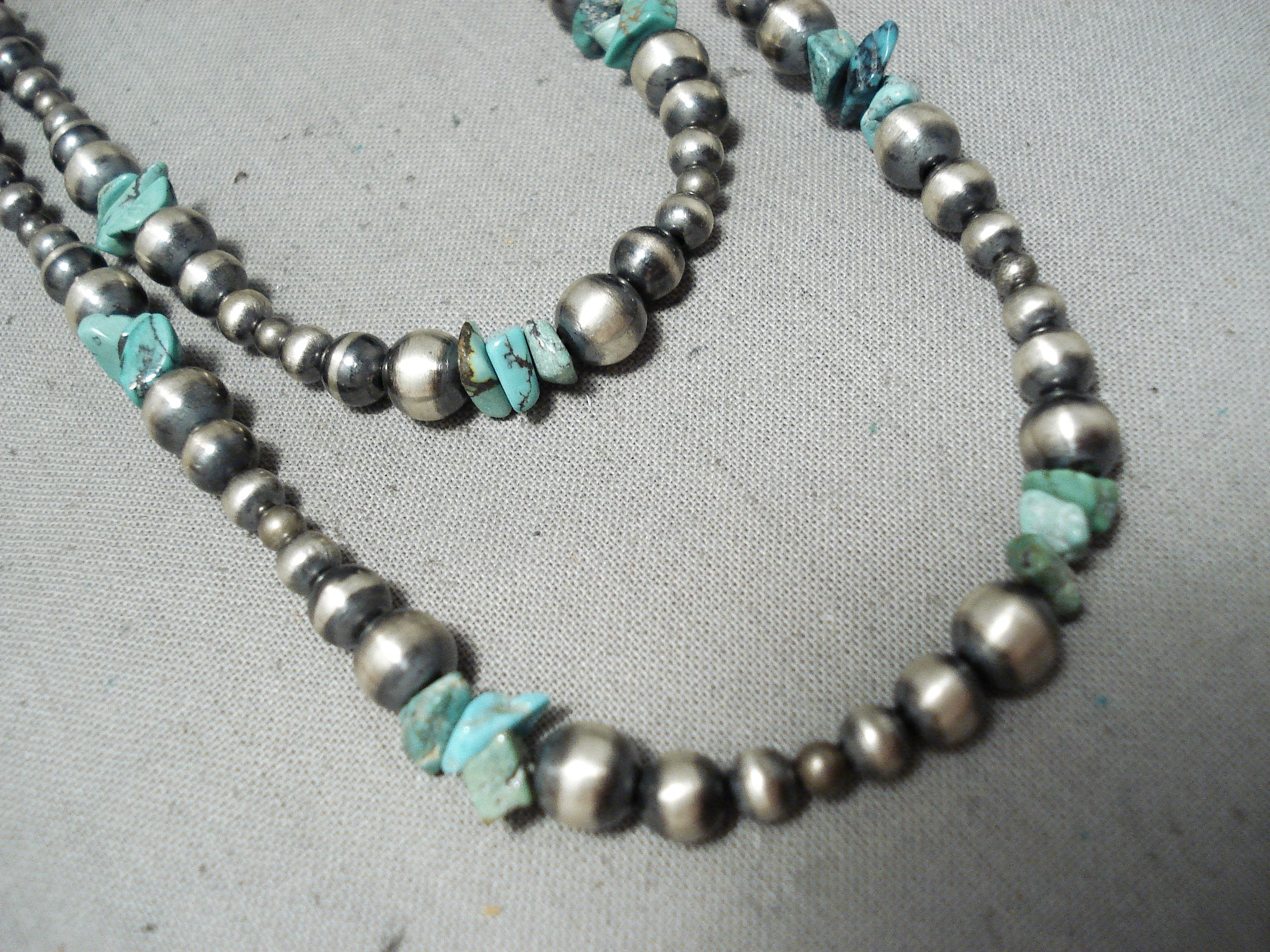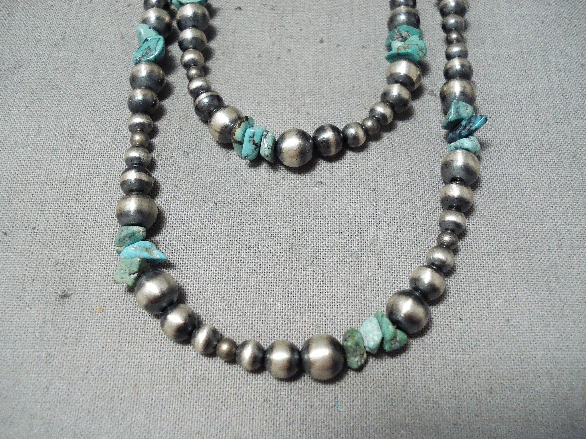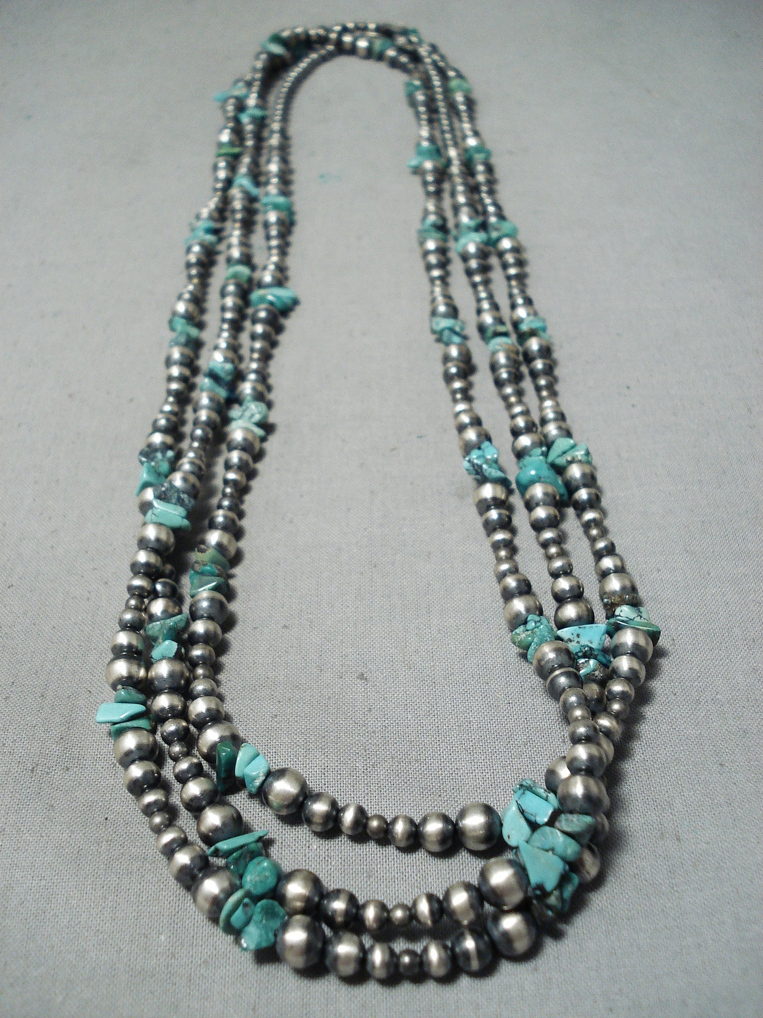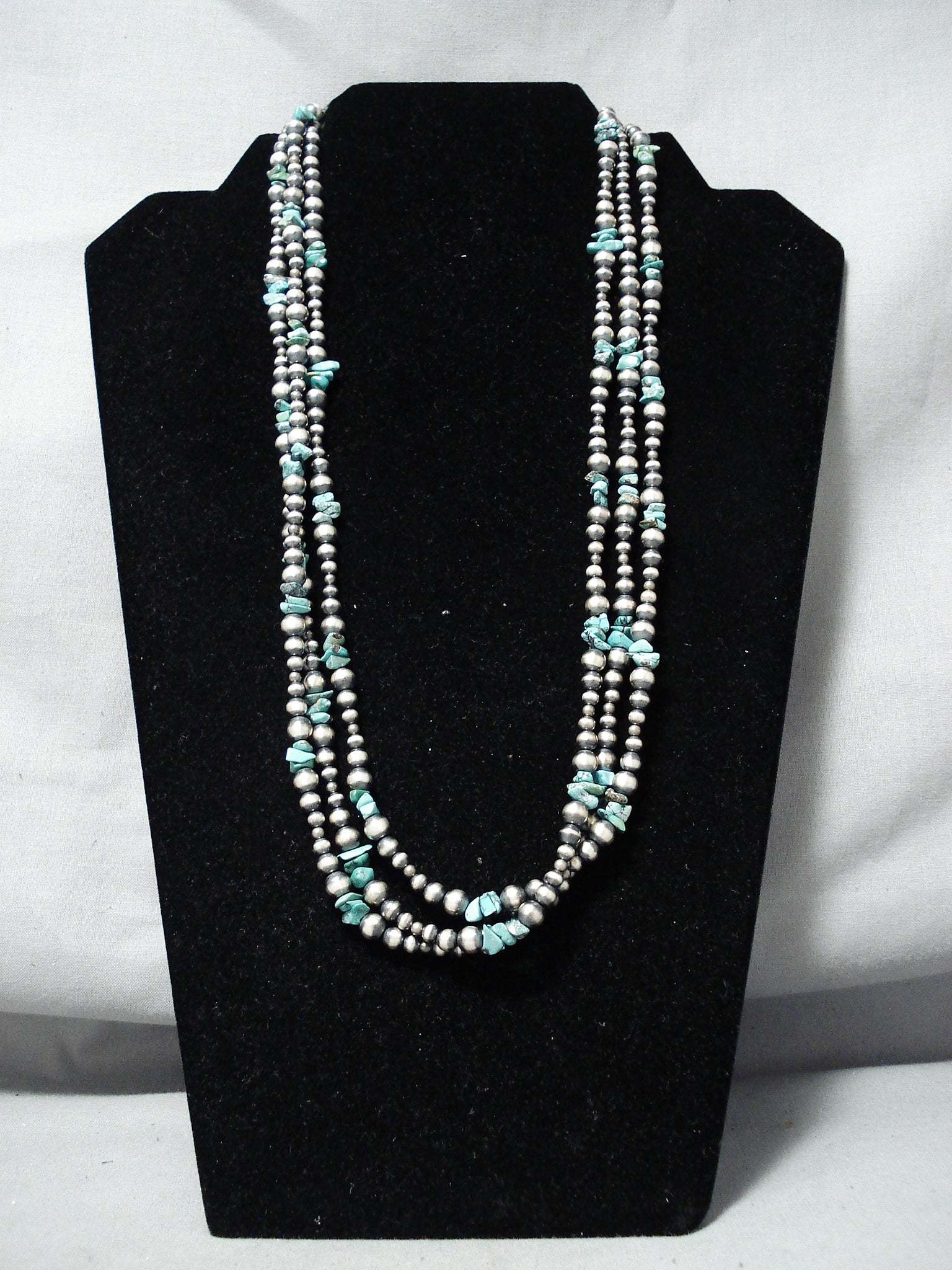 Wrap Around Twice Native American Navajo Turquoise Sterling Silver Bead Necklace