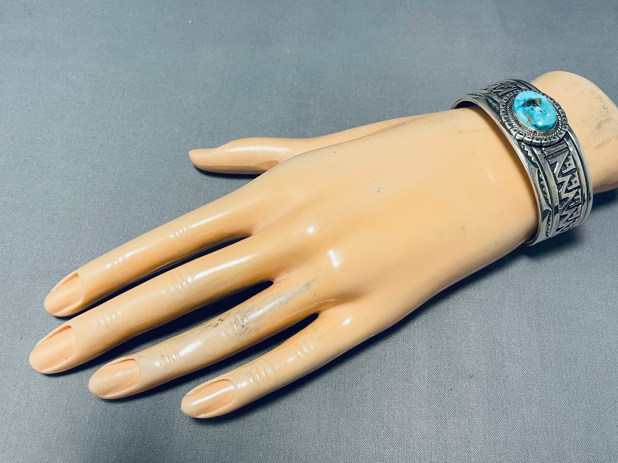 Wylie Native American Navajo Turquoise Sterling Silver Detailed Bracelet