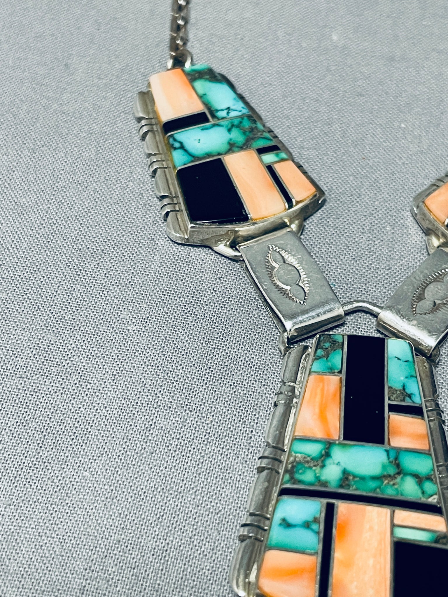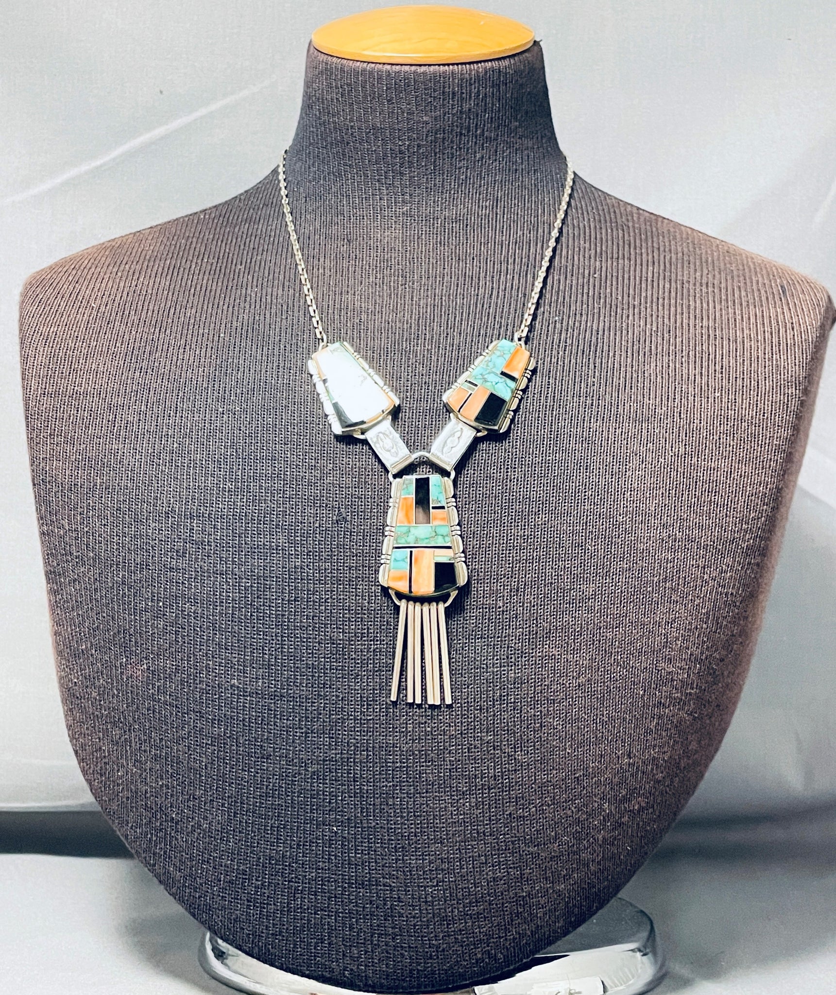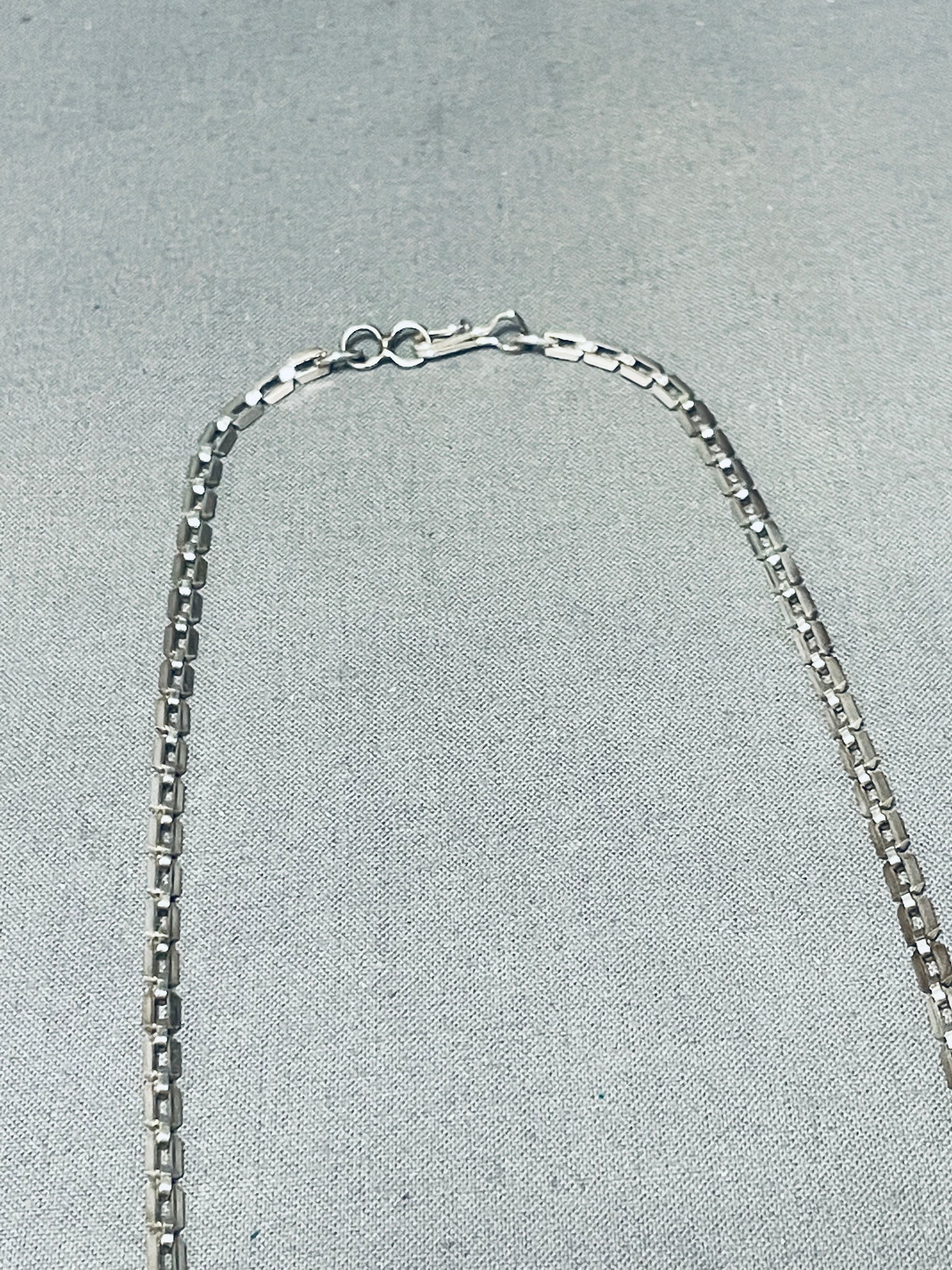 Yazzie Vintage Native American Navajo Inlay Green Turquoise Sterling Silver Necklace