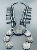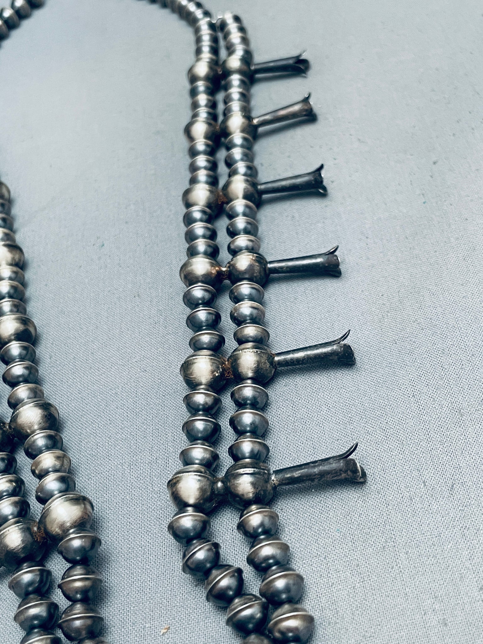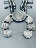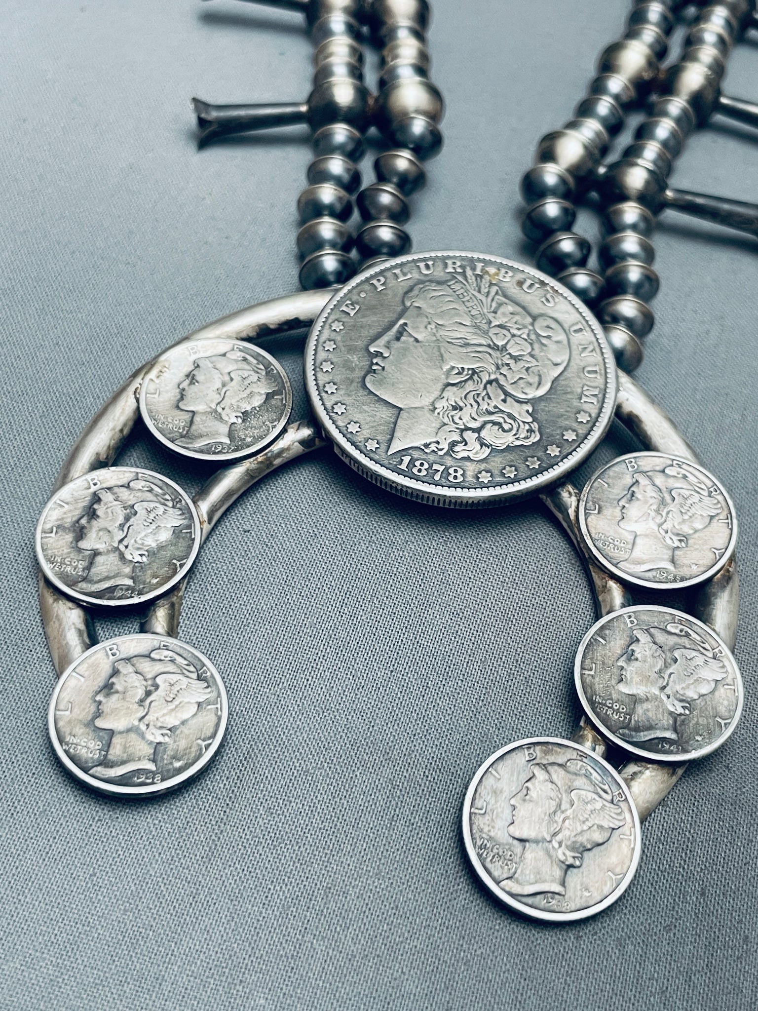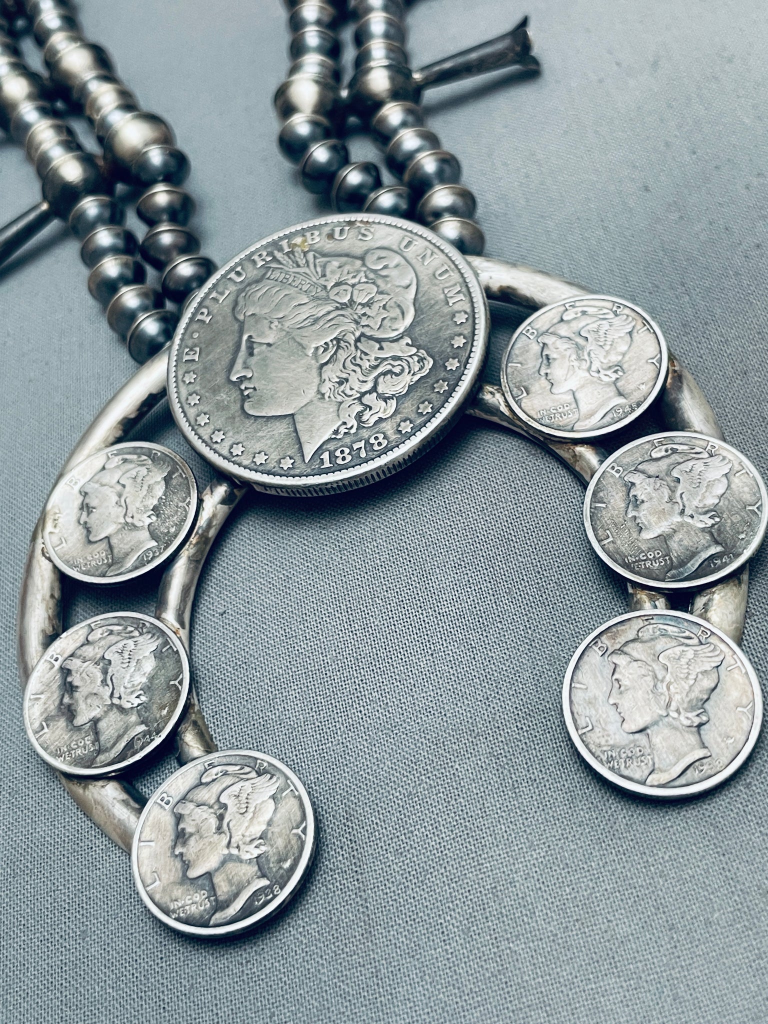 127 Grams Vintage Native American Navajo Sterling Silver Coin Squash Blossom Necklace