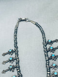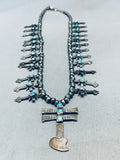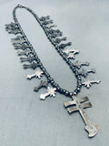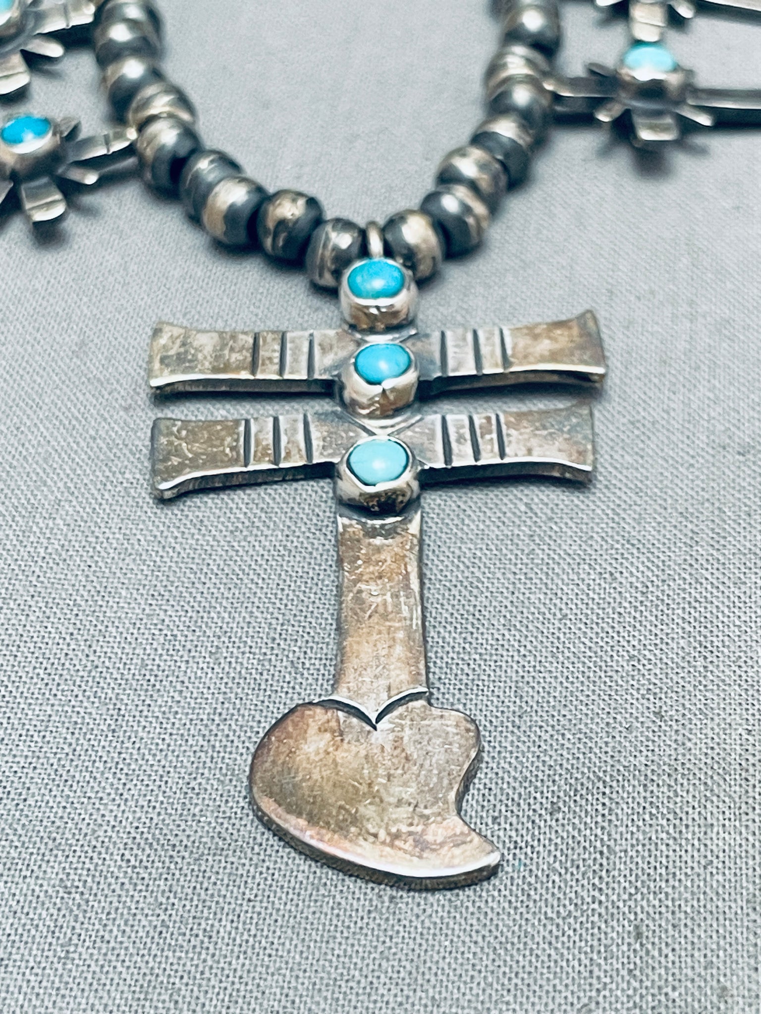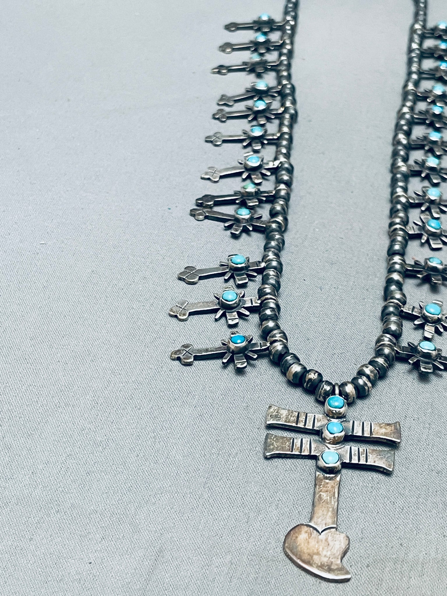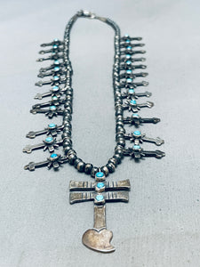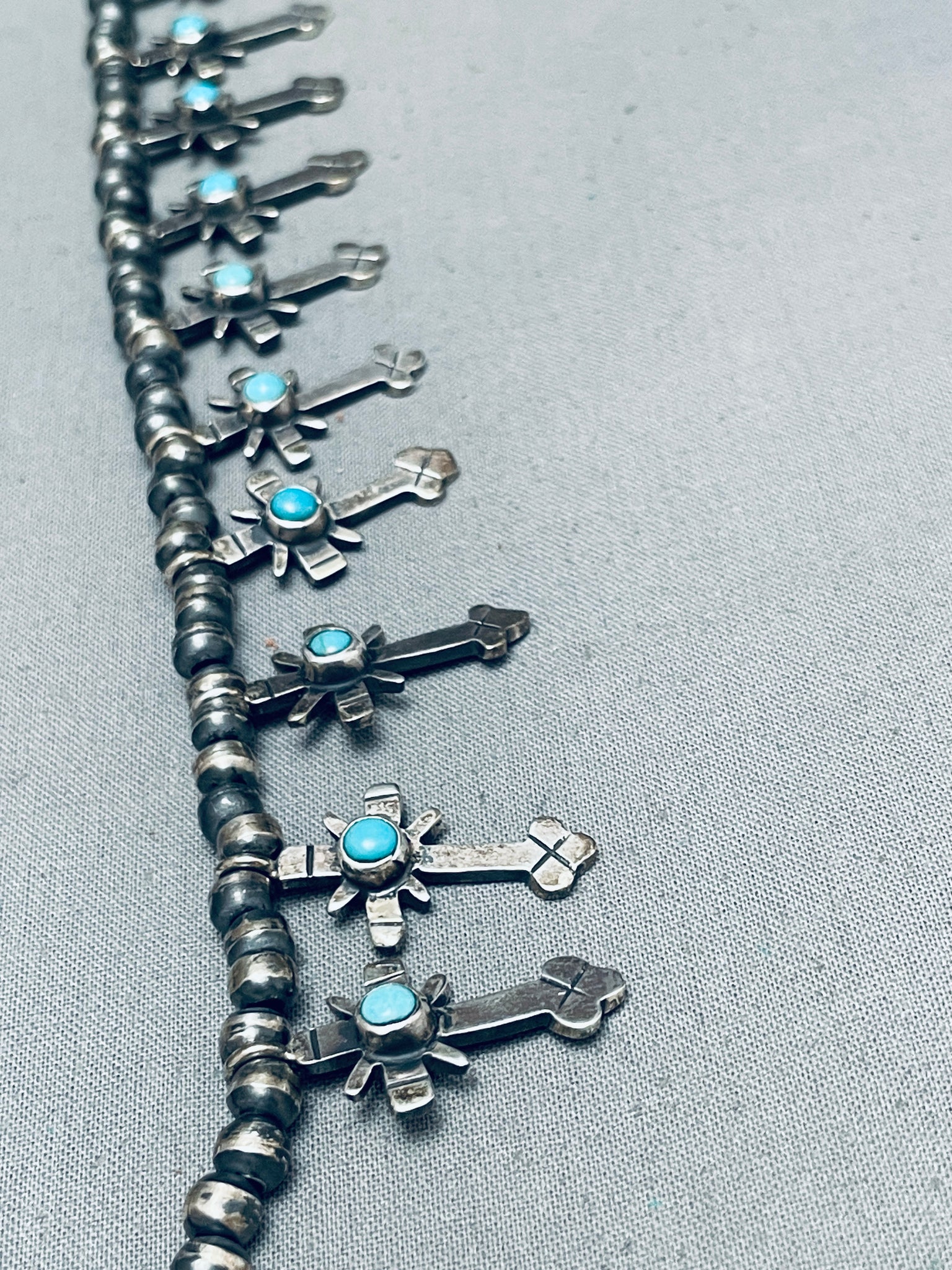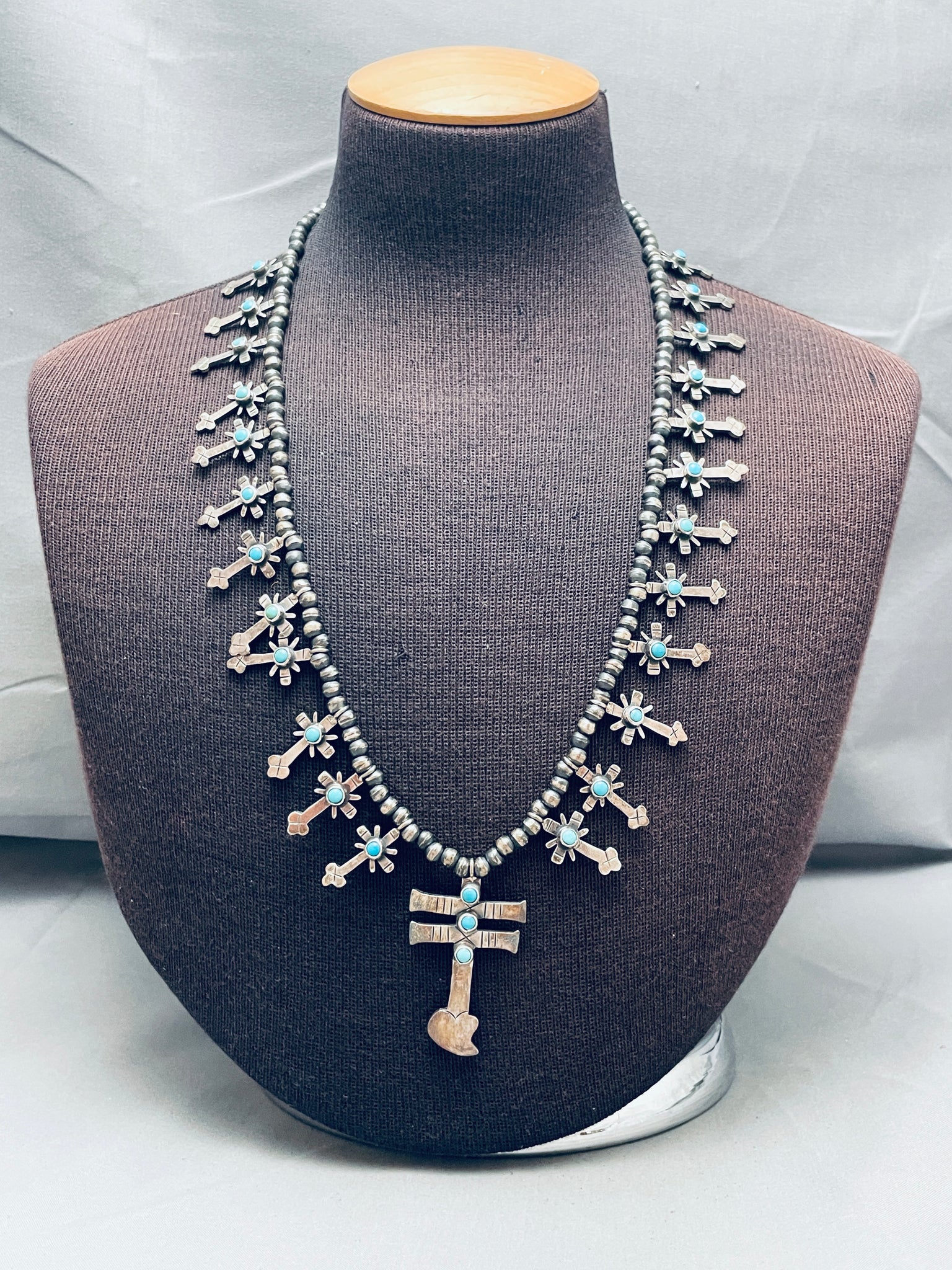 Federico Jimenez Vintage Turquoise Cross Sterling Silver Squash Blossom Necklace