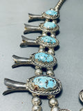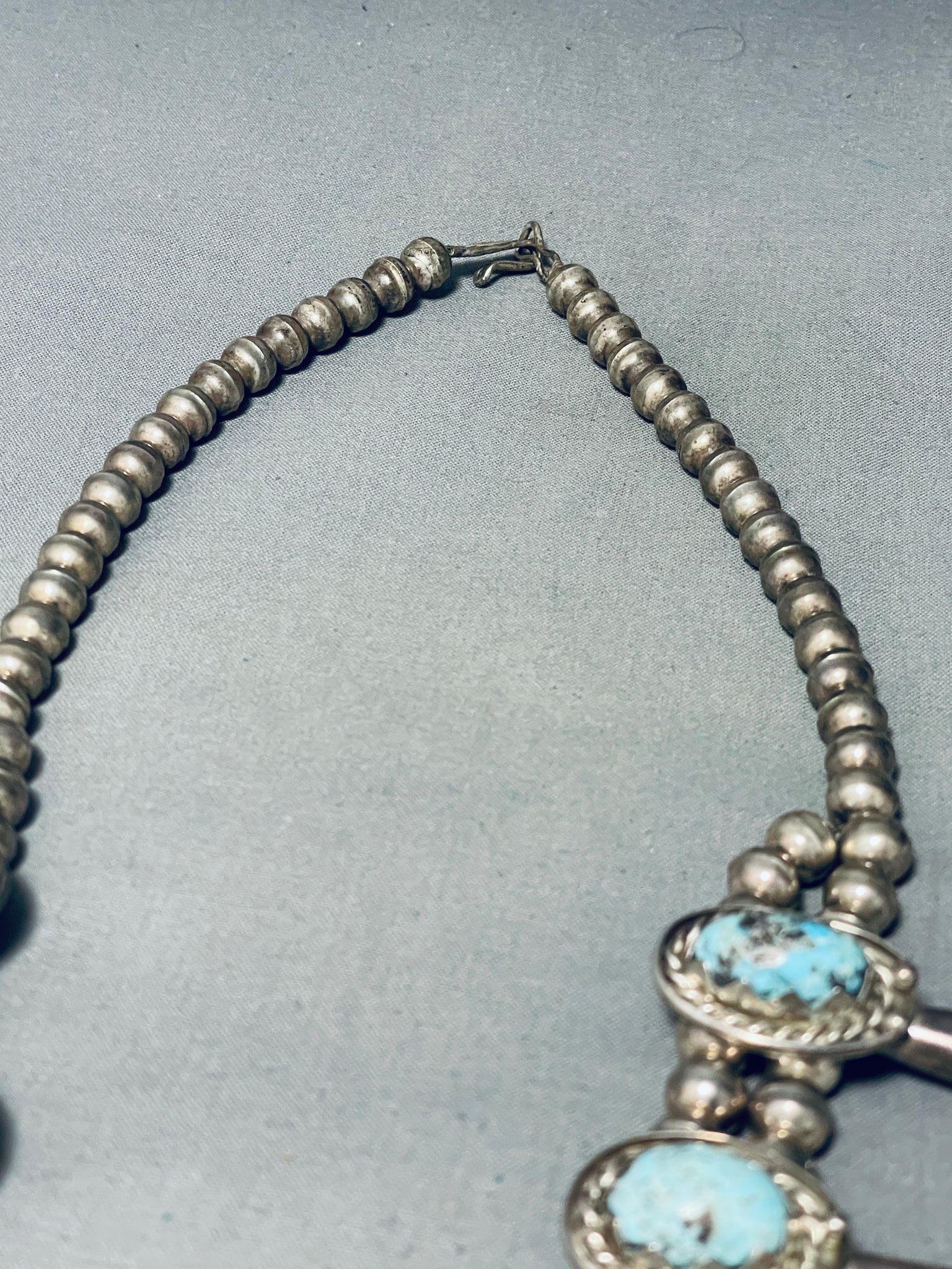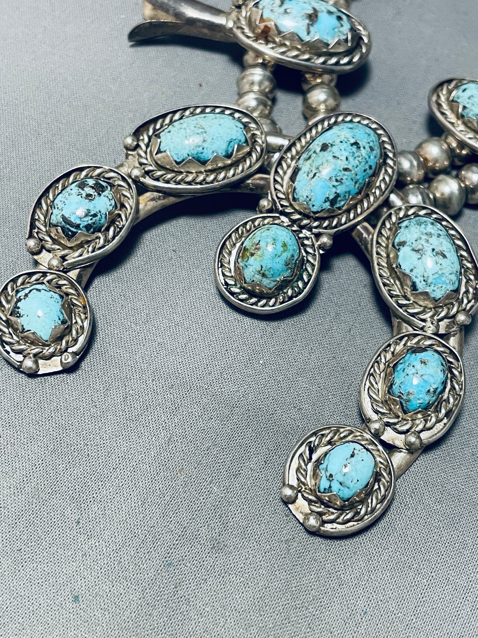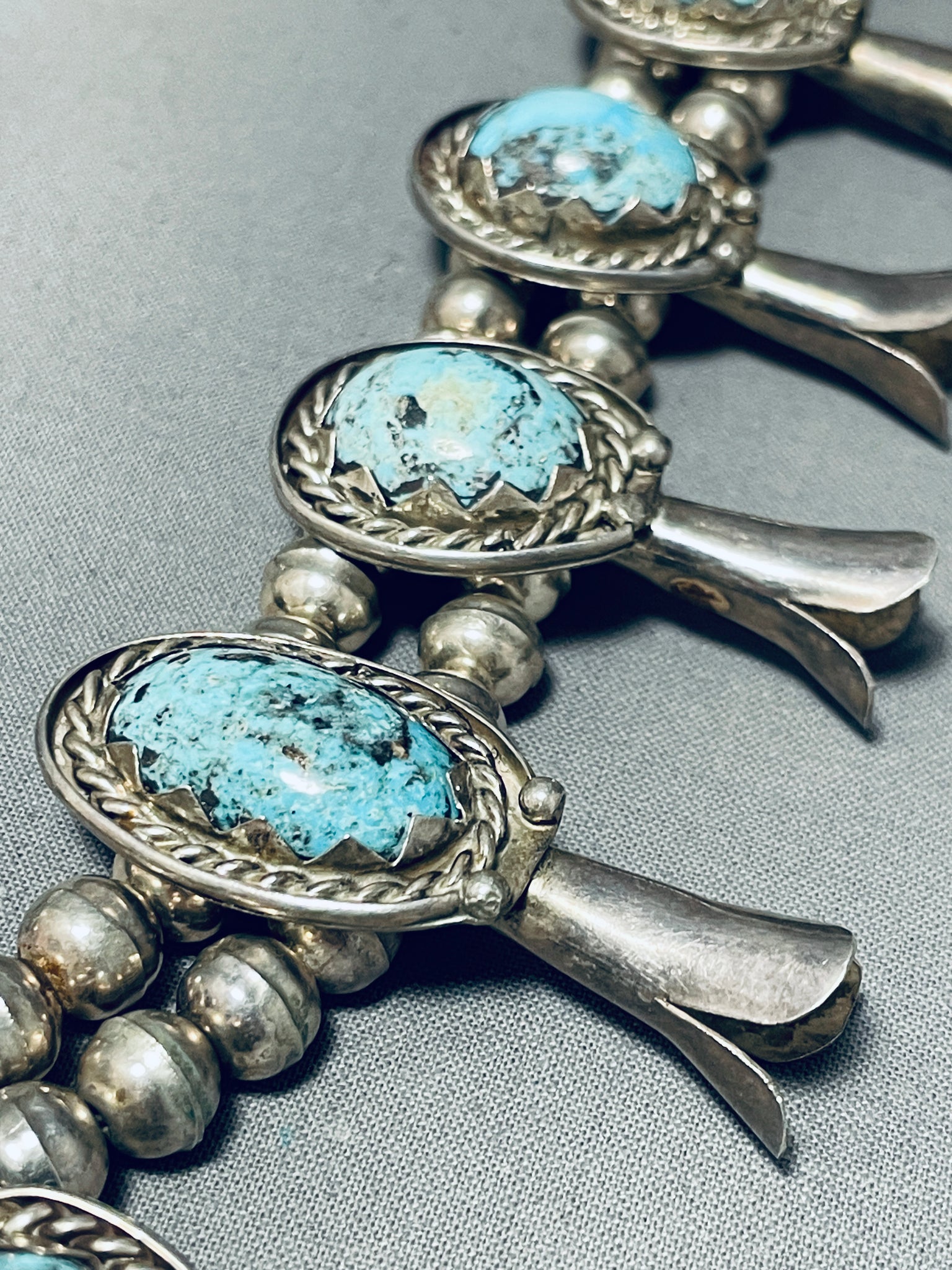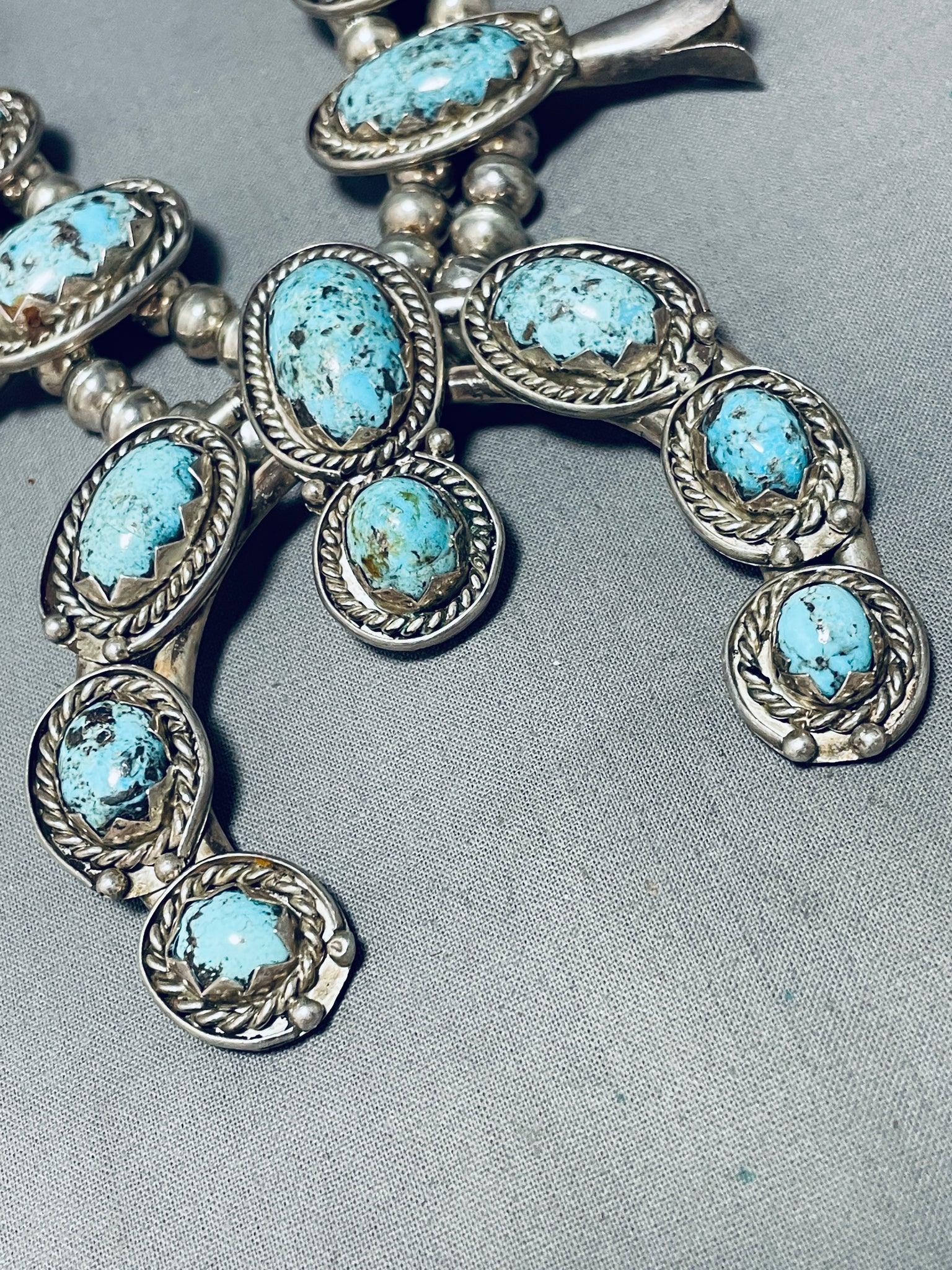 Gasp! Persin Turquoise Vintage Native American Navajo Sterling Silver Squash Blossom Necklace