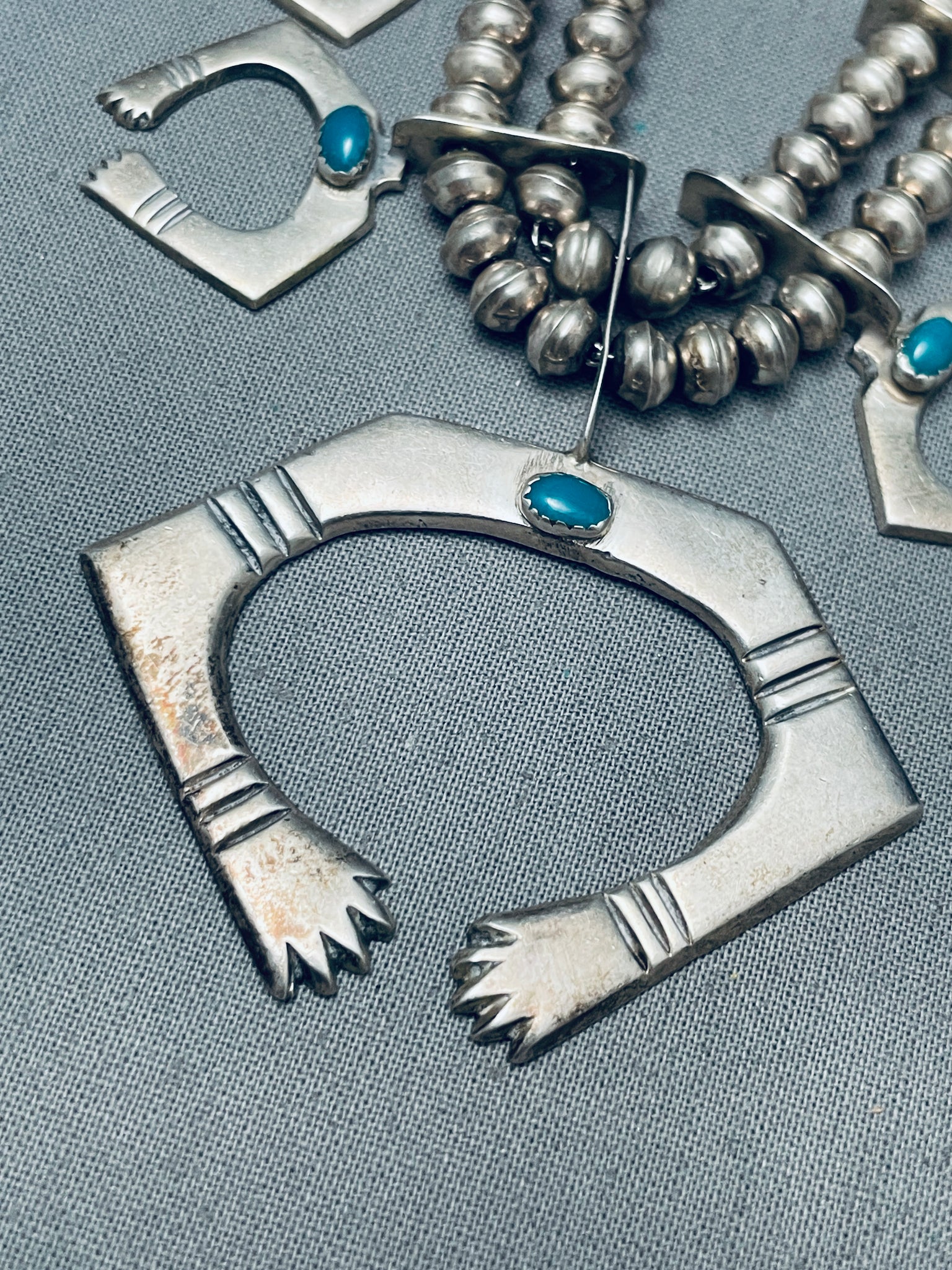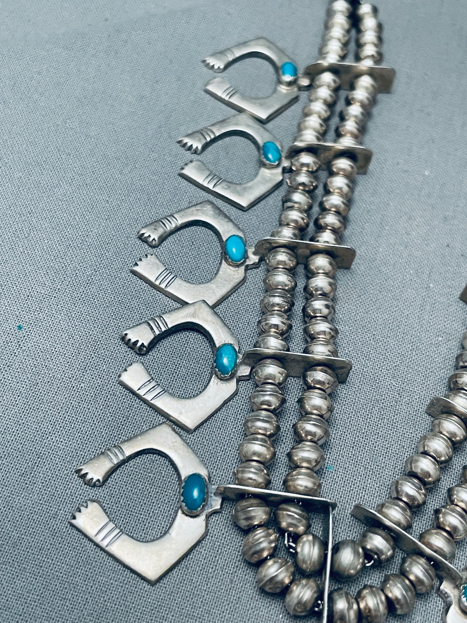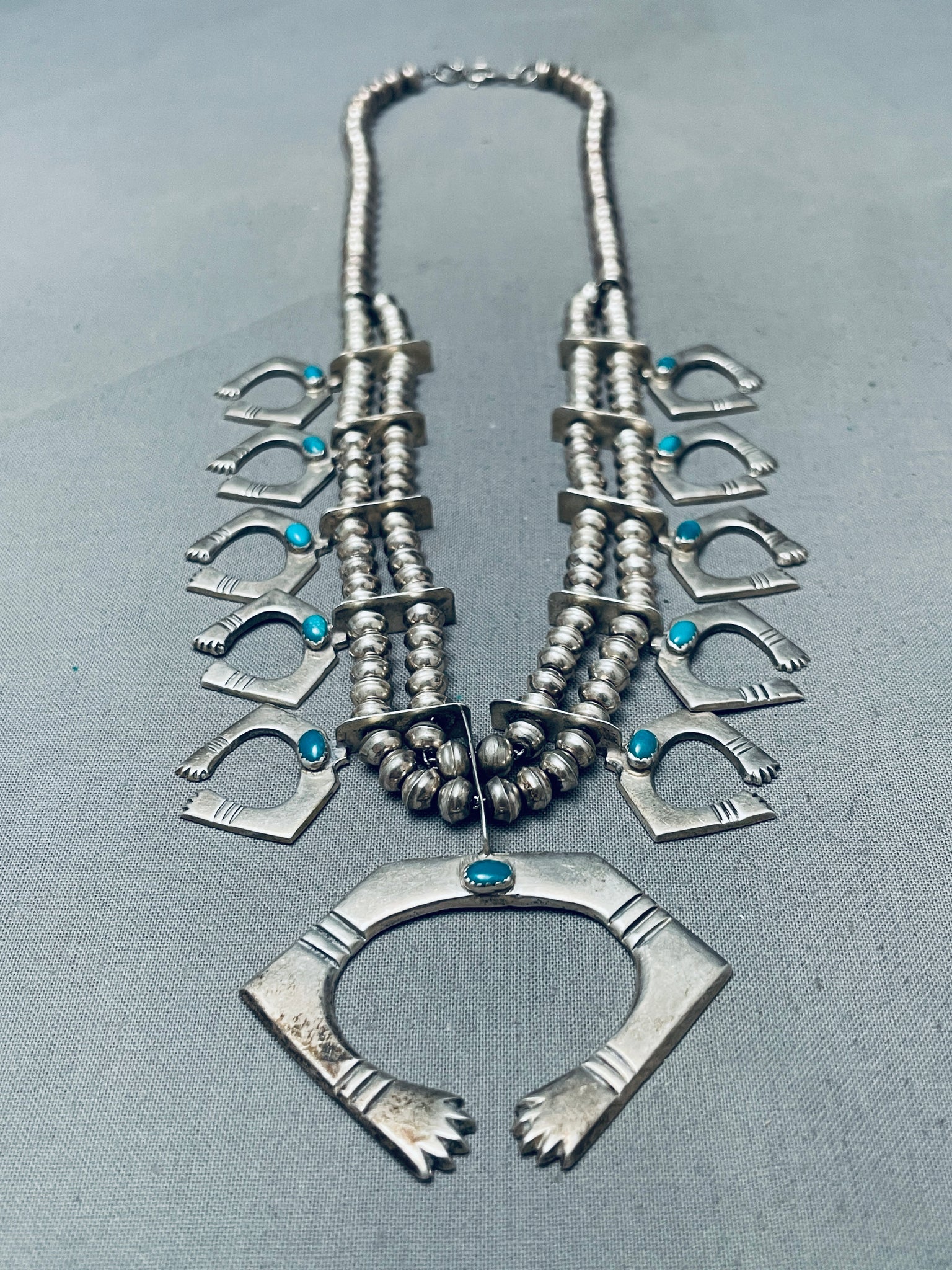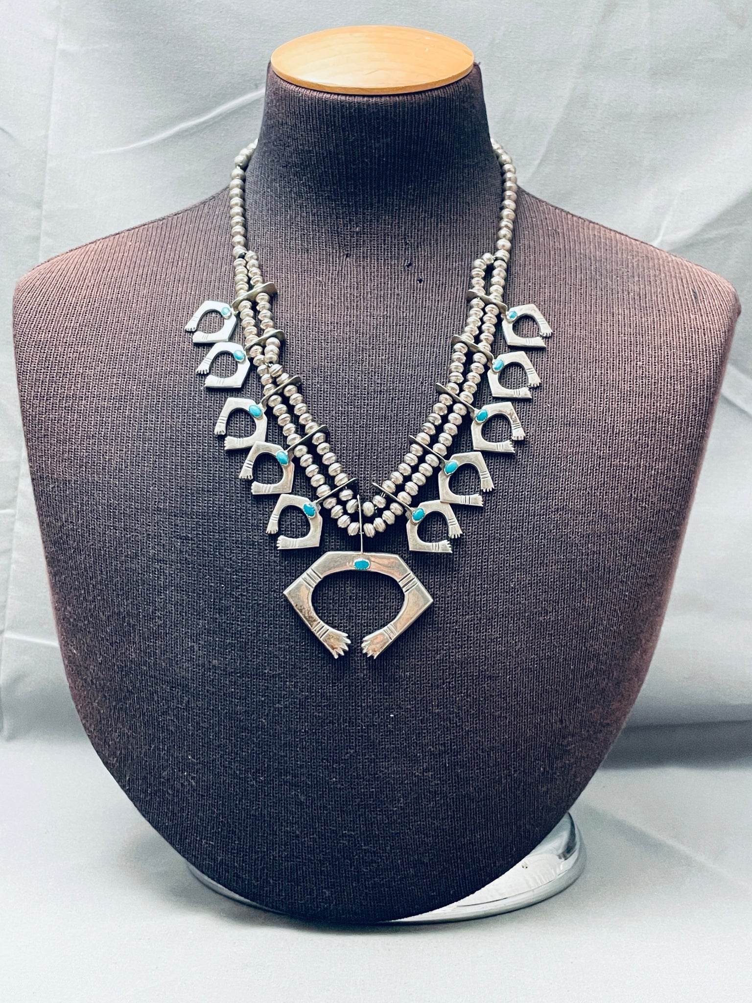 One Of The Best Vintage Native American Navajo Turquoise Sterling Silver Squash Blossom Necklace