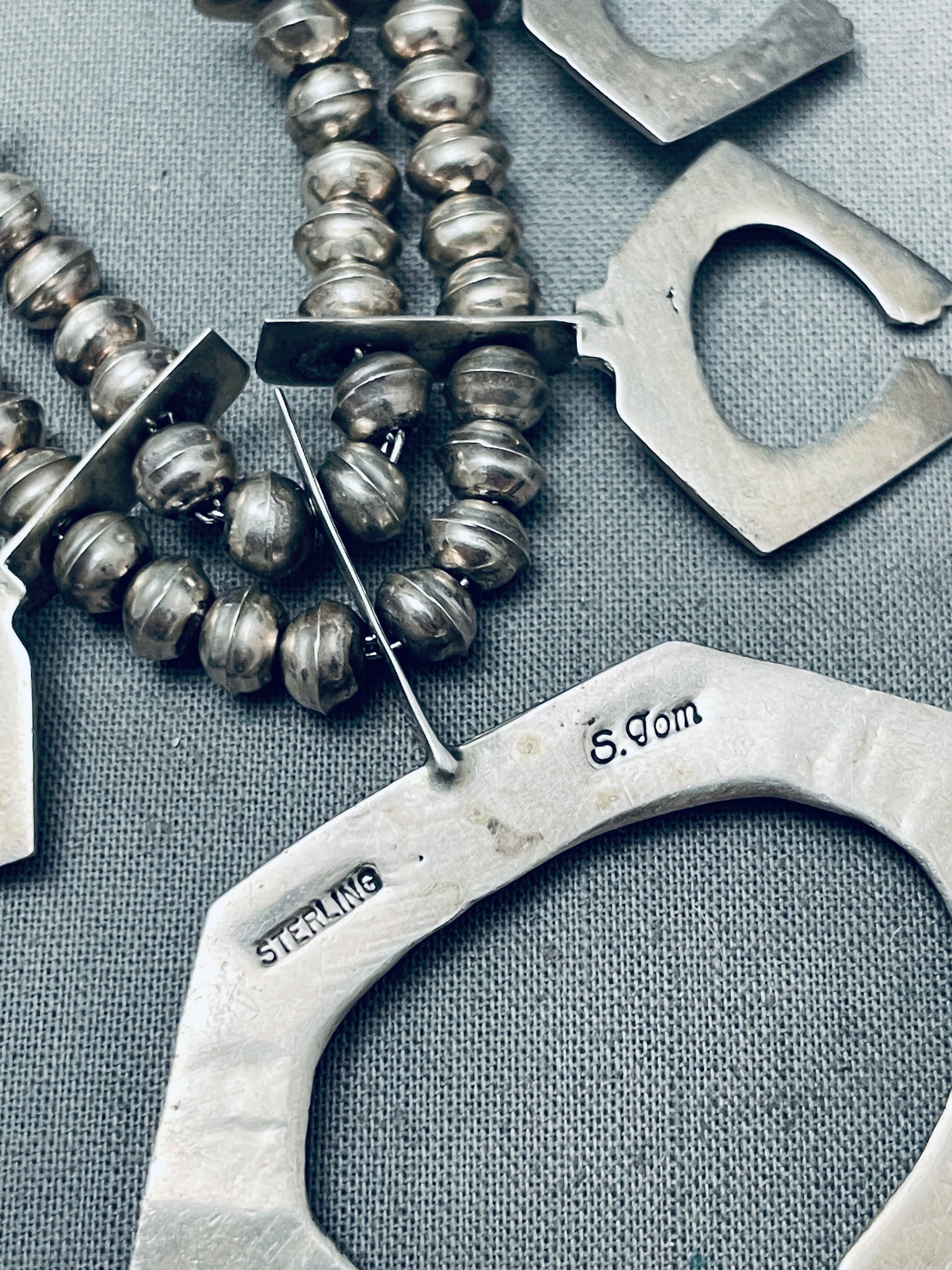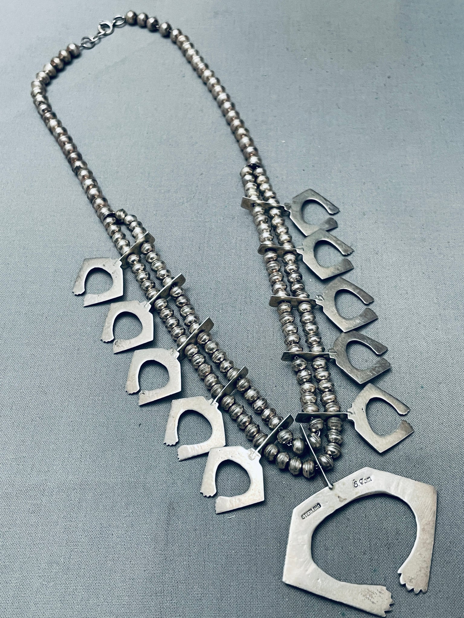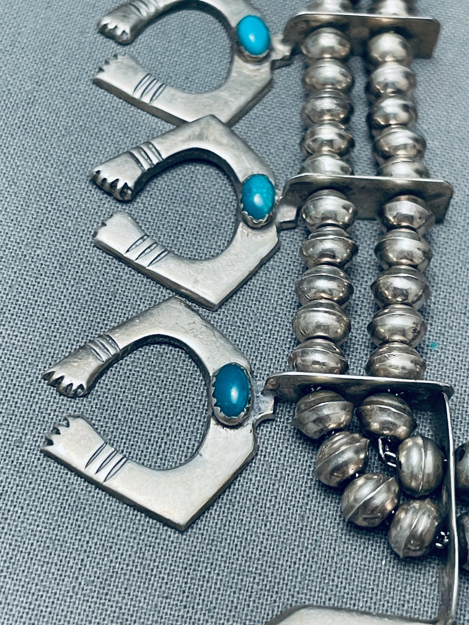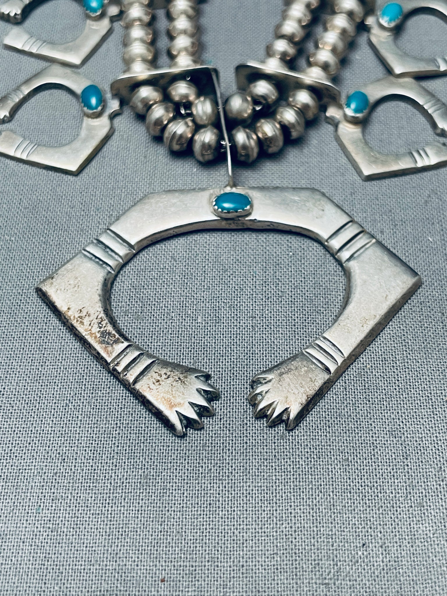 One Of The Best Vintage Native American Navajo Turquoise Sterling Silver Squash Blossom Necklace
