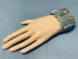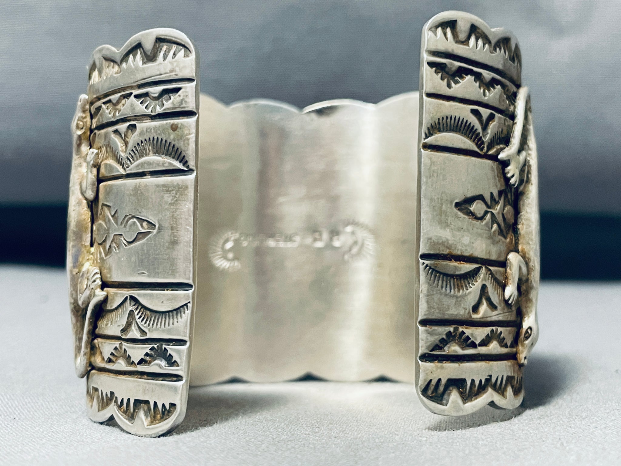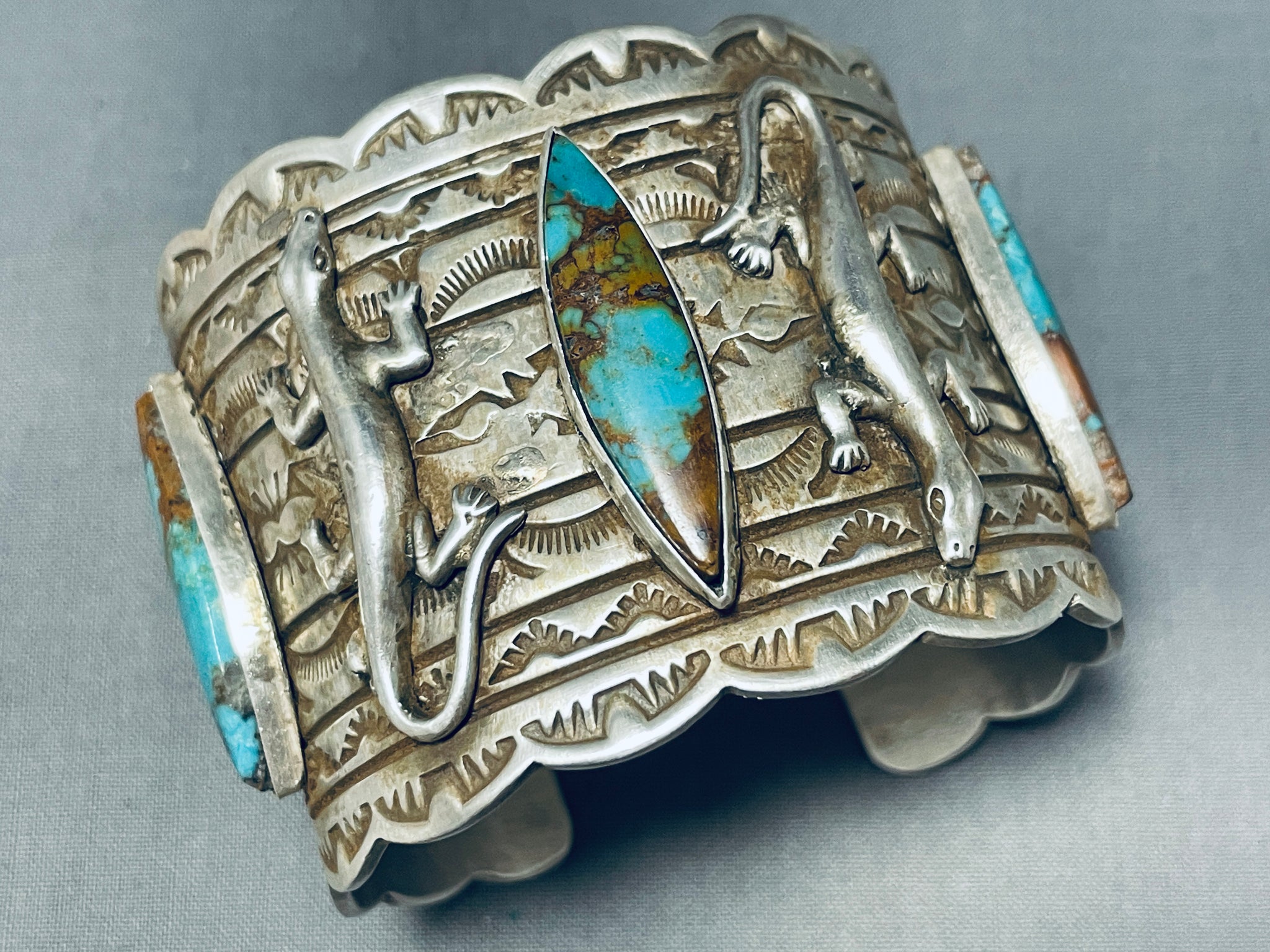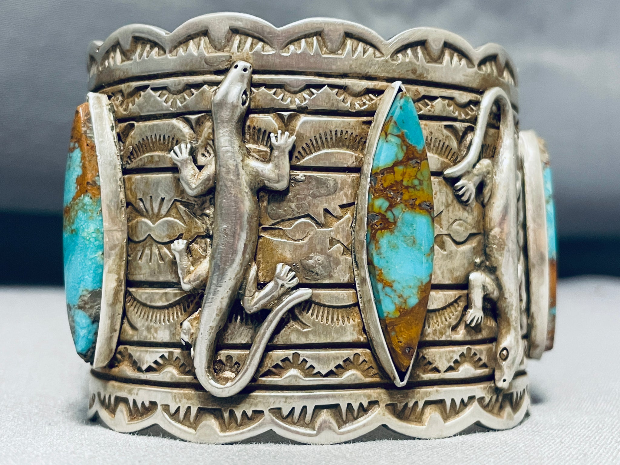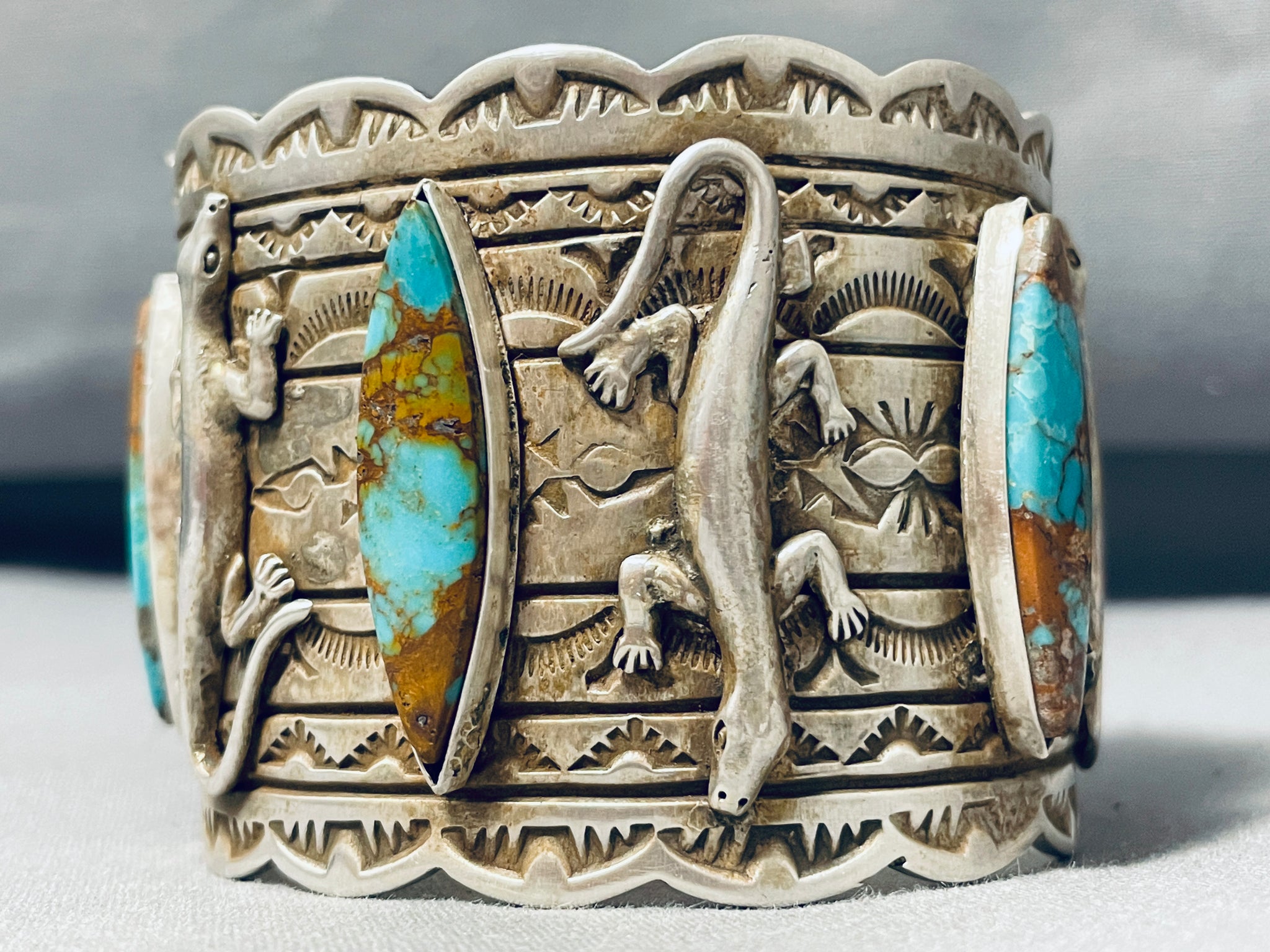 100+ Gram Native American Navajo Royston Turquoise Sterling Silver Gecko Bracelet