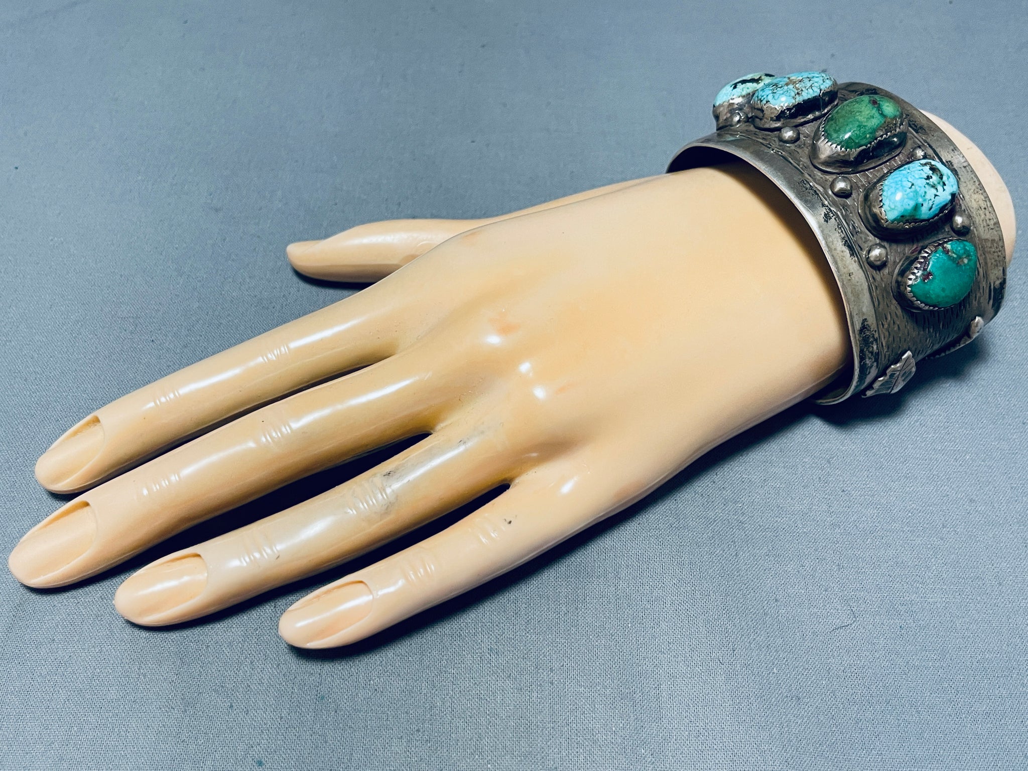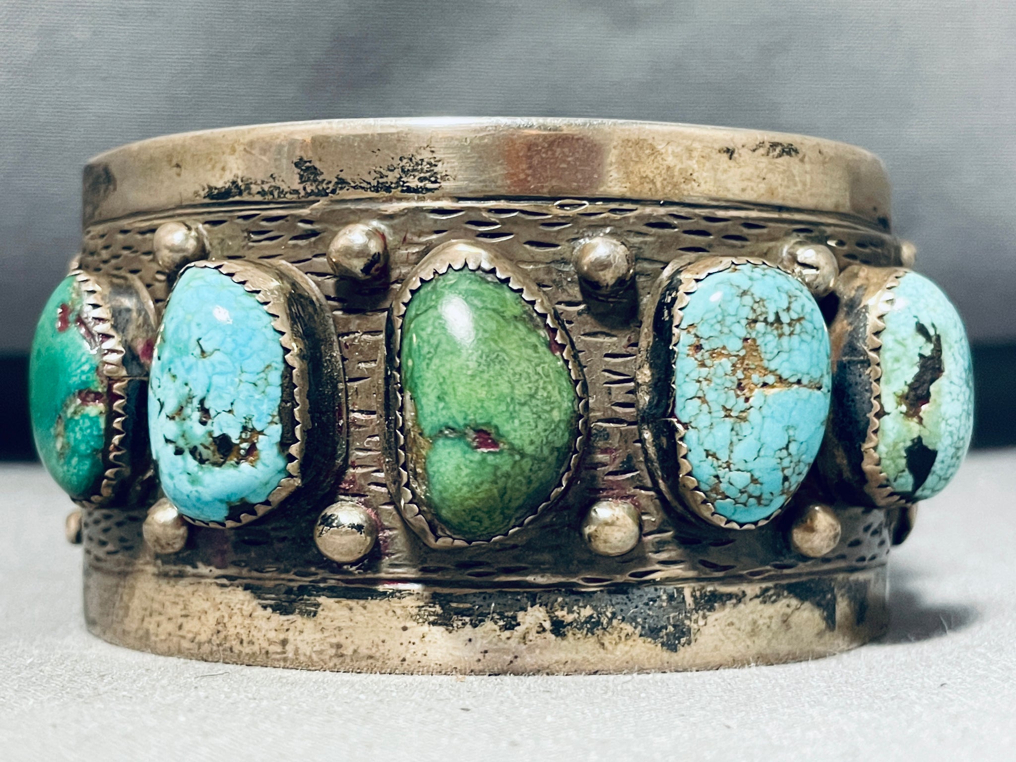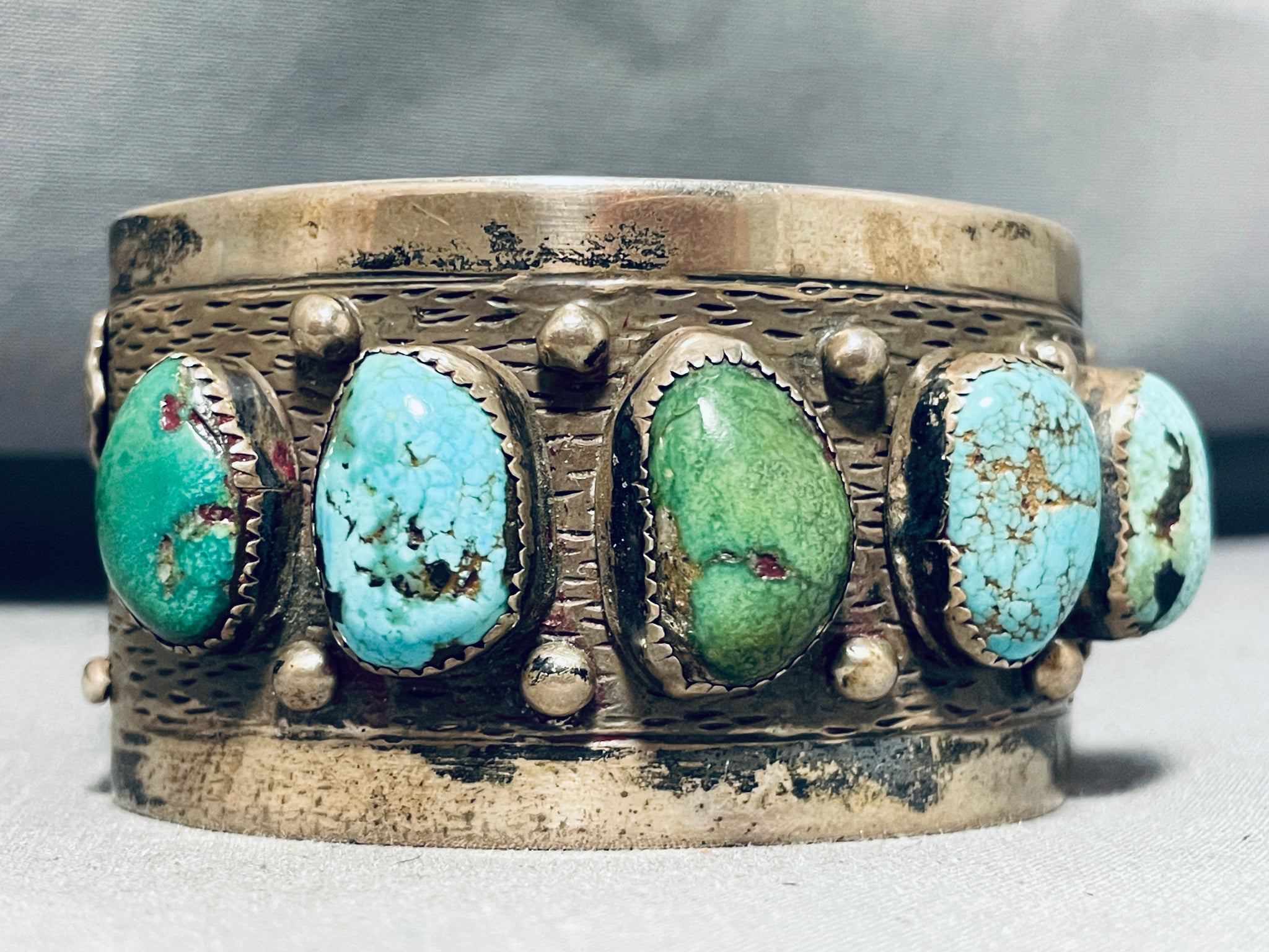 100 Gram Vintage Native American Navajo Royston Morenci Turquoise Sterling Silver Bracelet