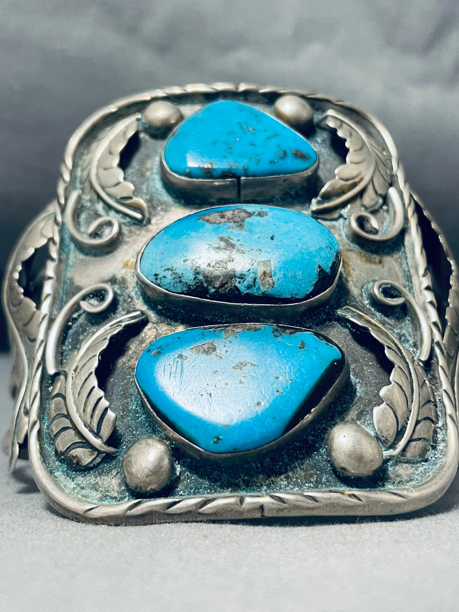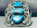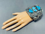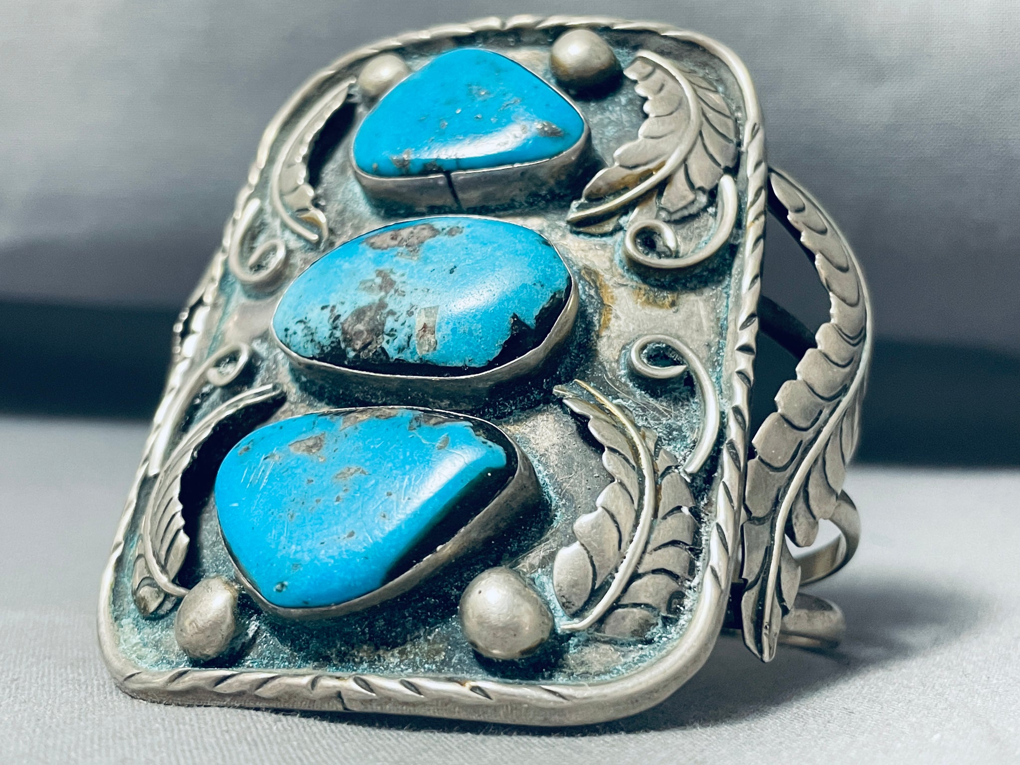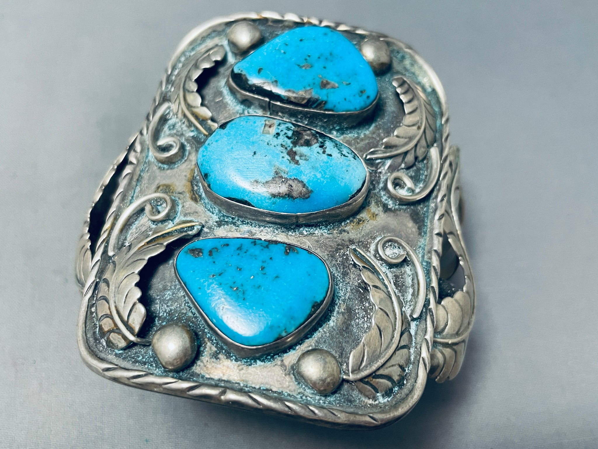101 Gram Large Wrist Mens Vintage Native American Navajo Turquoise Sterling Silver Bracelet