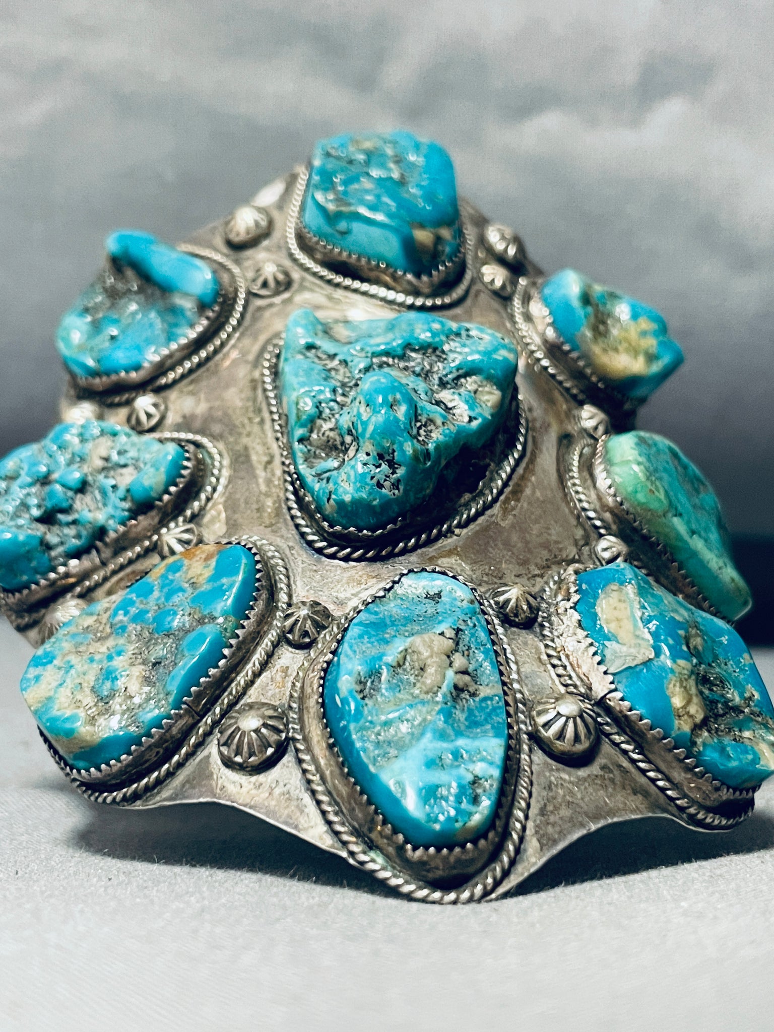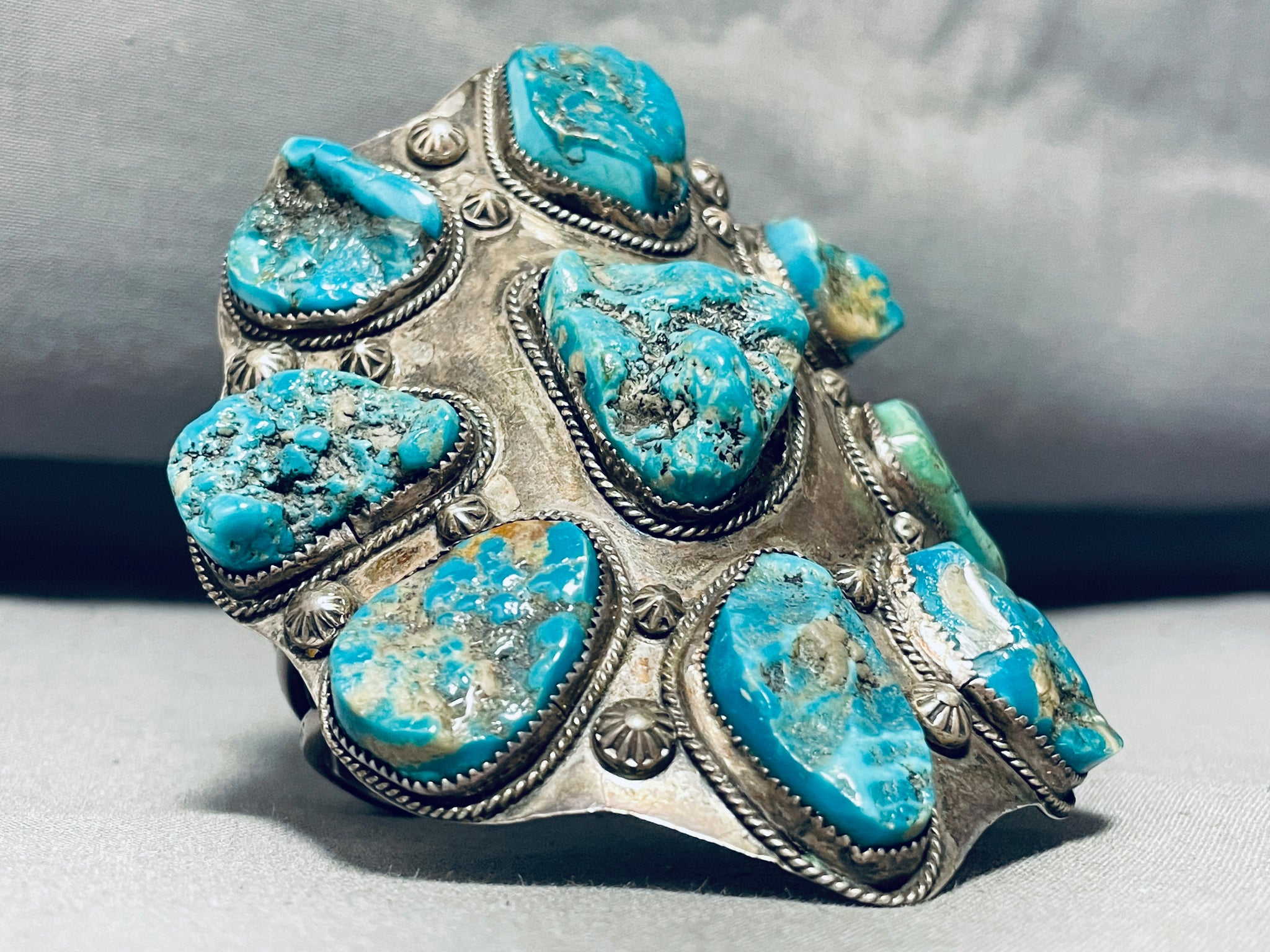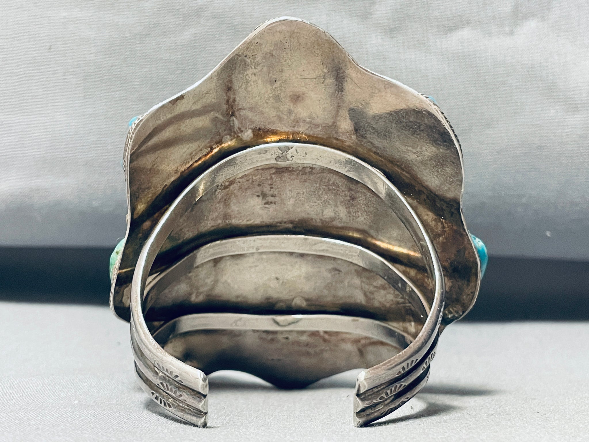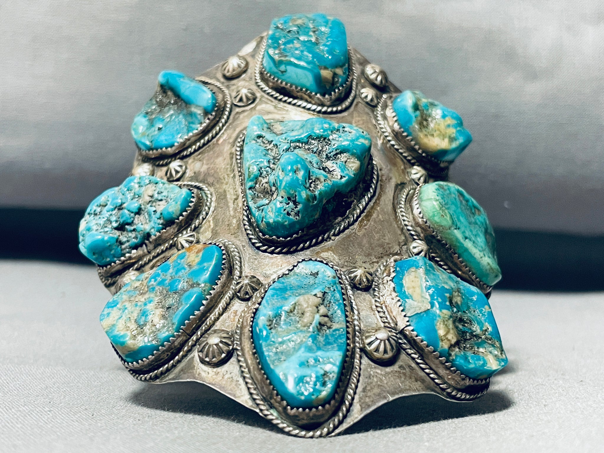 104 Grams Colossal Vintage Native American Navajo Turquoise Sterling Silver Bracelet