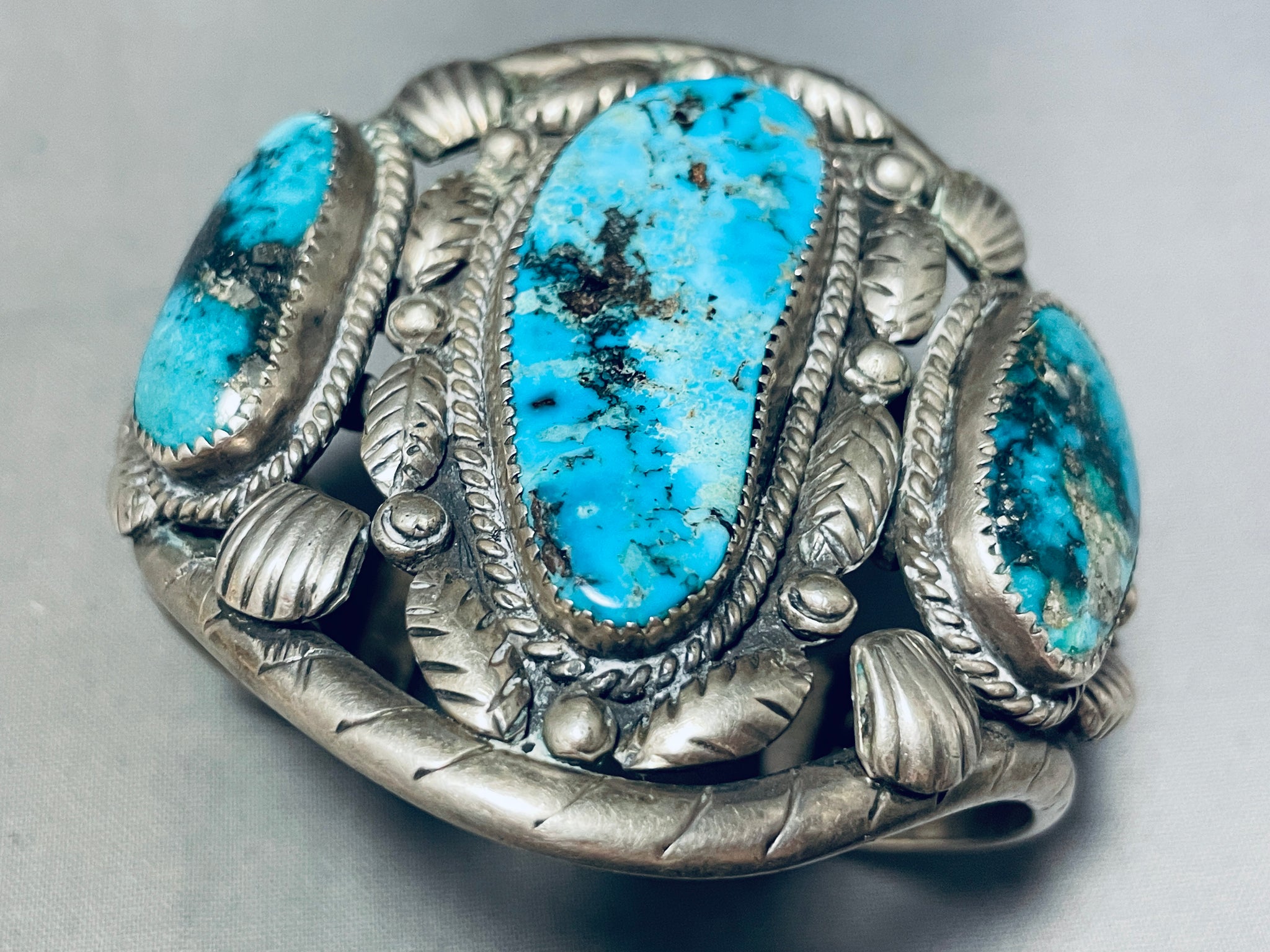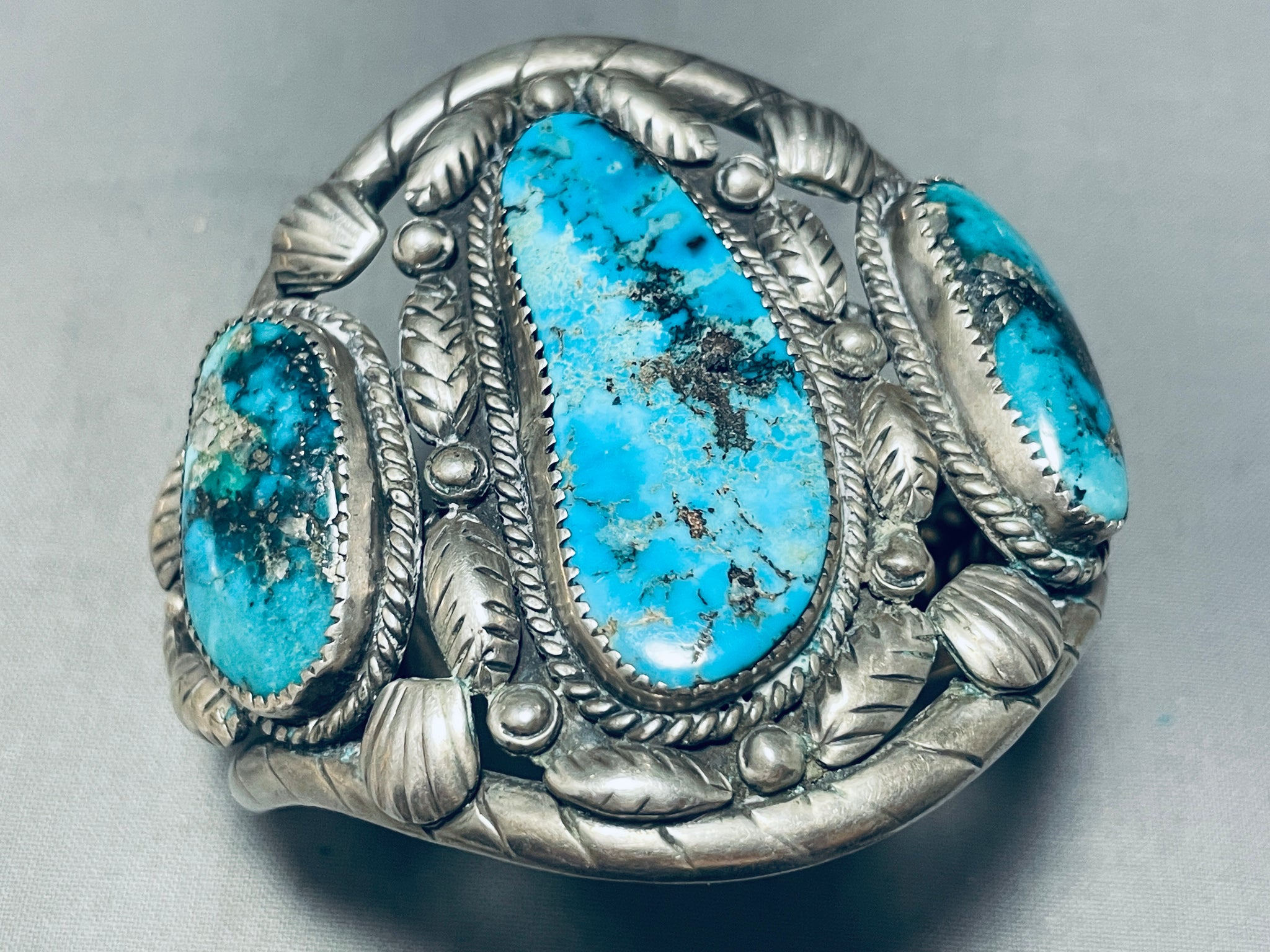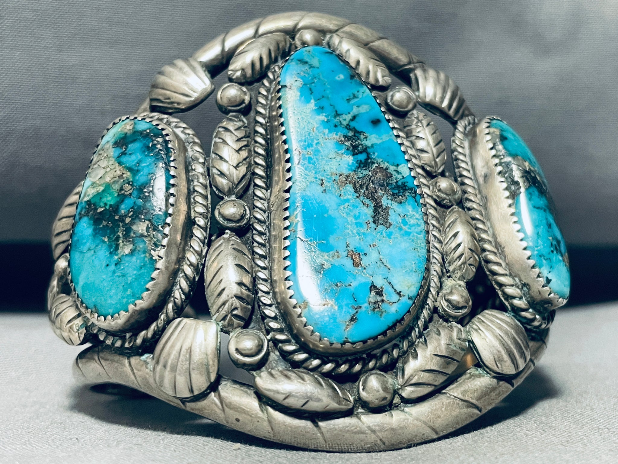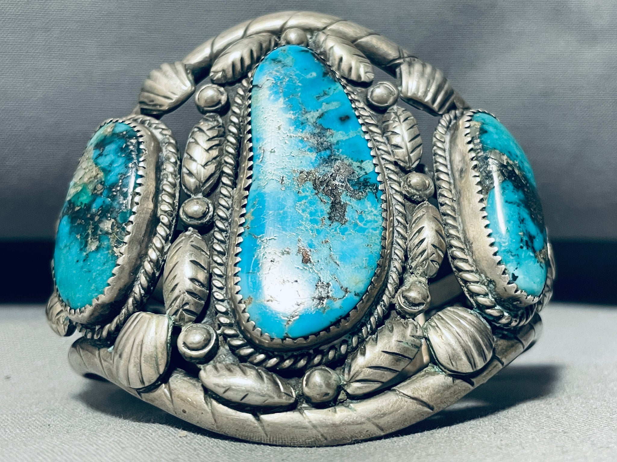 110 Grams Museum Quality Vintage Native American Navajo Turquoise Sterling Silver Bracelet