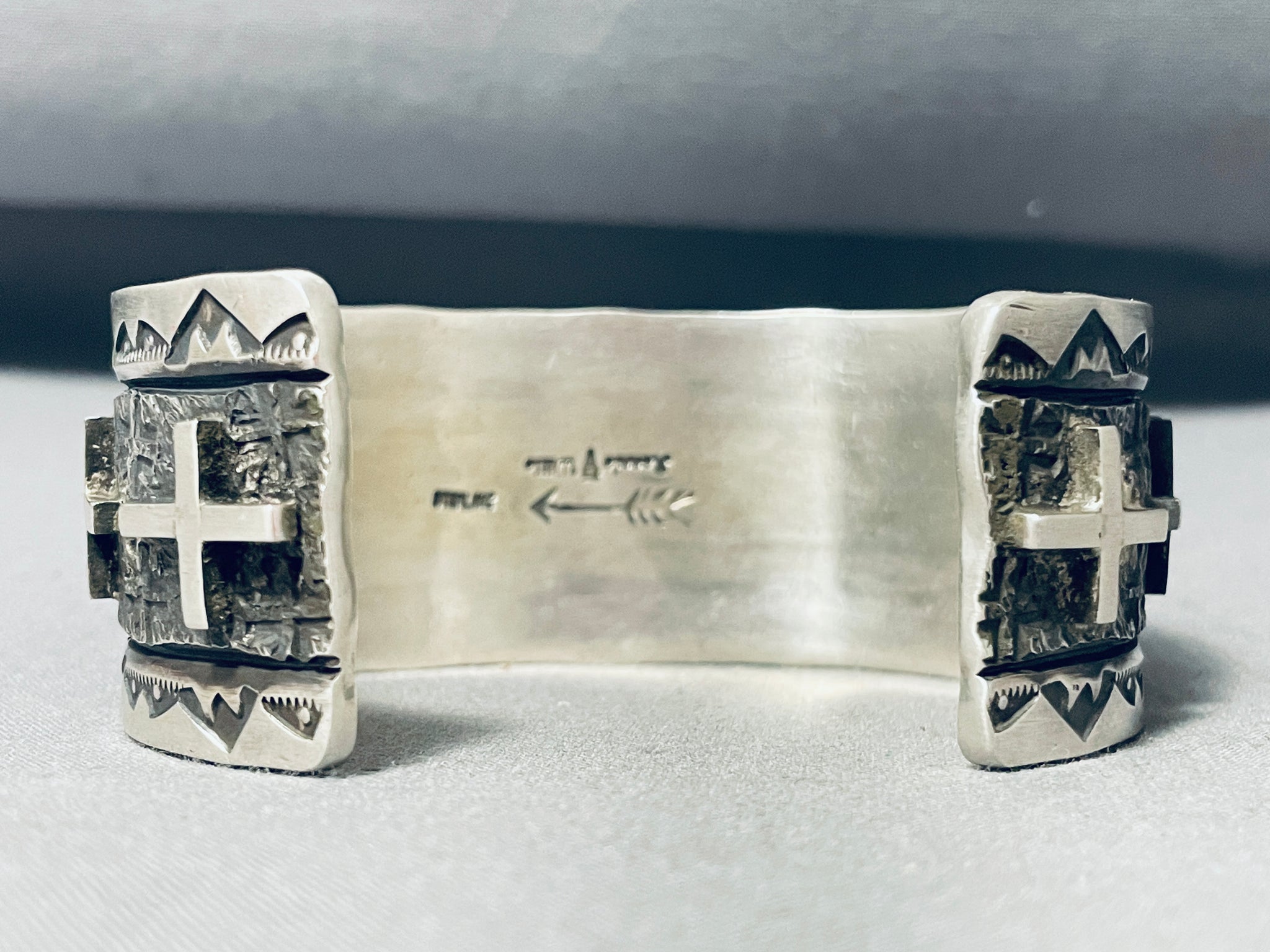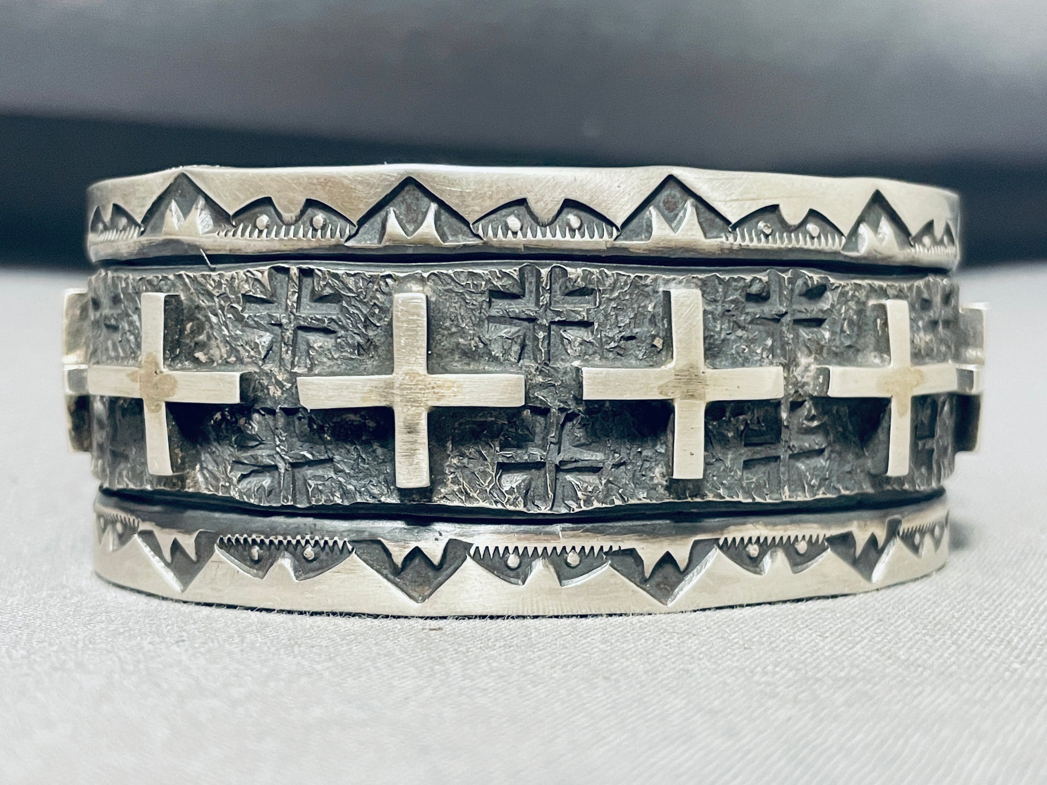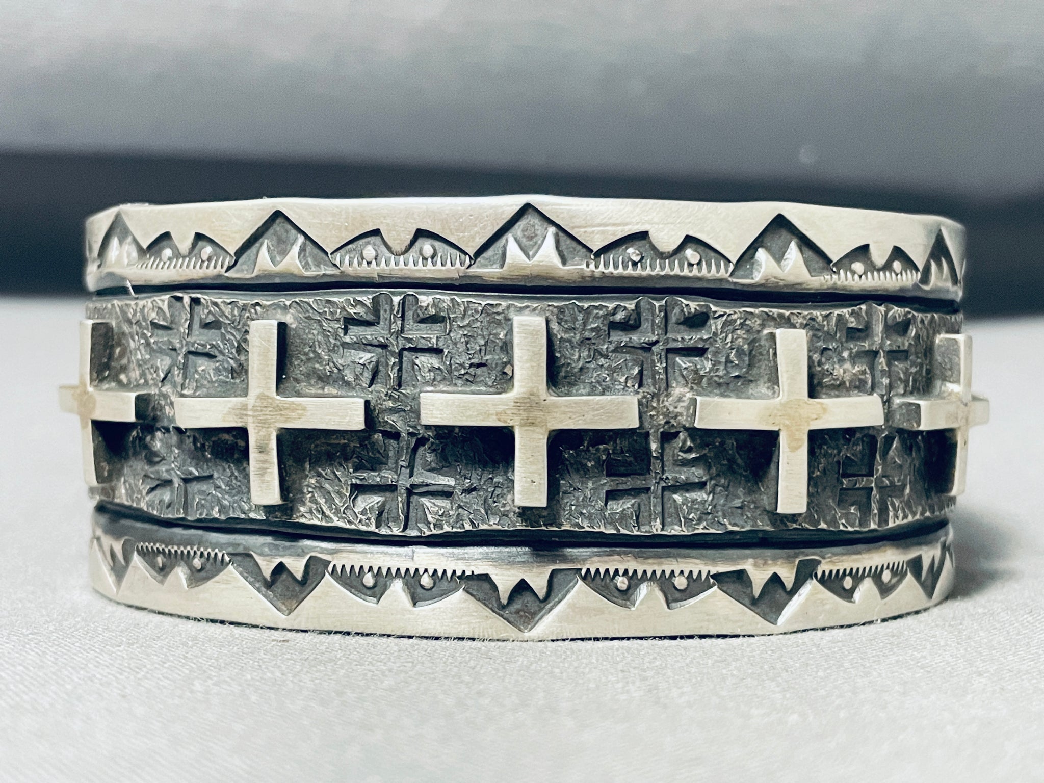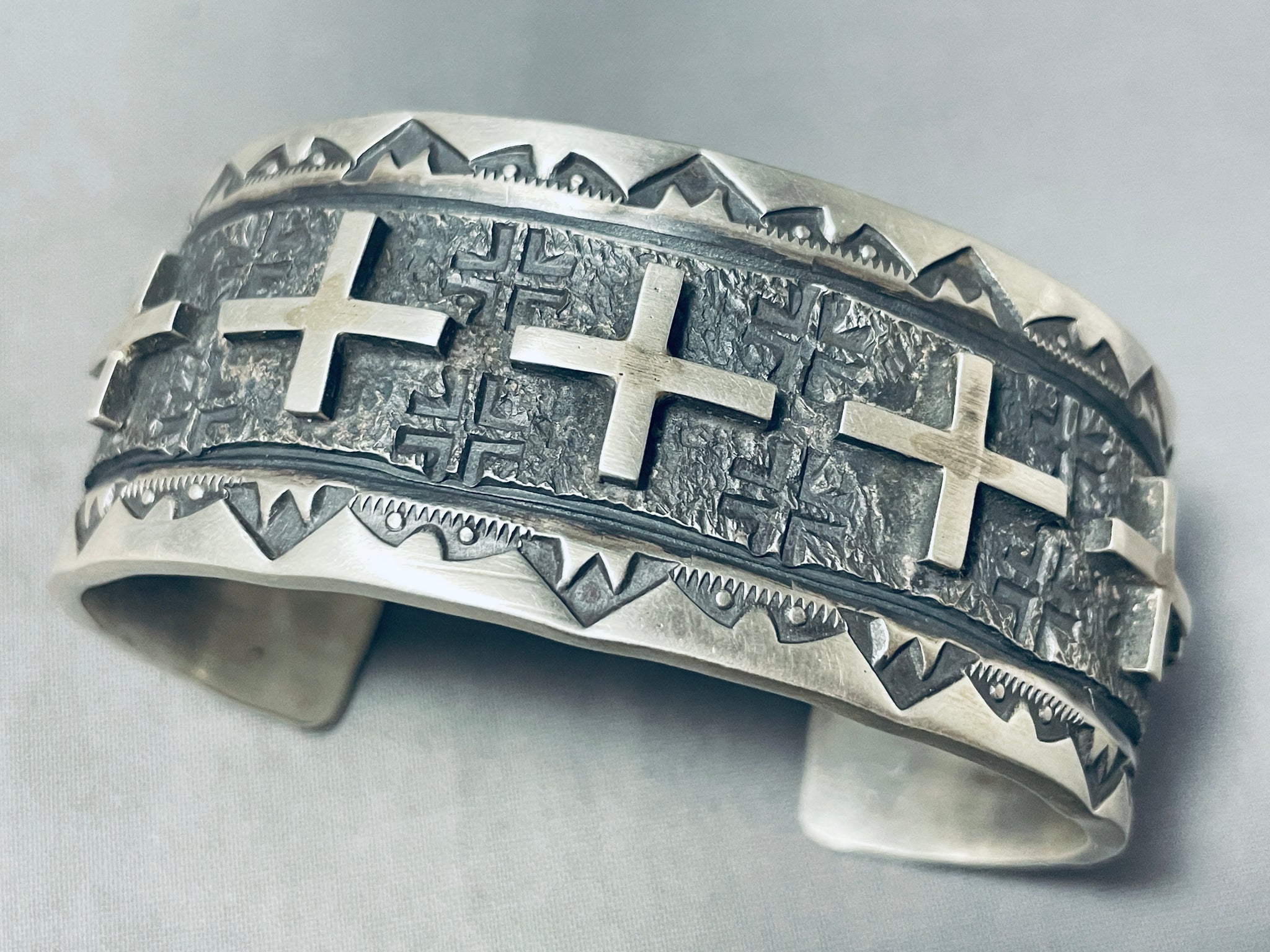116 Grams Native American Navajo Sterling Silver Cross Bracelet Signed