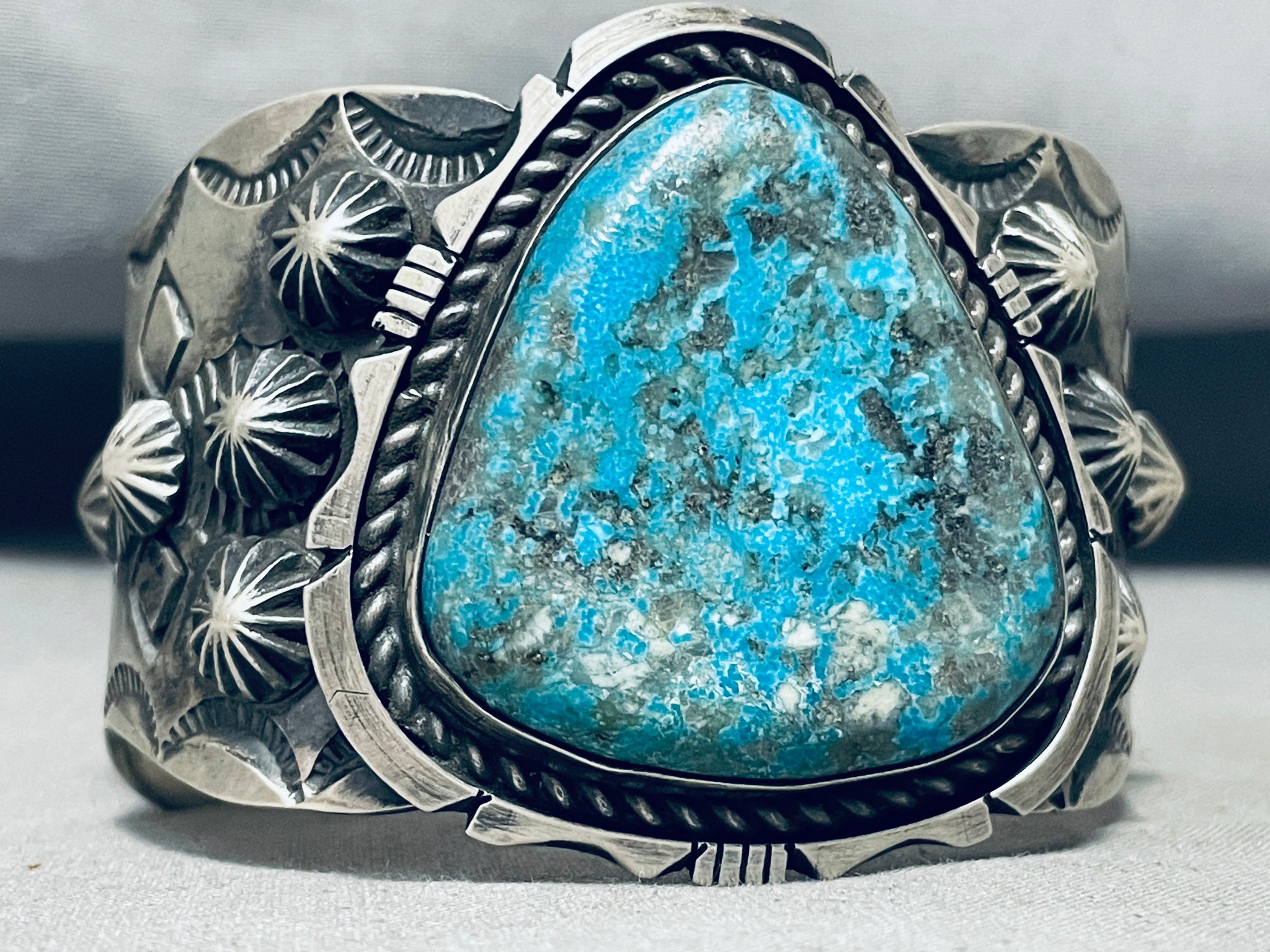 121 Gram Heavy Native American Navajo Pilot Mountain Turquoise Sterling Silver Bracelet