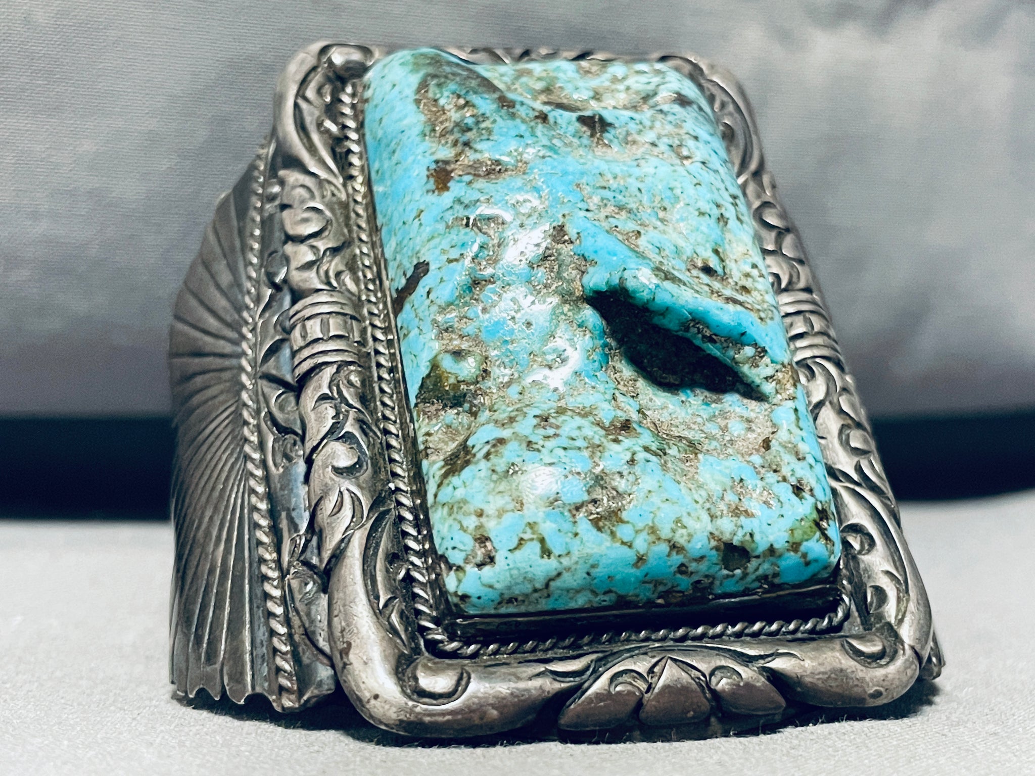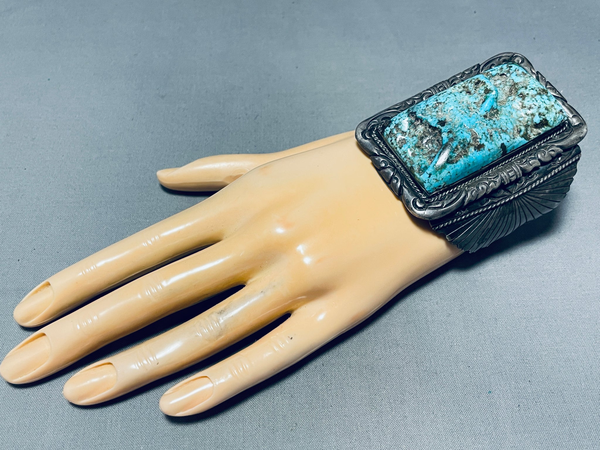 126 Grams Of Museum Quality Vintage Native American Navajo Turquoise Sterling Silver Bracelet