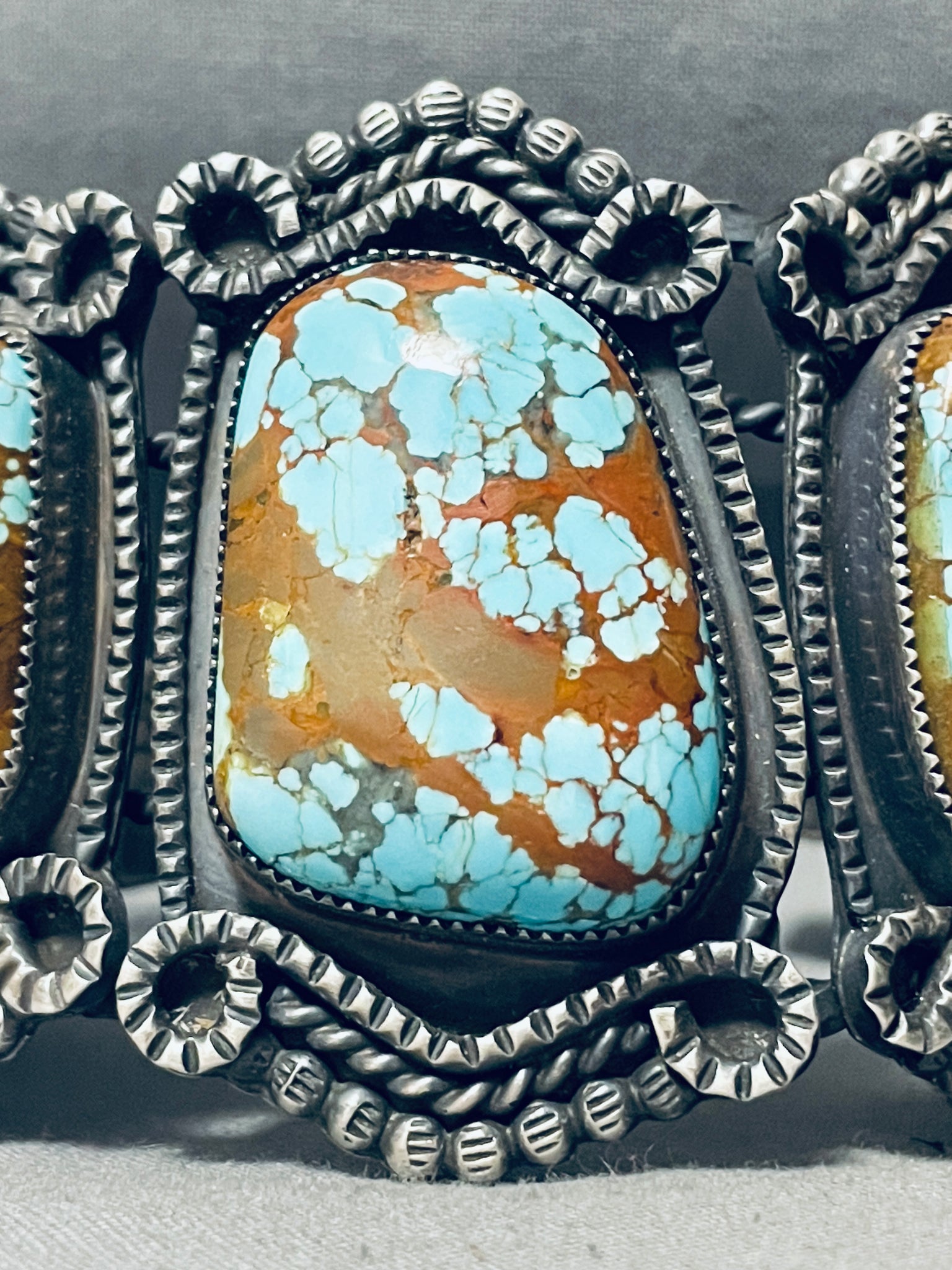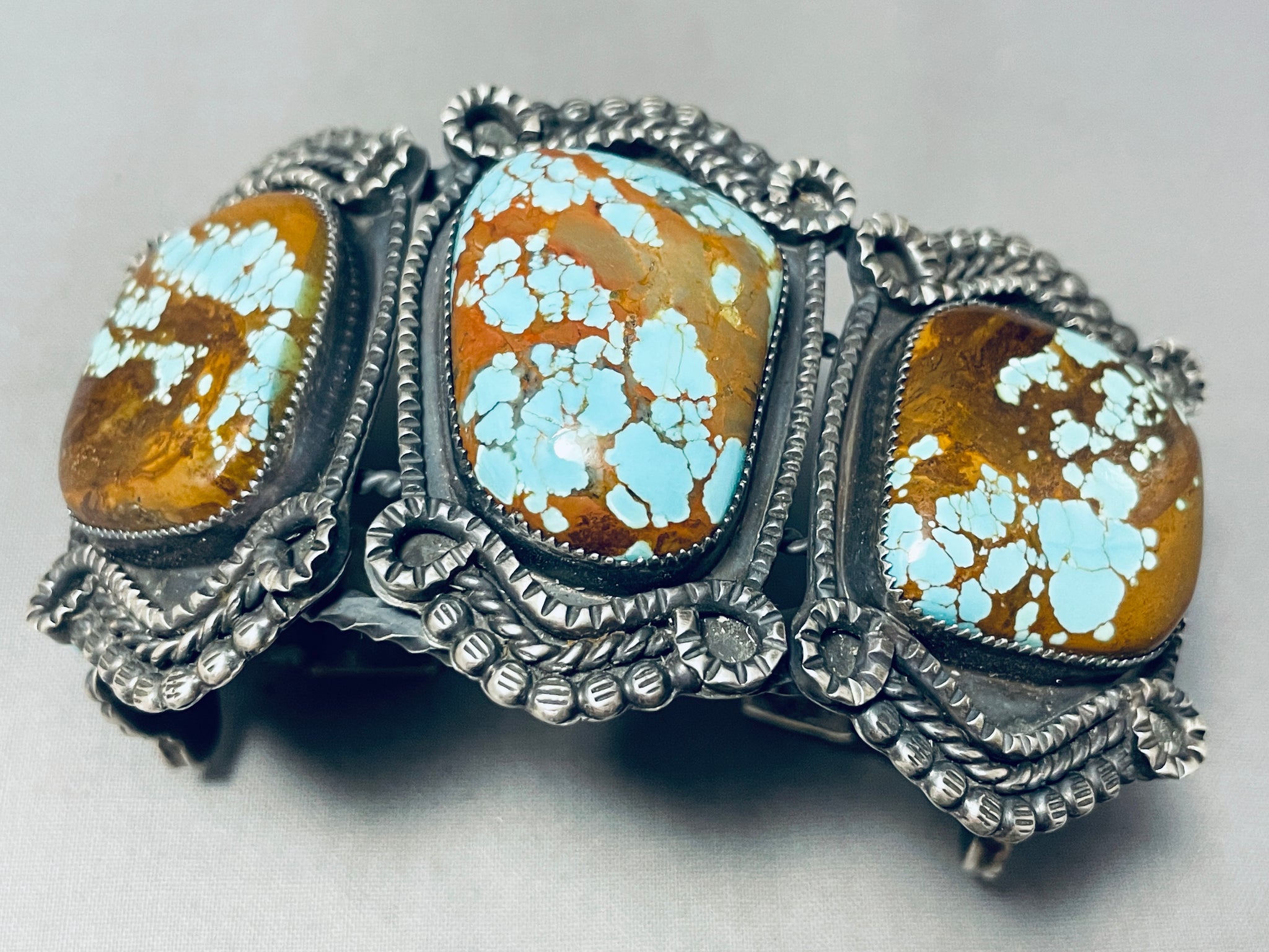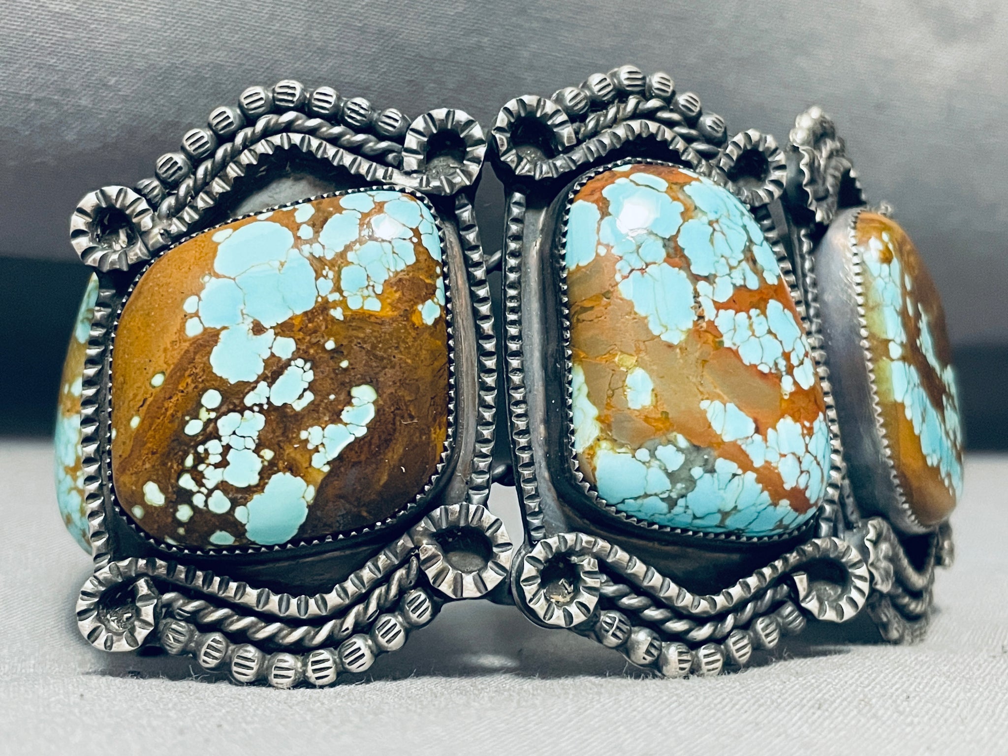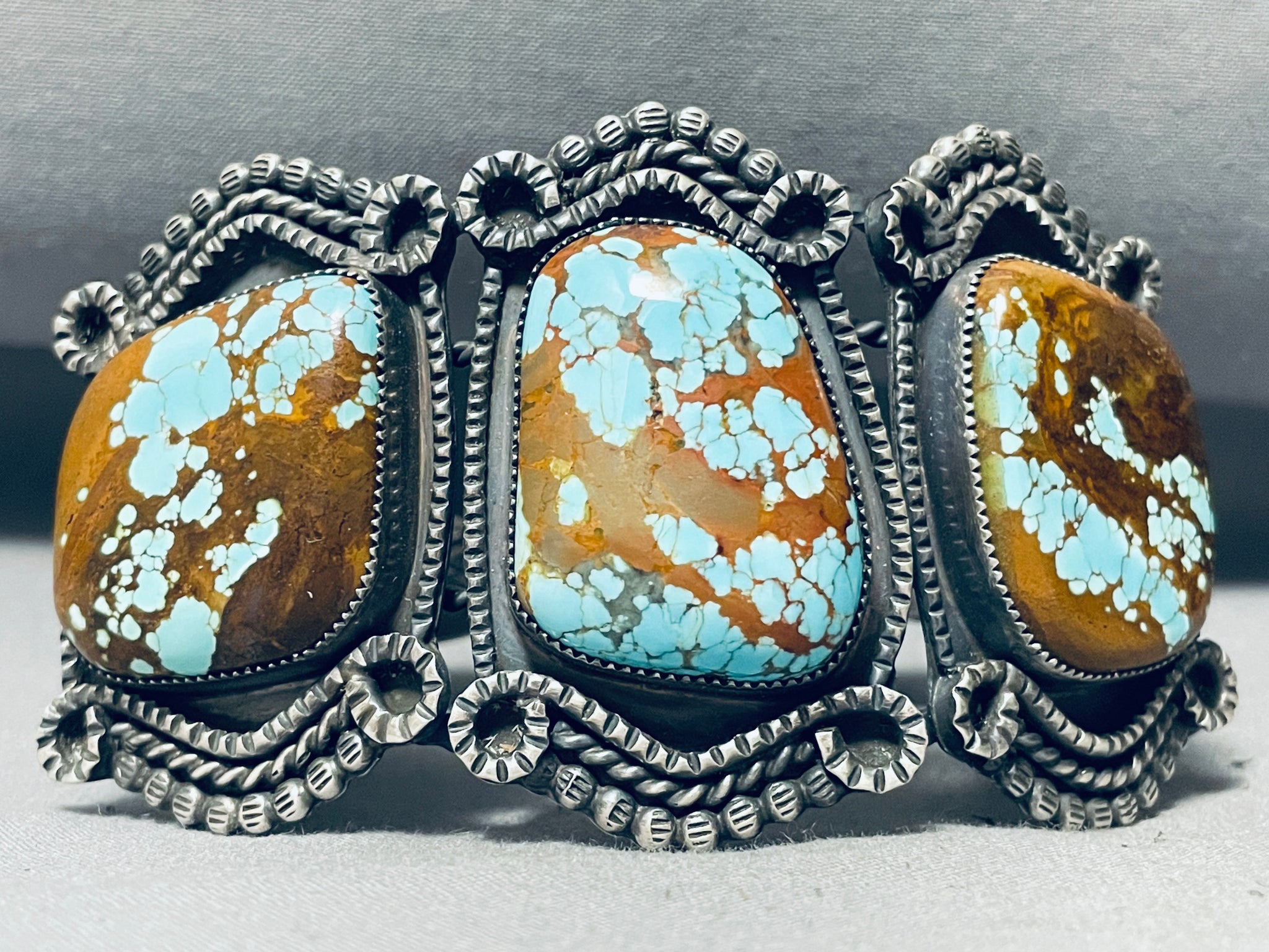 127 Grams Heavy Native American Navajo #8 Turquoise Sterling Silver Bracelet Cuff