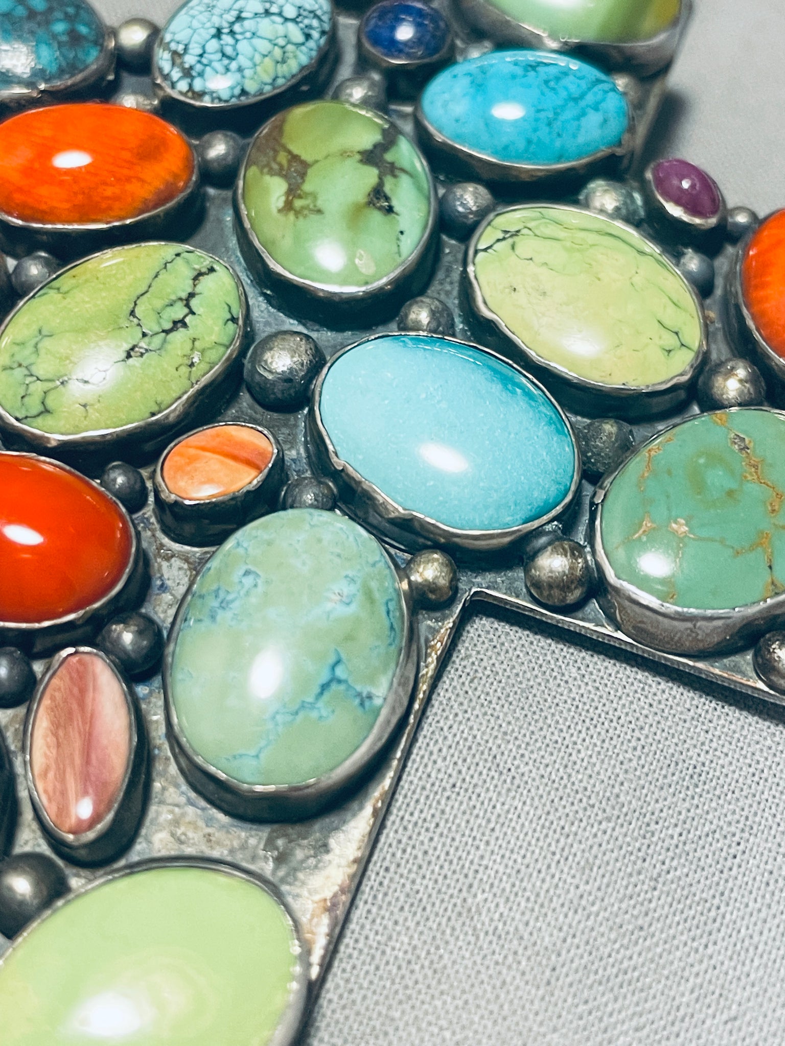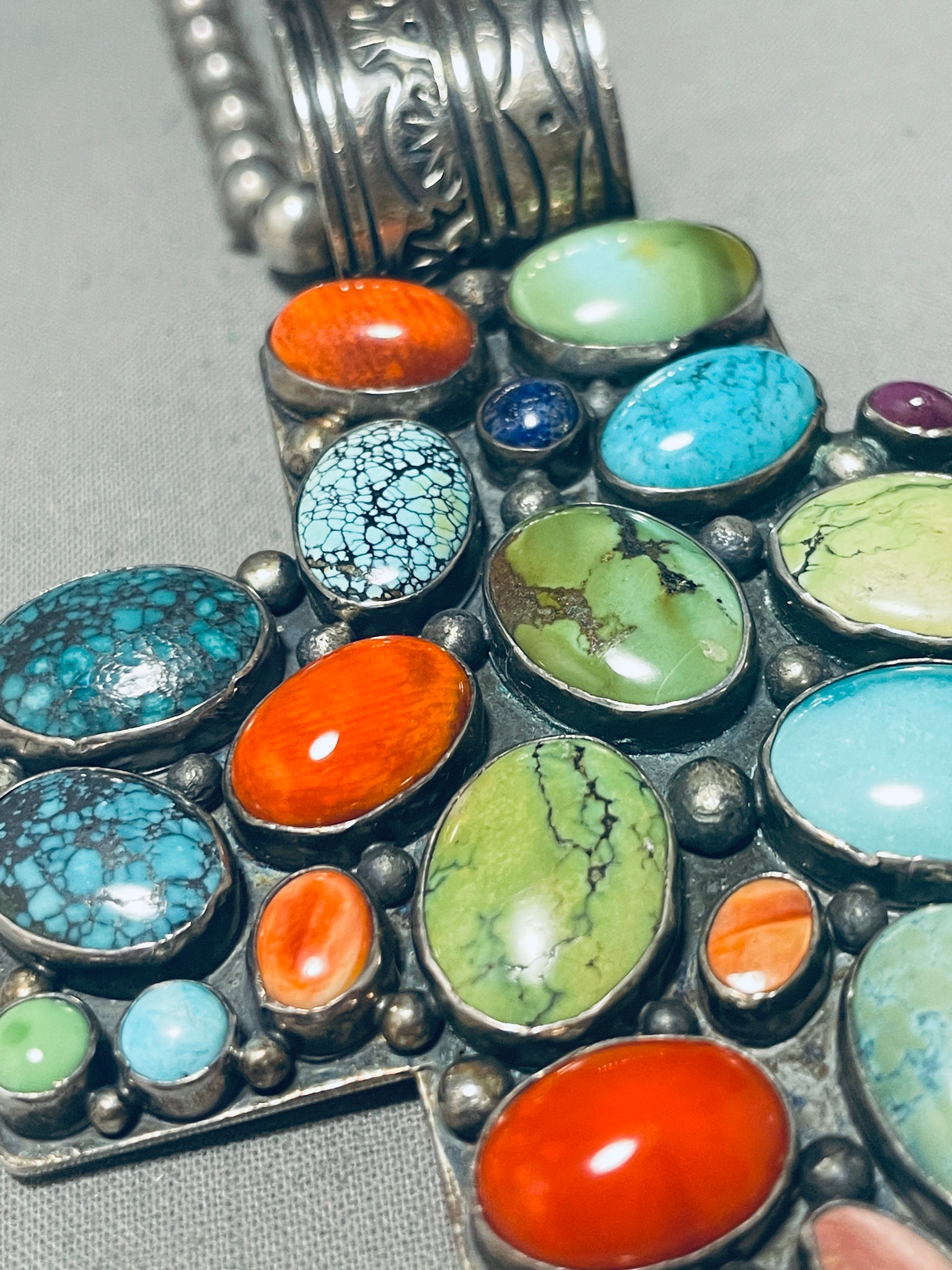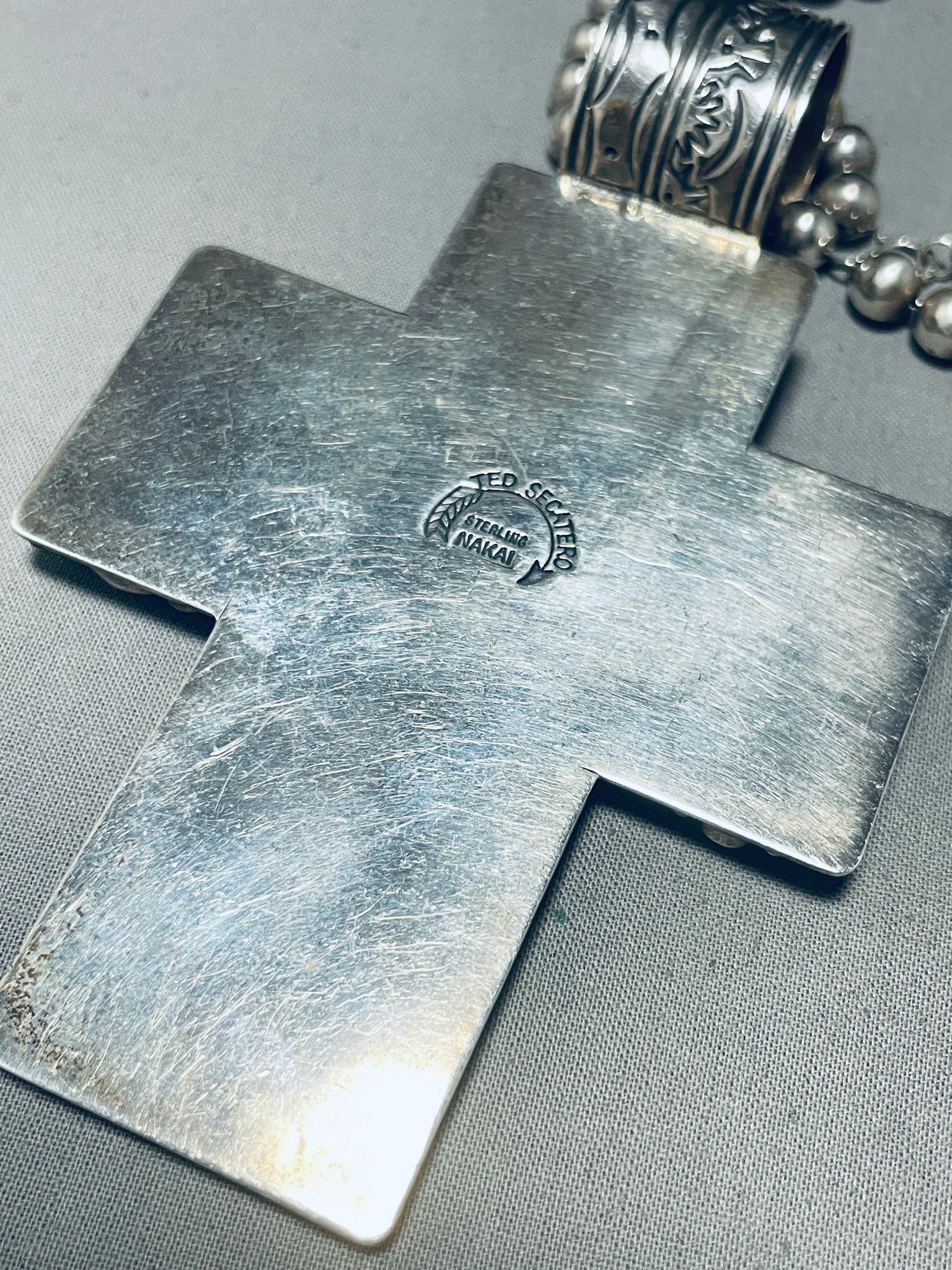 131 Grams Vintage Native American Navajo Turquoise Sterling Silver Cross Necklace