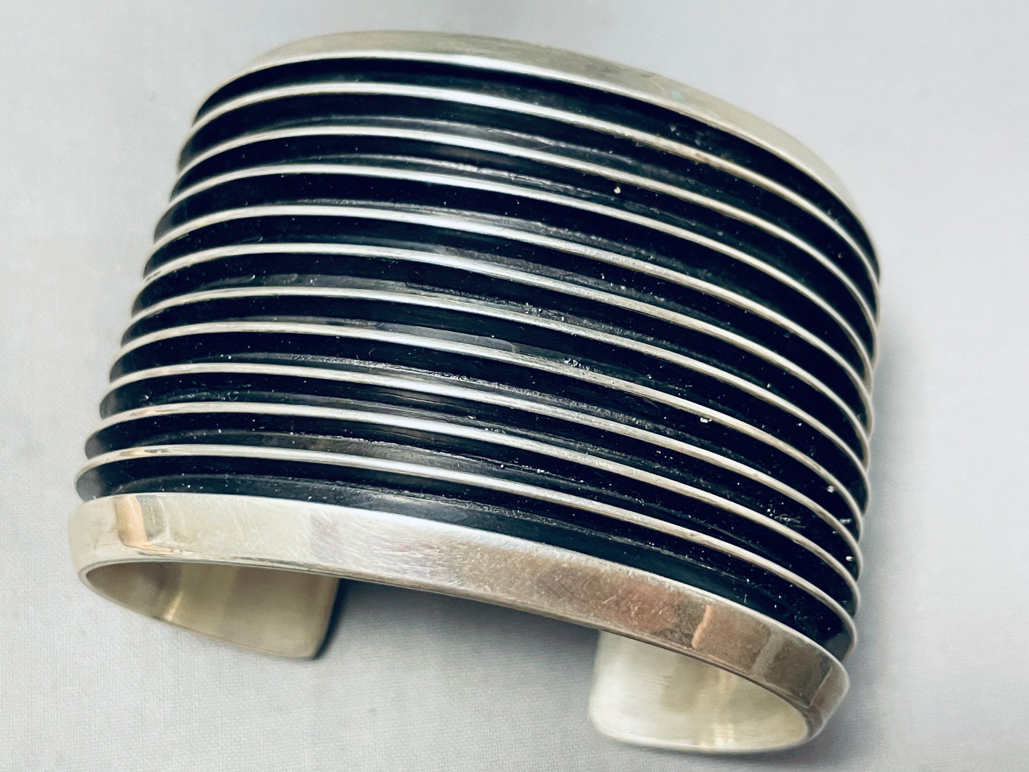 136 Grams! Very Heavy Vintage Native American Navajo Sterling Silver Channel Bracelet Cuff