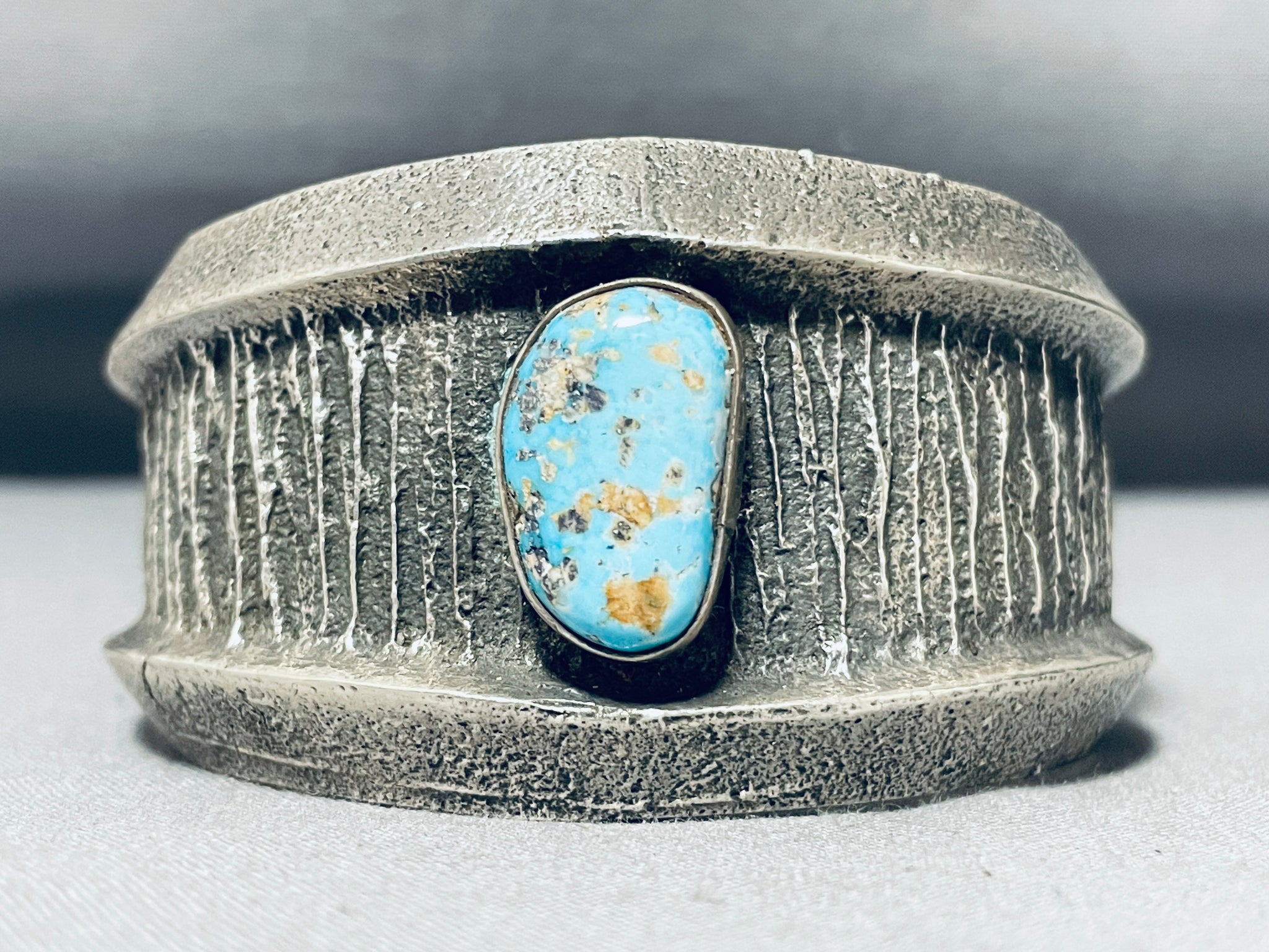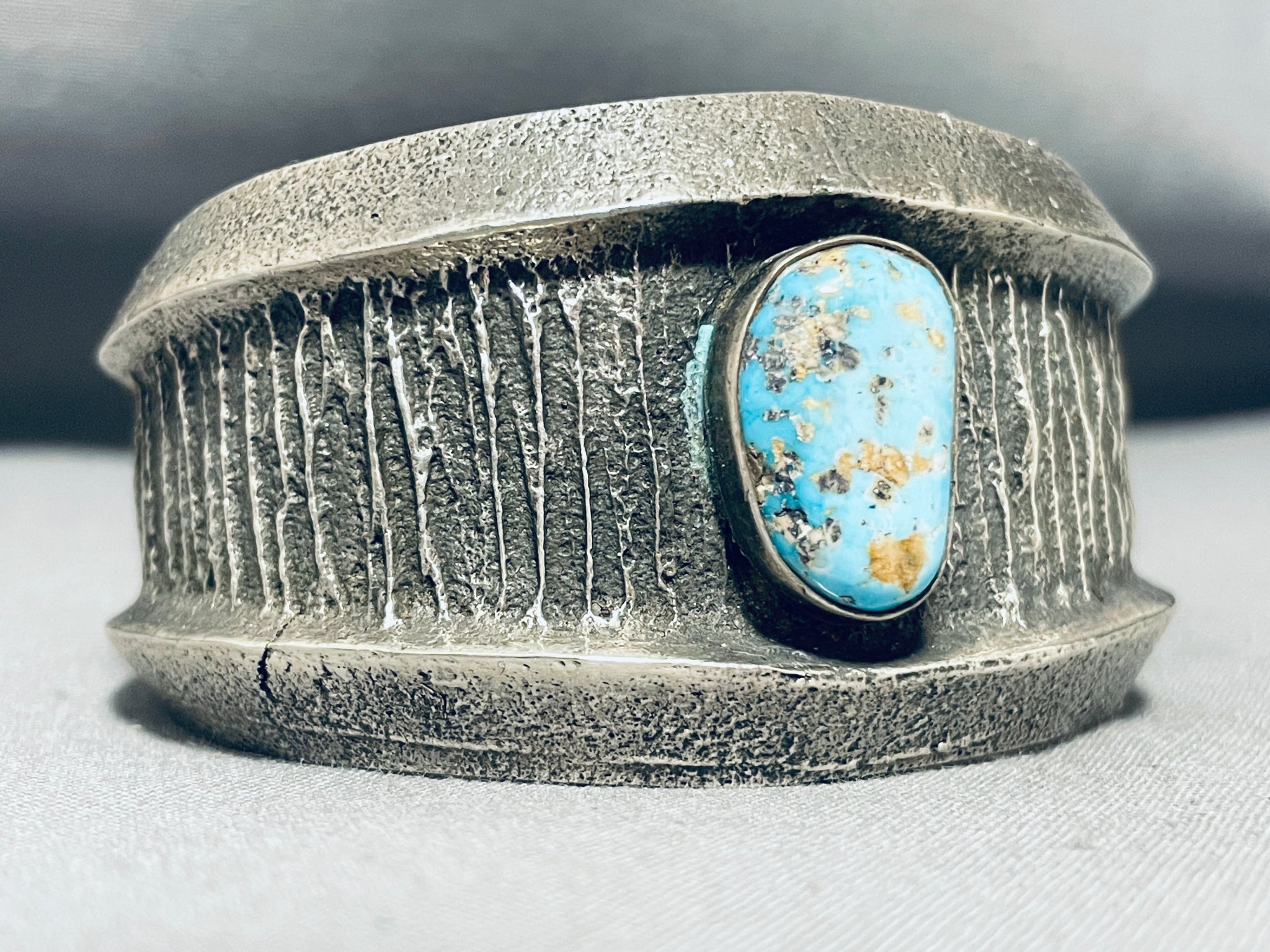 137 Grams Vintage Native American Navajo #8 Turquoise Sterling Silver Bracelet