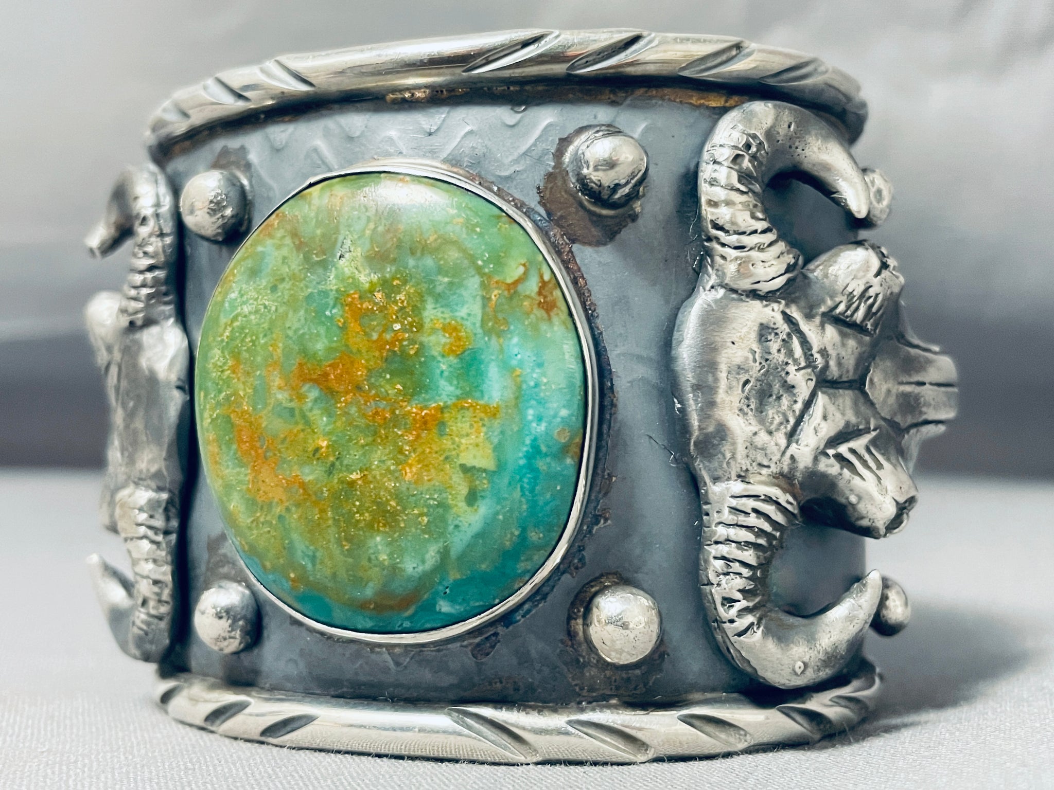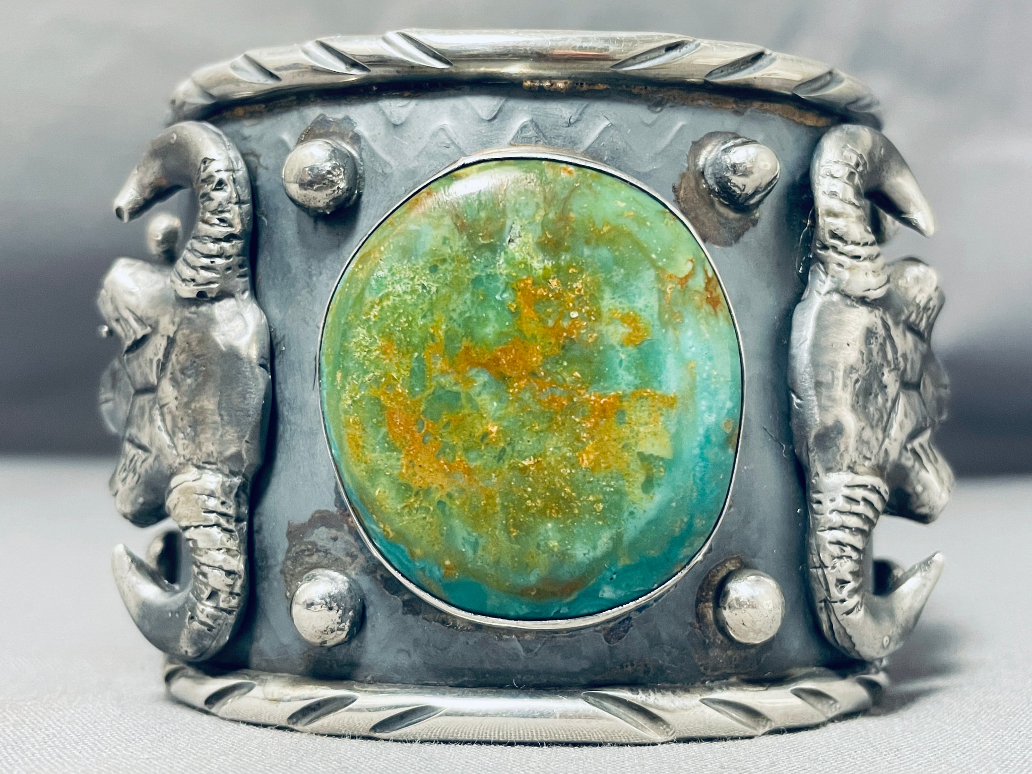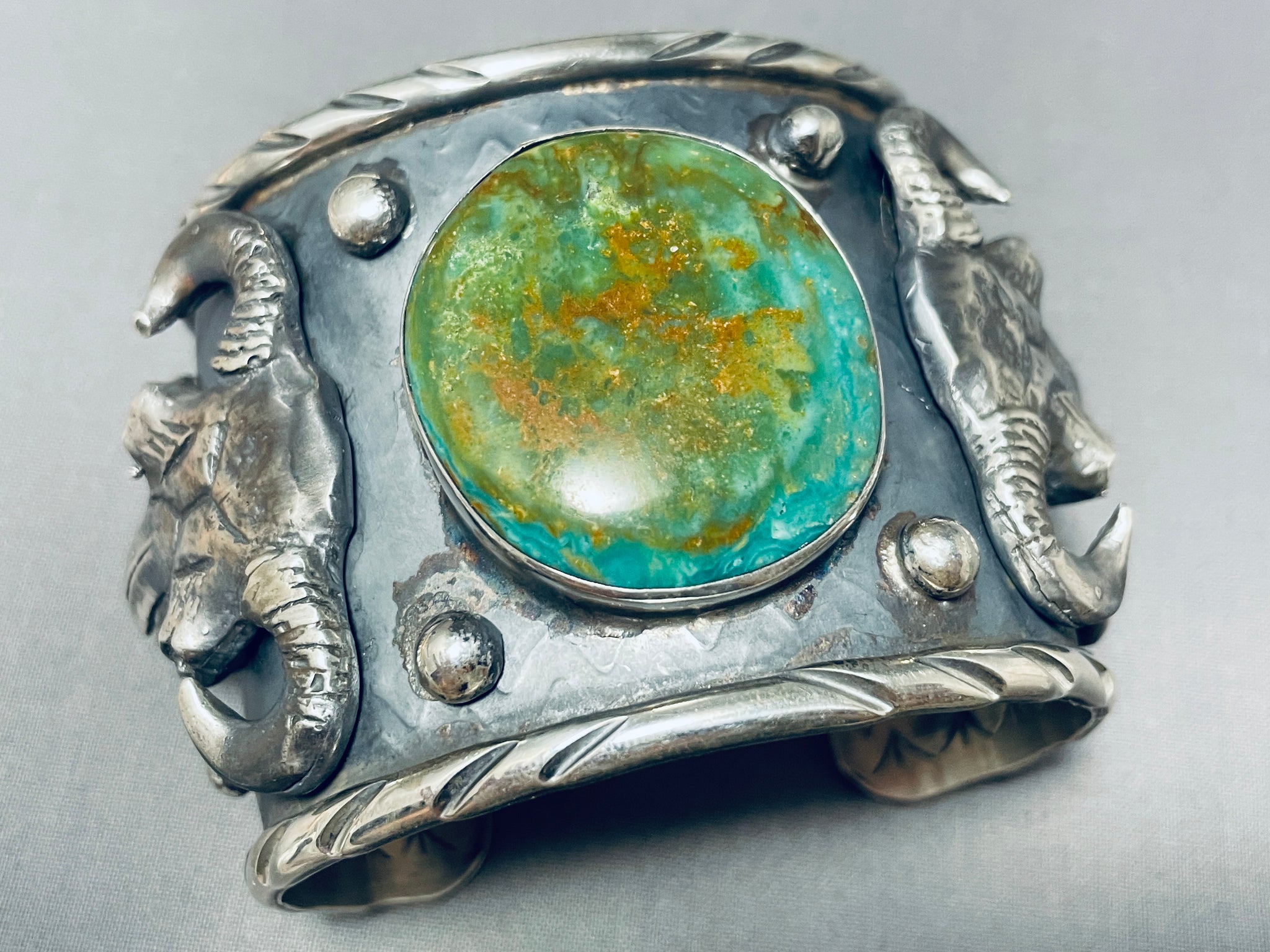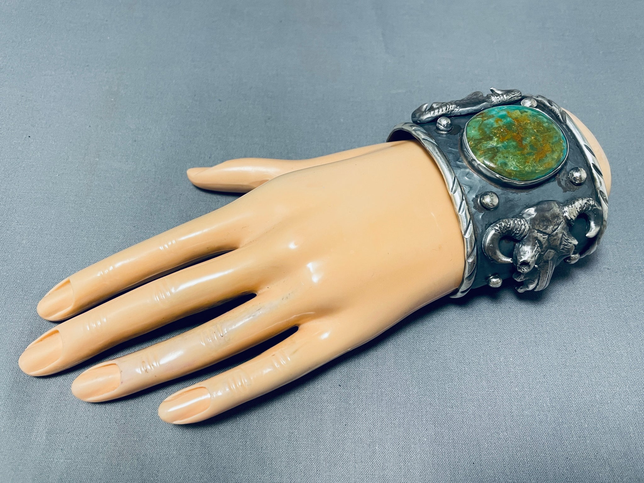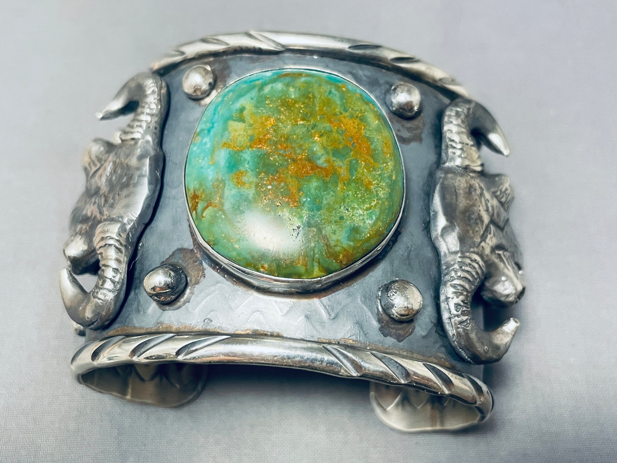 140 Gram Monster Native American Green Turquoise Sterling Silver Bracelet