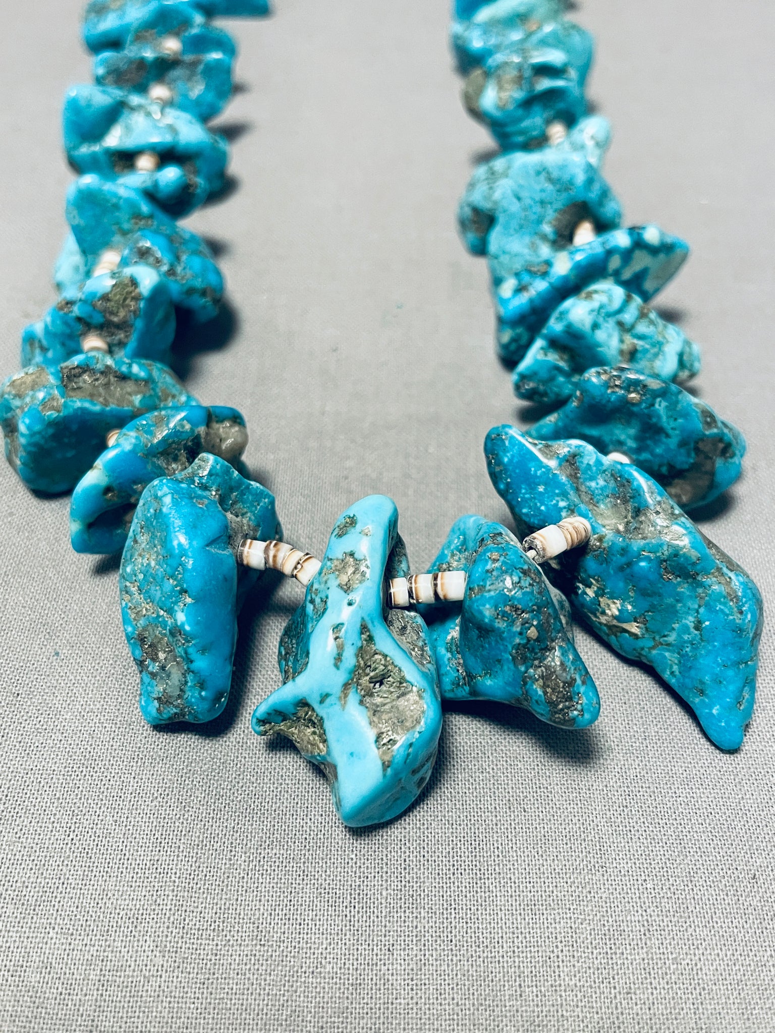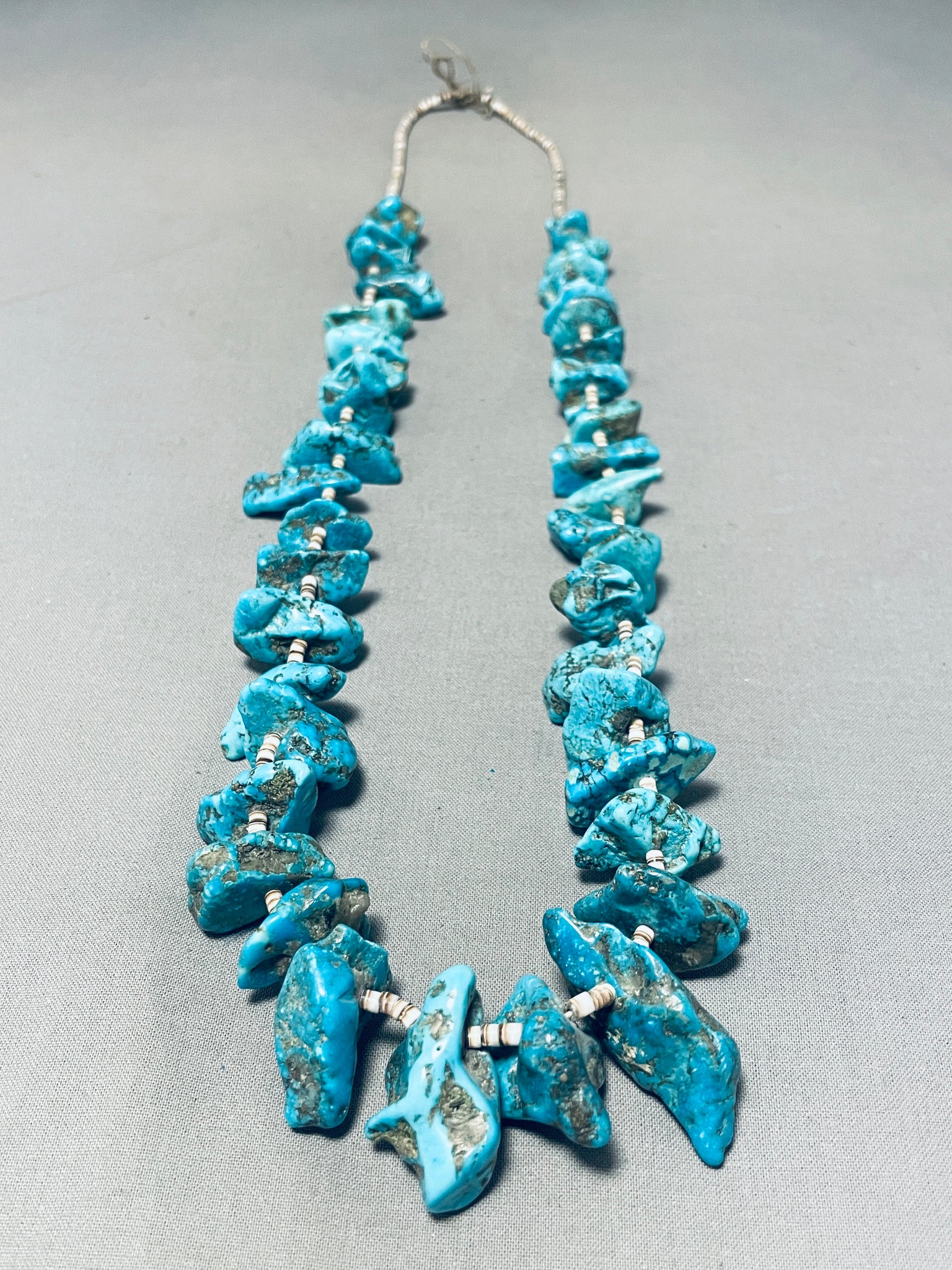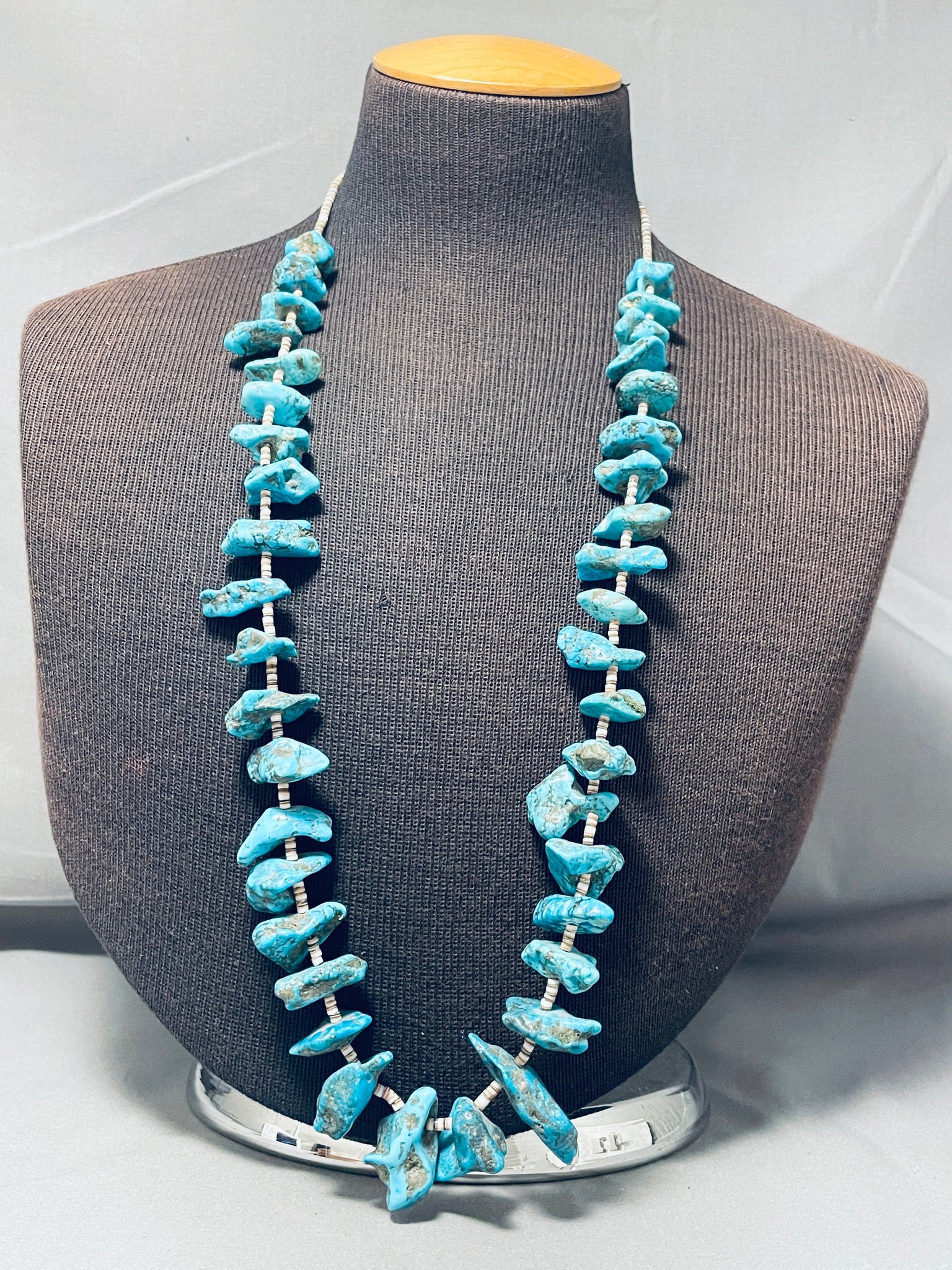 149 Gram Vintage Native American Navajo Turquoise Nugget Heishi Necklace Old