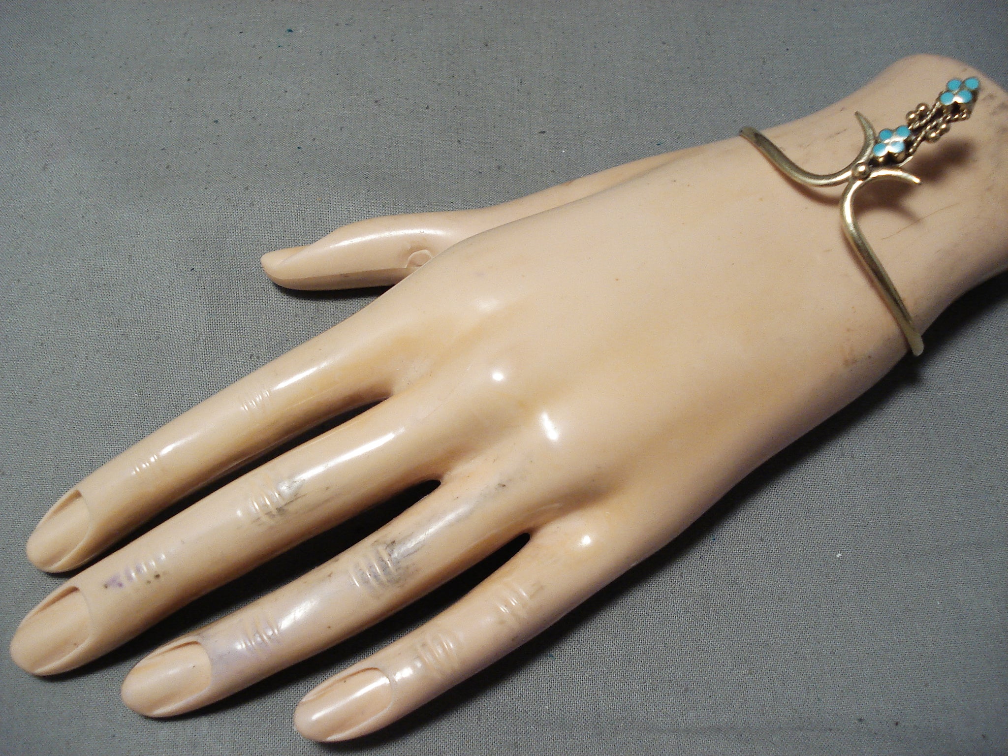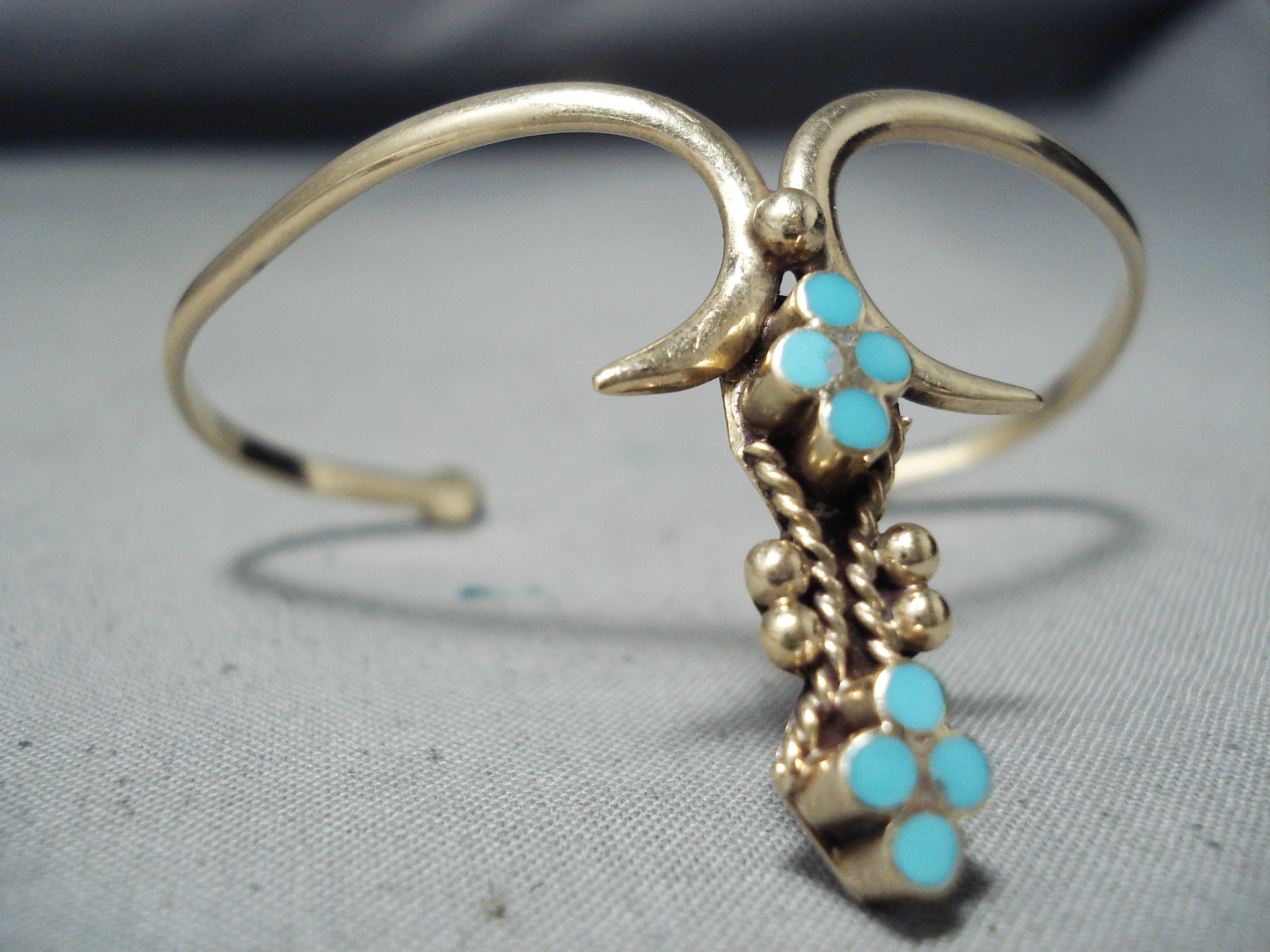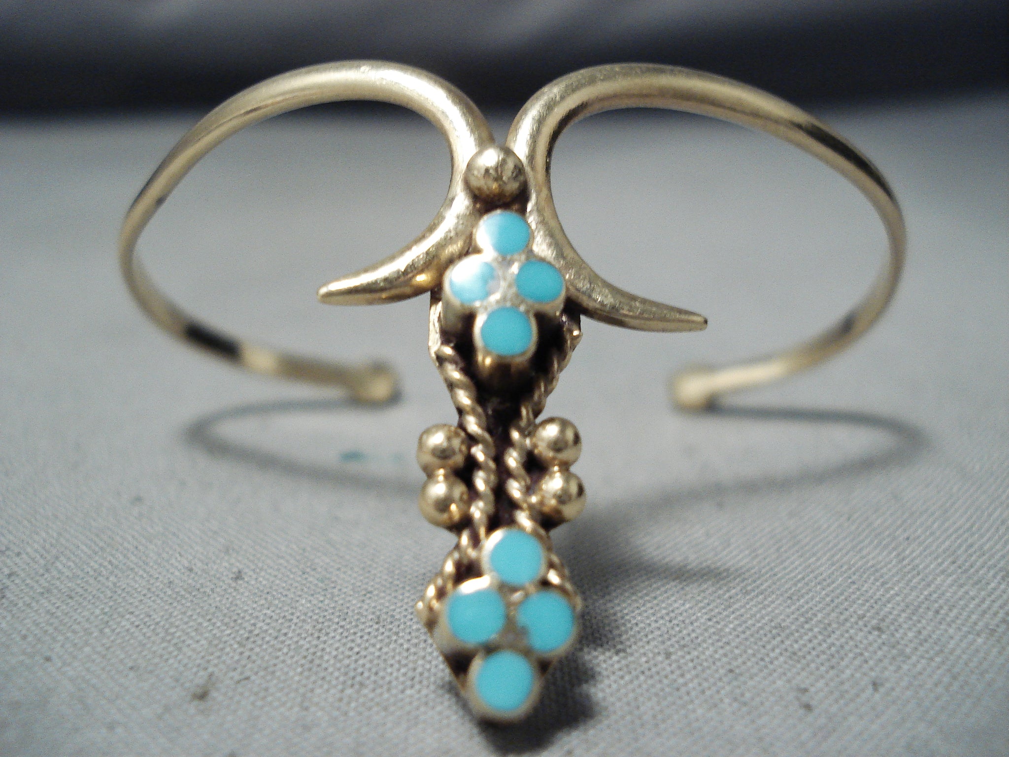 14k Gold Signed Vintage Native American Navajo Women's Turquoise Bracelet