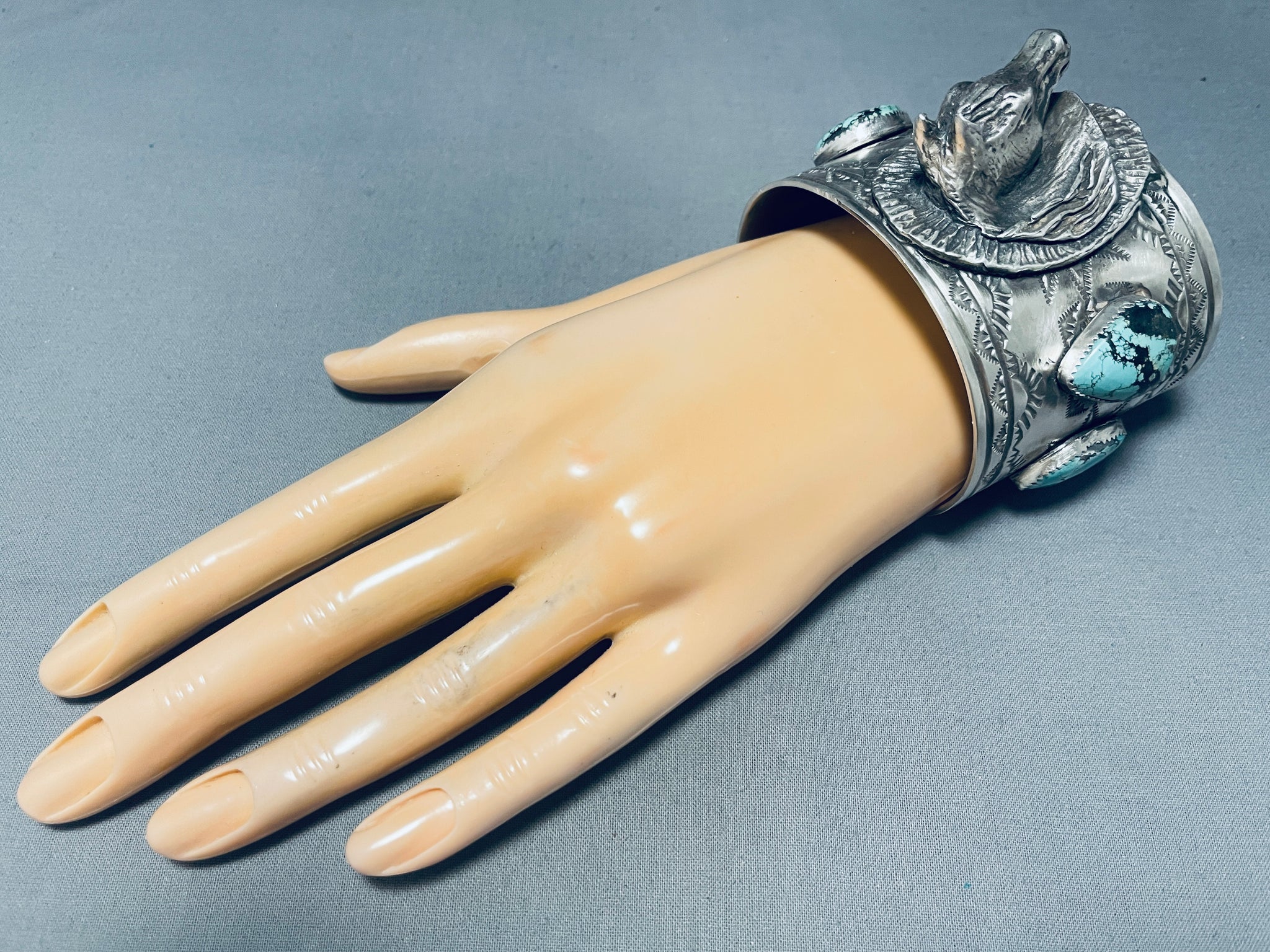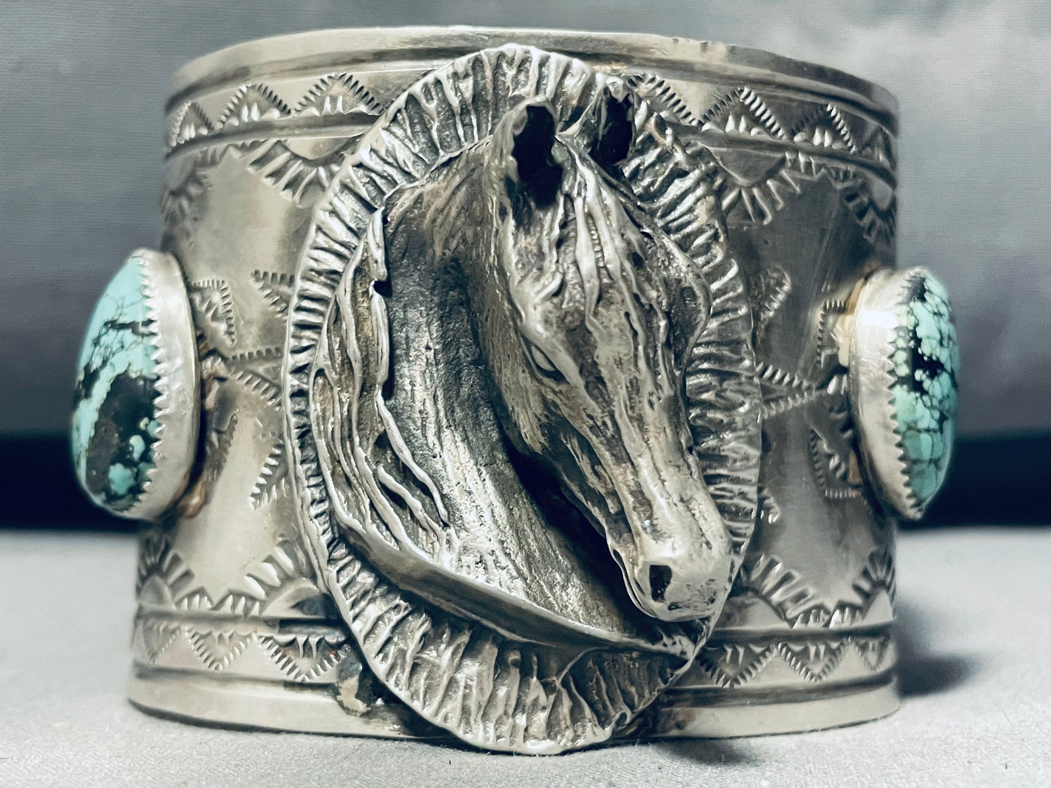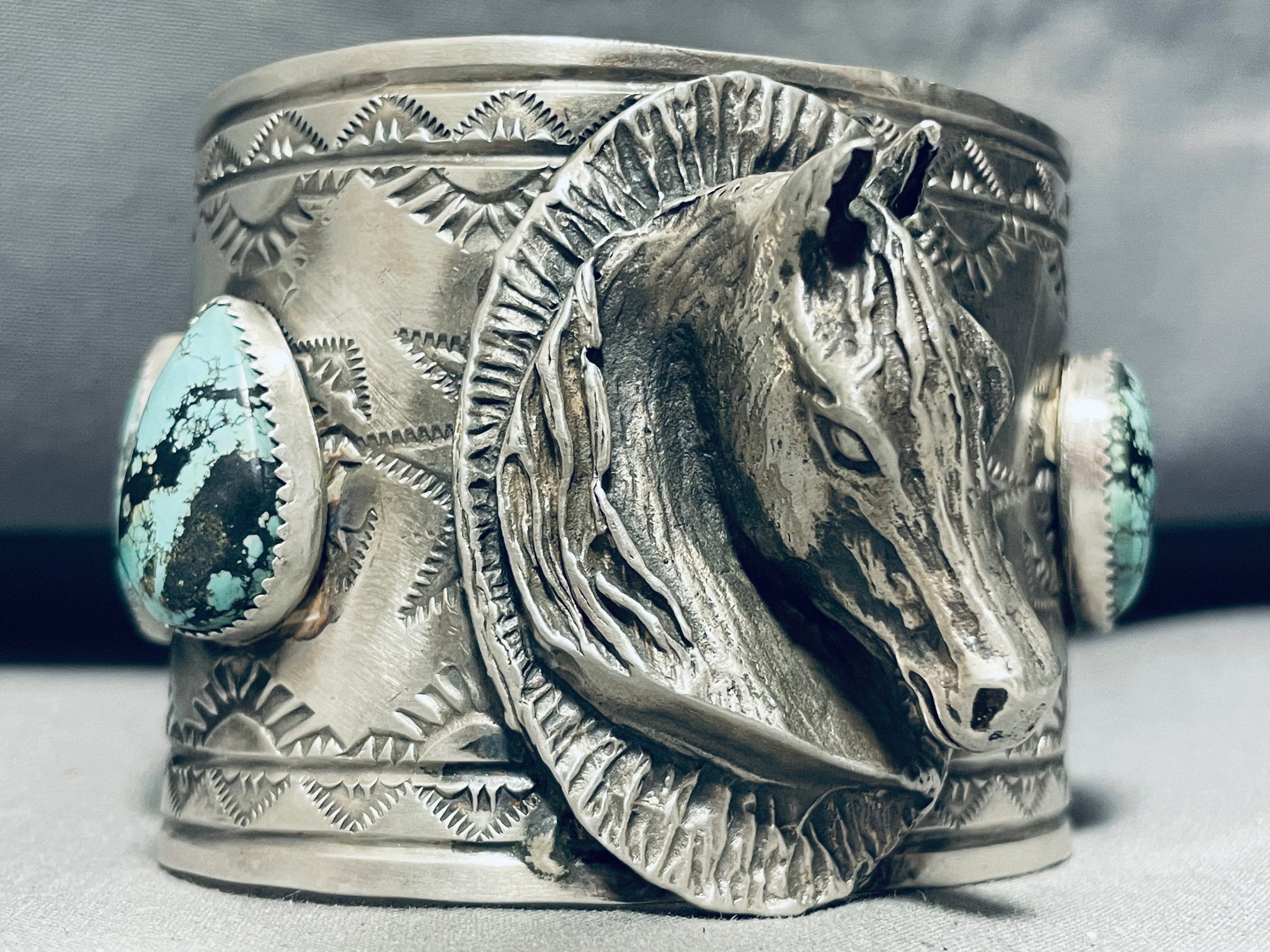 167 Grams!! Horse Portrait Native American Navajo Turquoise Sterling Silver Bracelet
