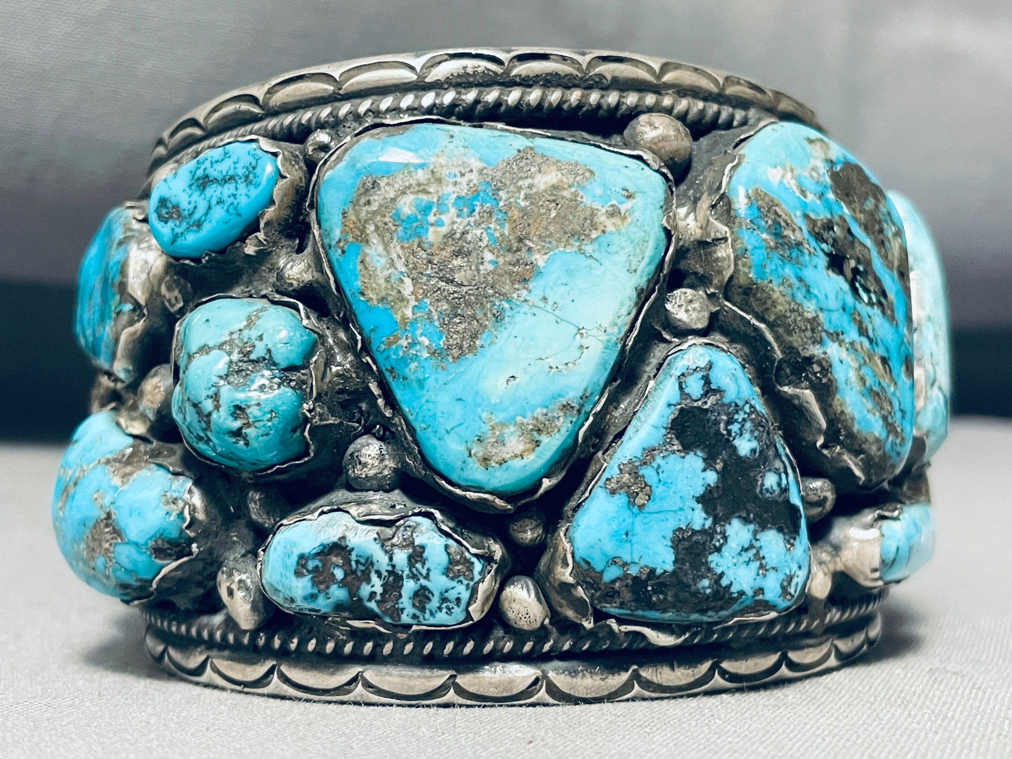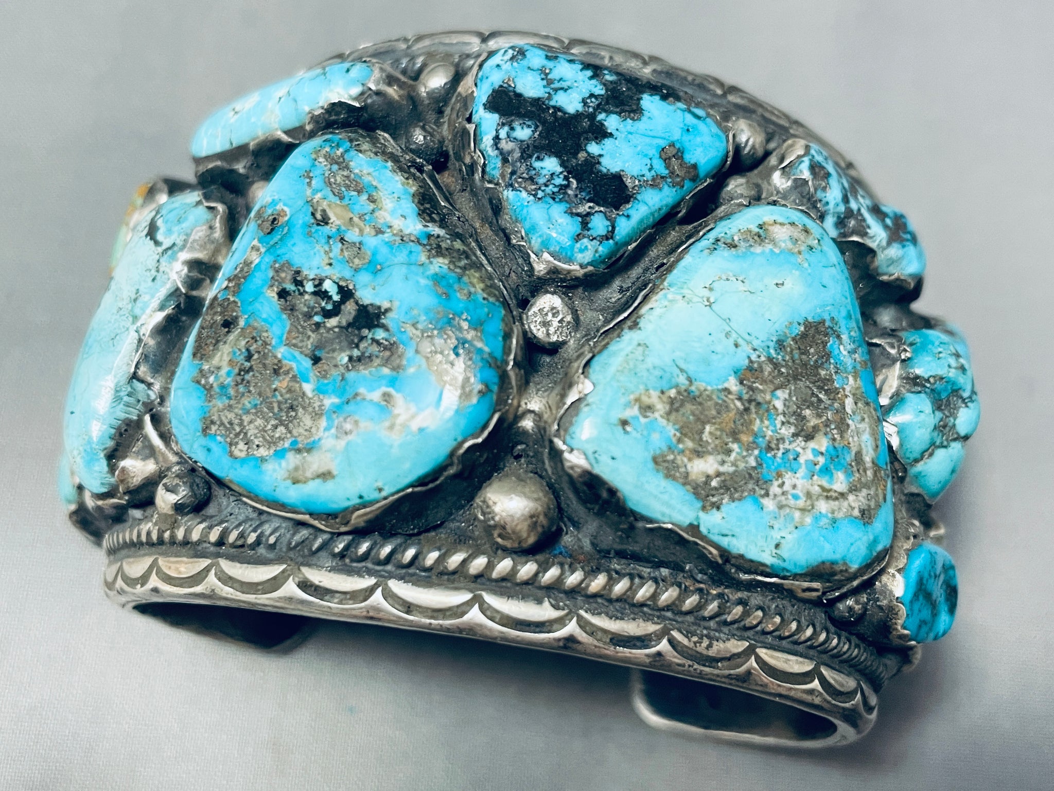 174 Gram Monster Mens Vintage Native American Navajo Turquoise Sterling Silver Bracelet