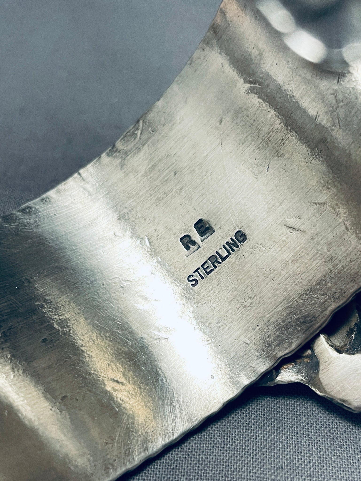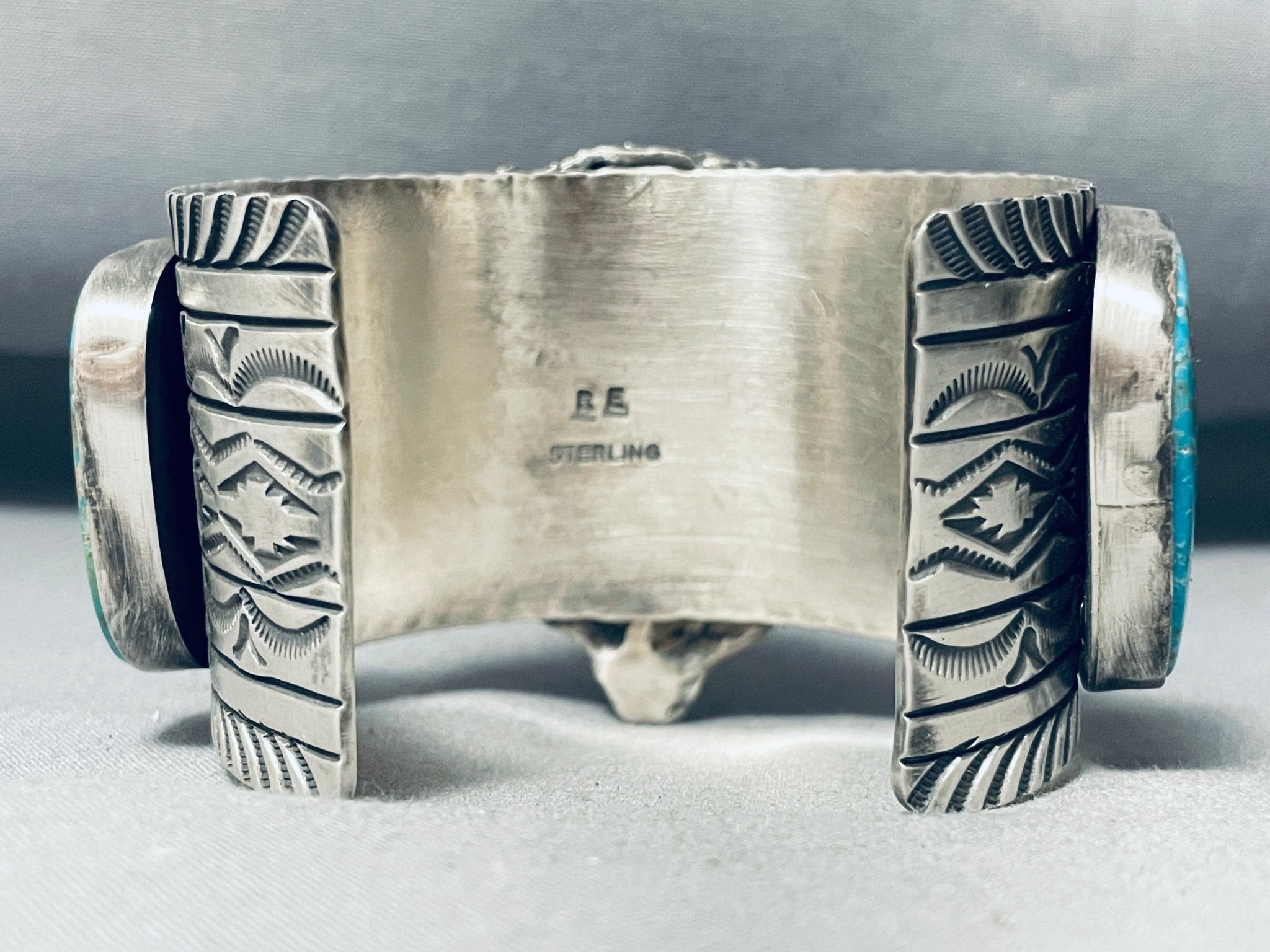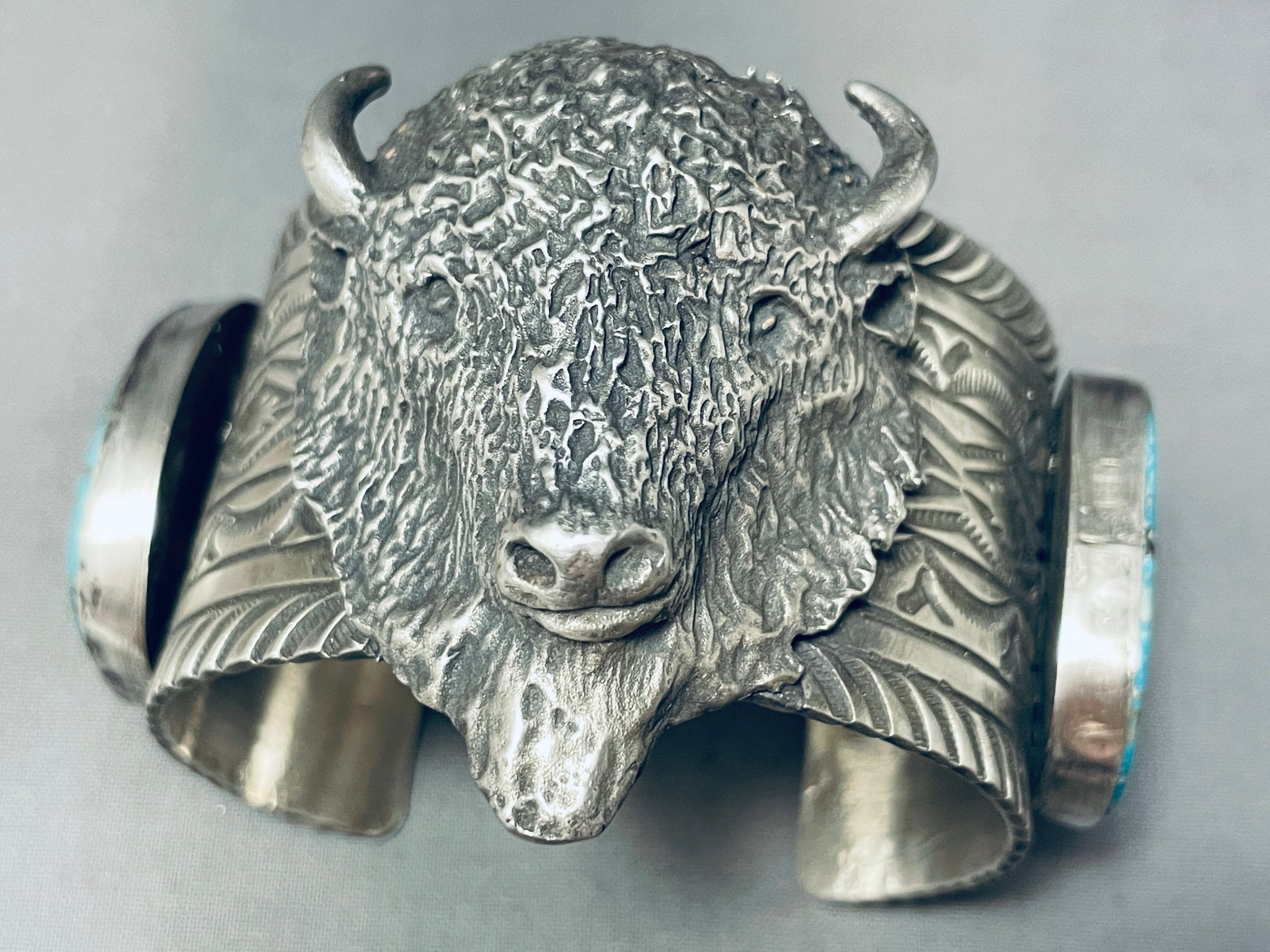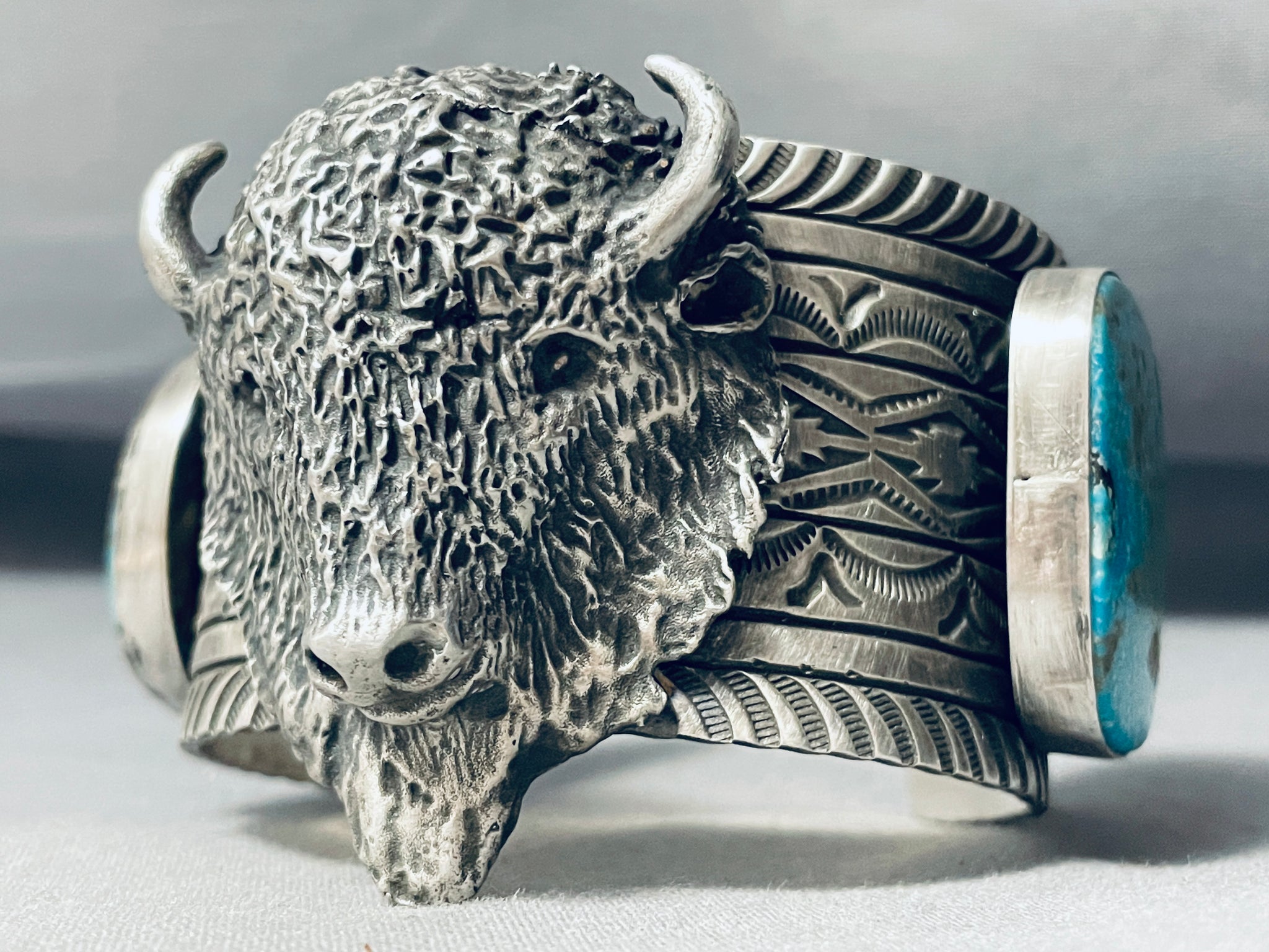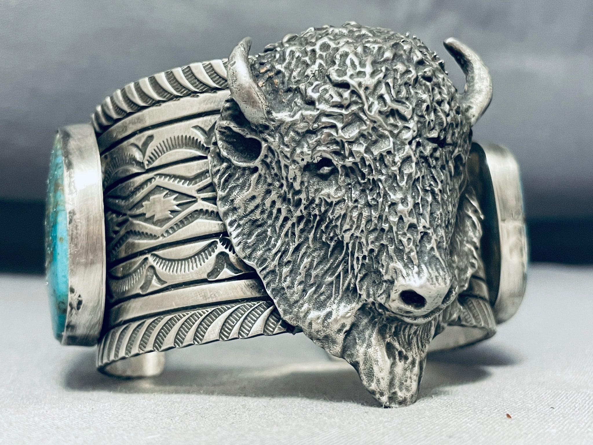 175 Grams Mind Boggling Native American Navajo Turquoise Sterling Silver Bison Bracelet