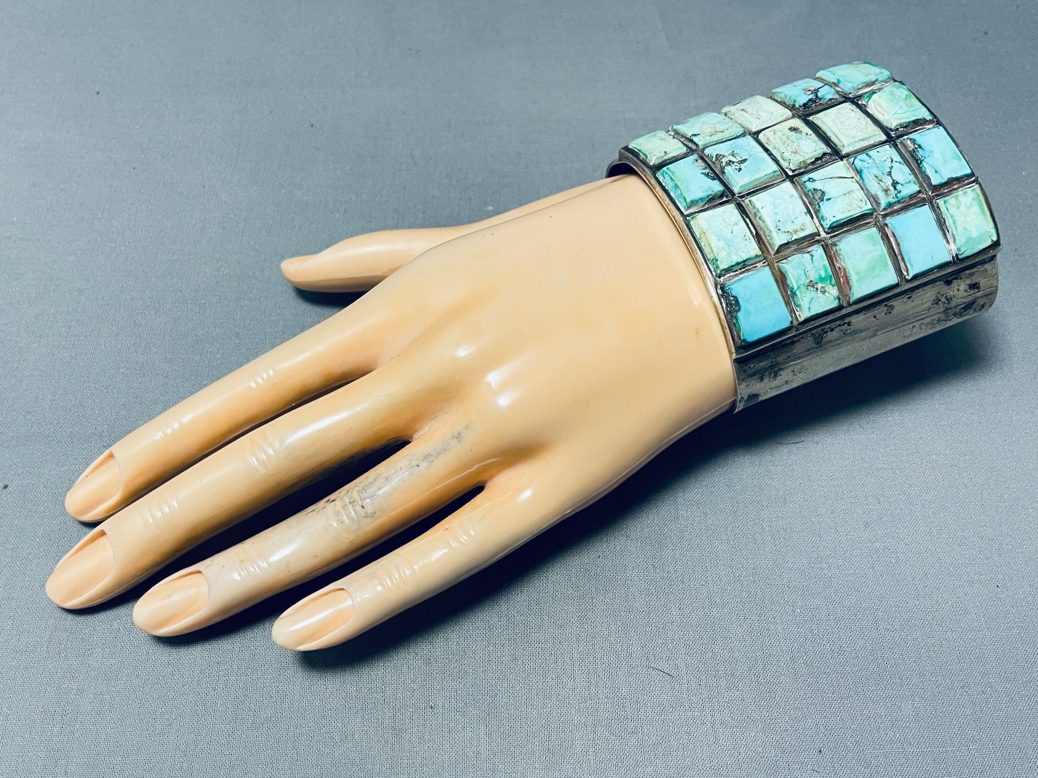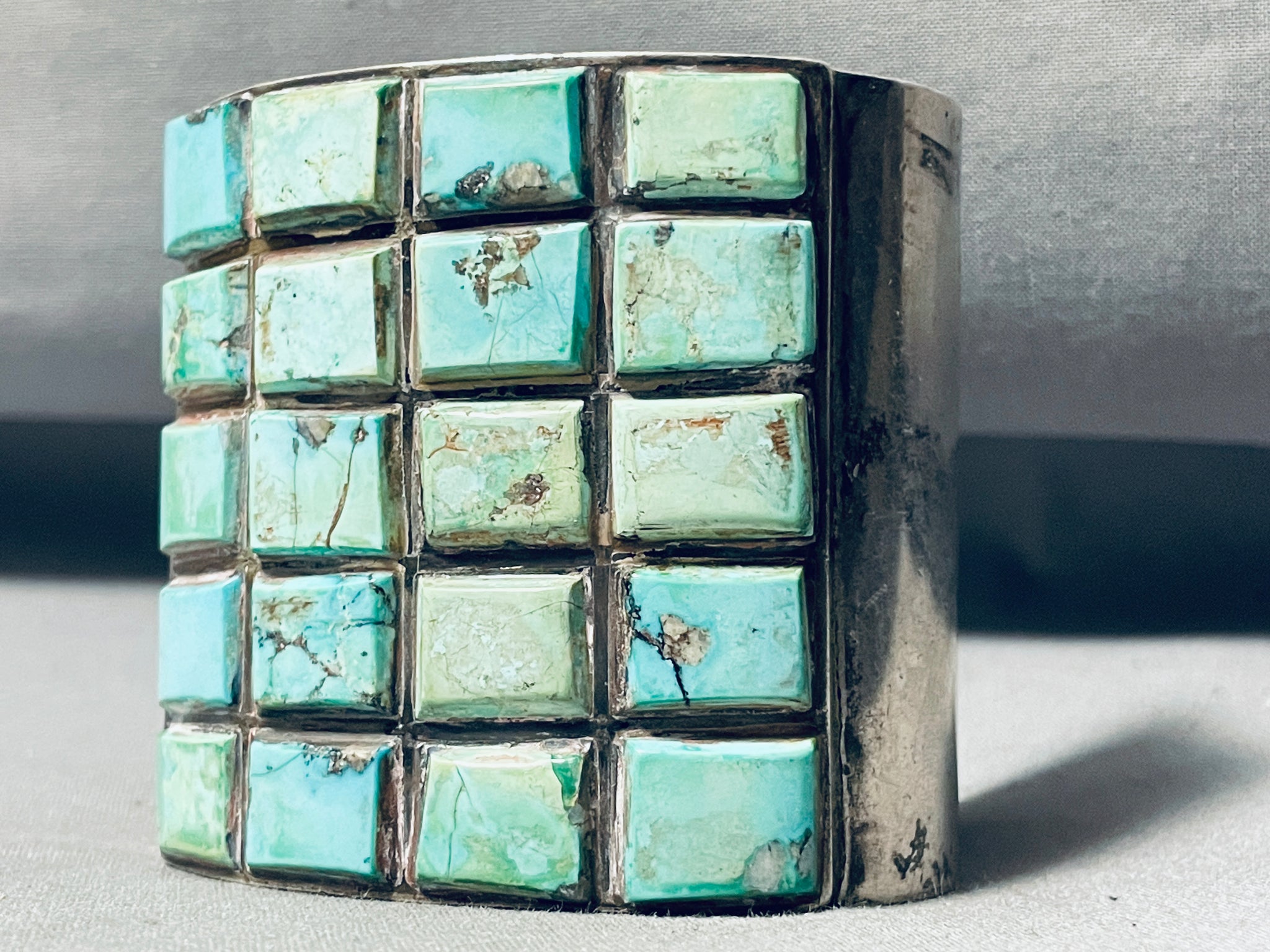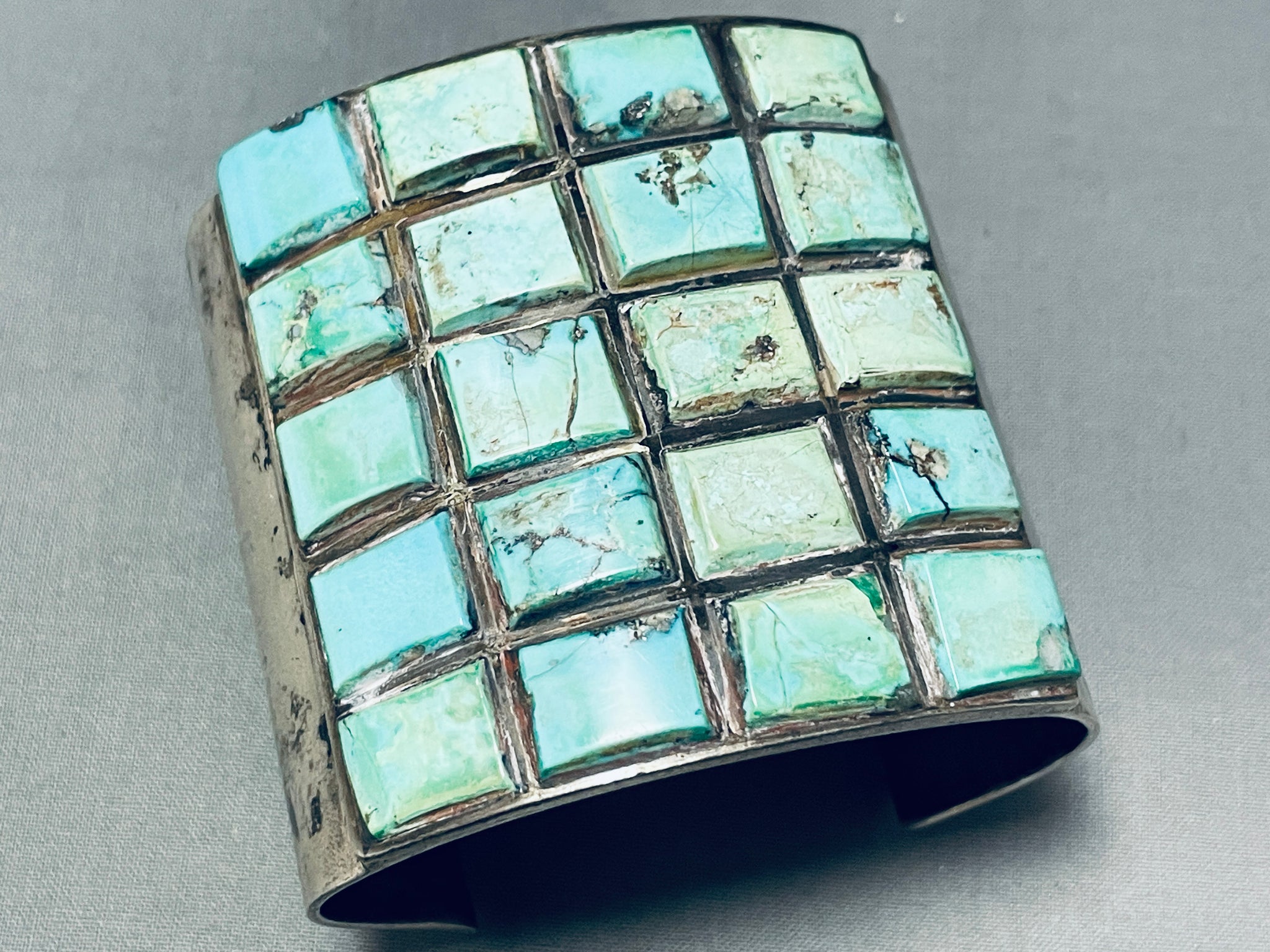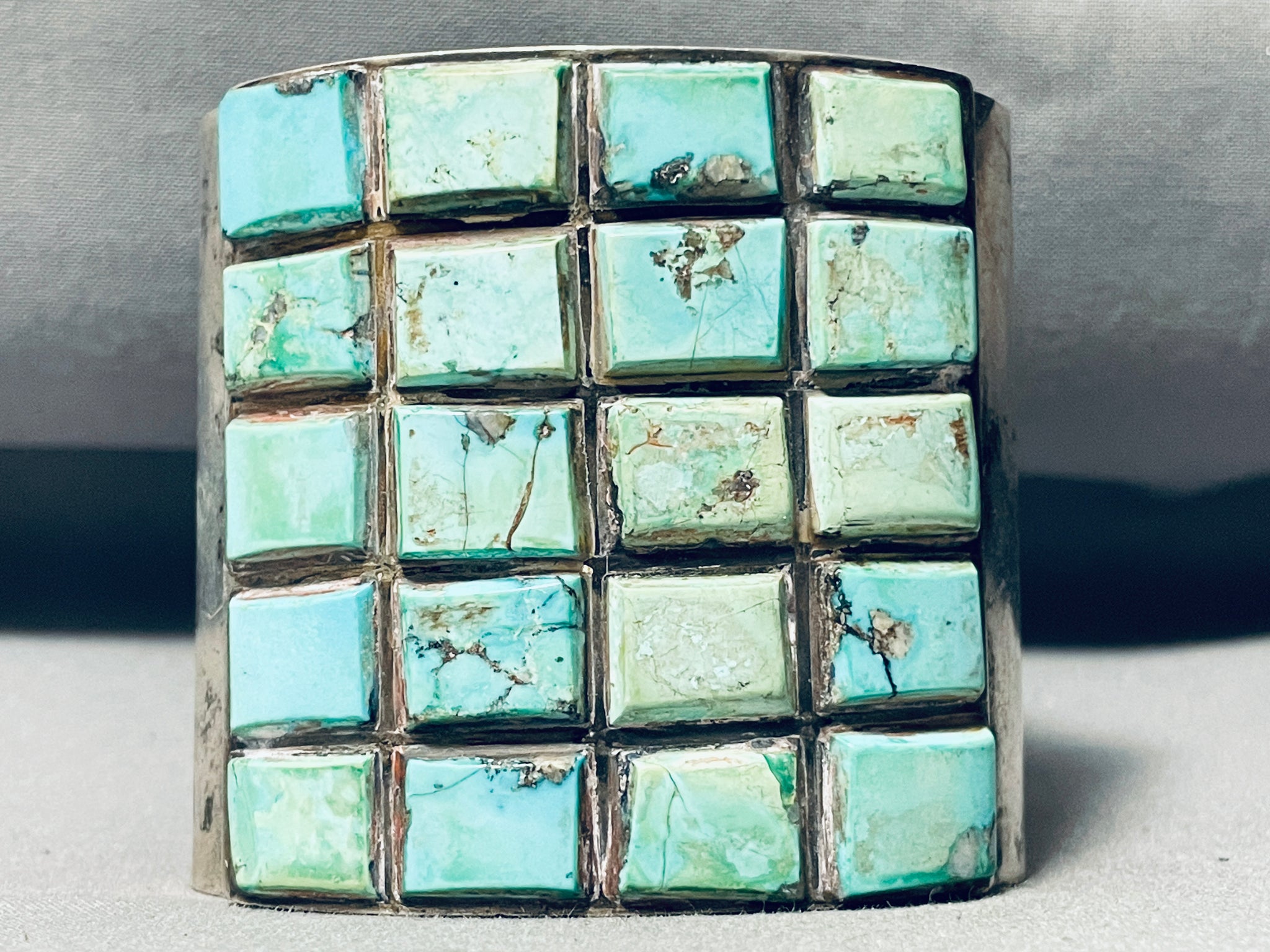 175 Grams Vintage Native American Navajo Checkerboard Turquoise Sterling Silver Bracelet